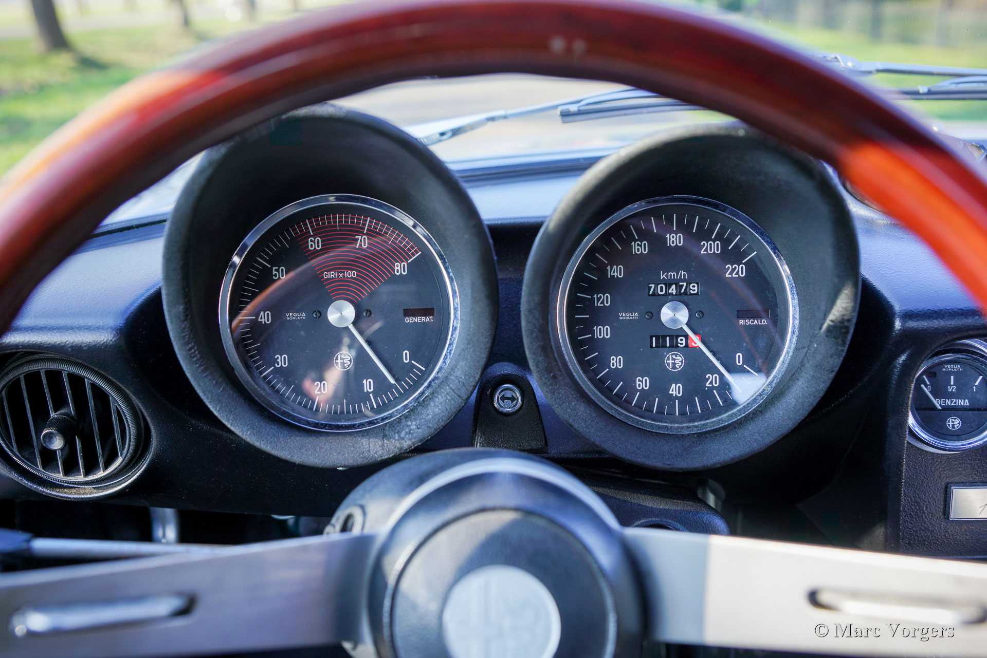 All these Spider engines are of the 105 (Nord) type, a advanced full aluminium four cylinder in-line engine with double overhead camshafts. The power is being transmitted to the rear wheels by a five-speed gearbox. The Spider featured disc brakes all around from the start of production. In contrast to various two passenger roadster and convertible cars of that time, the Spider Veloce has a very handy construction for its drop-head: the top can be opened and closed in less than 10 seconds! Compared with the British "roadsters" from the 1960s and 1970s, the Spider Veloce is not really a sports car but more of a competitive convertible touring car, or an open GT, if you like: practical, spacious, easy to handle, comfortable and fast.