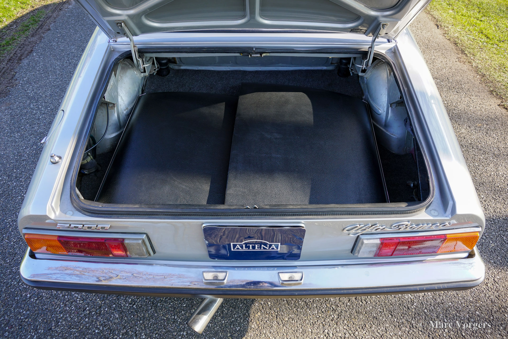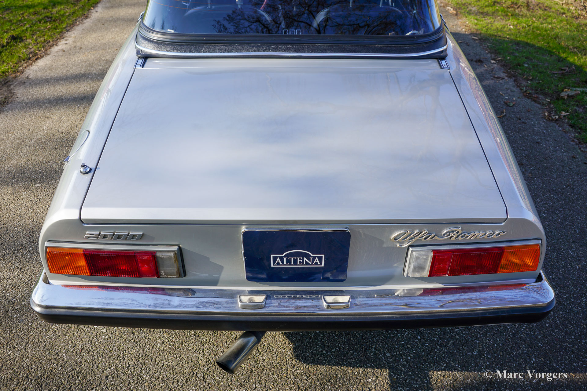 Alfa Romeo 2000 Spider Veloce, année 1973. Couleur extérieure argentée associée à un intérieur en similicuir noir garni de moquette en caoutchouc noir. La voiture est équipée d'un toit rigide Korbler (avec panneaux centraux amovibles) et d'une capote souple en mohair noir qui peut être utilisée immédiatement lorsque le toit rigide est retiré de la voiture. Cette belle Alfa Romeo 2000 Spider fut vendue neuve aux Pays-Bas, et elle a toujours été chérie et soignée par les passionnés d'Alfa Romeo. Le dernier propriétaire profite de la Spider depuis 2009. La voiture est dans un très bon état d'origine, et elle roule et sonne parfaitement. La carrosserie fut repeinte parfaitement dans le passé. L'intérieur coche toutes les cases des adeptes d'Alfa Romeo avec le compteur kilométrique et le compte-tours dans leurs « nacelles » noires distinctives, le volant cerclé de bois et la console centrale merveilleusement détaillée. Les tapis de sol en caoutchouc avec le logo Alfa Romeo ajoutent à l'atmosphère sportive classique. Cette Alfa Romeo 2000 Spider de la série 105 est le modèle recherché « Coda Tronca » qui a succédé au premier modèle « Duetto ». Le surnom « Coda Tronca » fait référence à la queue coupée (qui a été littéralement appliquée à la queue plus longue en forme de cigare « Duetto »). La 2000 Spider Veloce est le modèle le plus puissant de la gamme Spider. Le moteur à double arbre à cames de 150 ch entraîne les roues arrière via une boîte de vitesses à cinq rapports. Avec une vitesse de pointe de 190 km/h, la Spider 2000 légère et agile est une véritable voiture de conduite pour profiter des routes de campagne les plus exigeantes. L'Alfa Romeo 2000 Spider est un compagnon idéal pour les voyages sur route, les courtes vacances et les visites d'événements de voitures classiques. Le toit rigide Korbler de rechange est un ajout agréable et esthétique à utiliser au début du printemps et à l'automne. Votre serviteur préfère la capote souple Spider, qui est le meilleur exemple et le plus facile à utiliser que l'on puisse trouver sur n'importe quelle voiture classique ; vous pouvez la relever ou la baisser en quelques secondes ! De plus, la voiture est équipée de magnifiques jantes en alliage Stil-Auto chaussées de très bons pneus Dunlop 185/70/14 pouces.