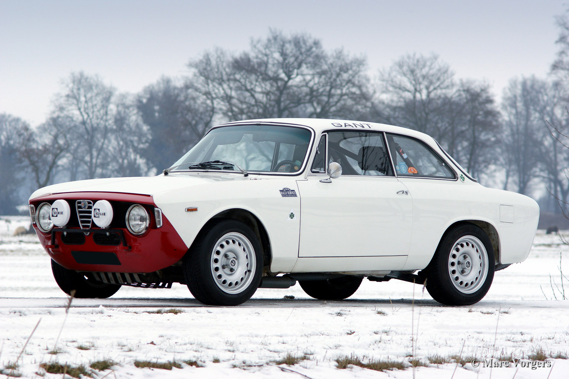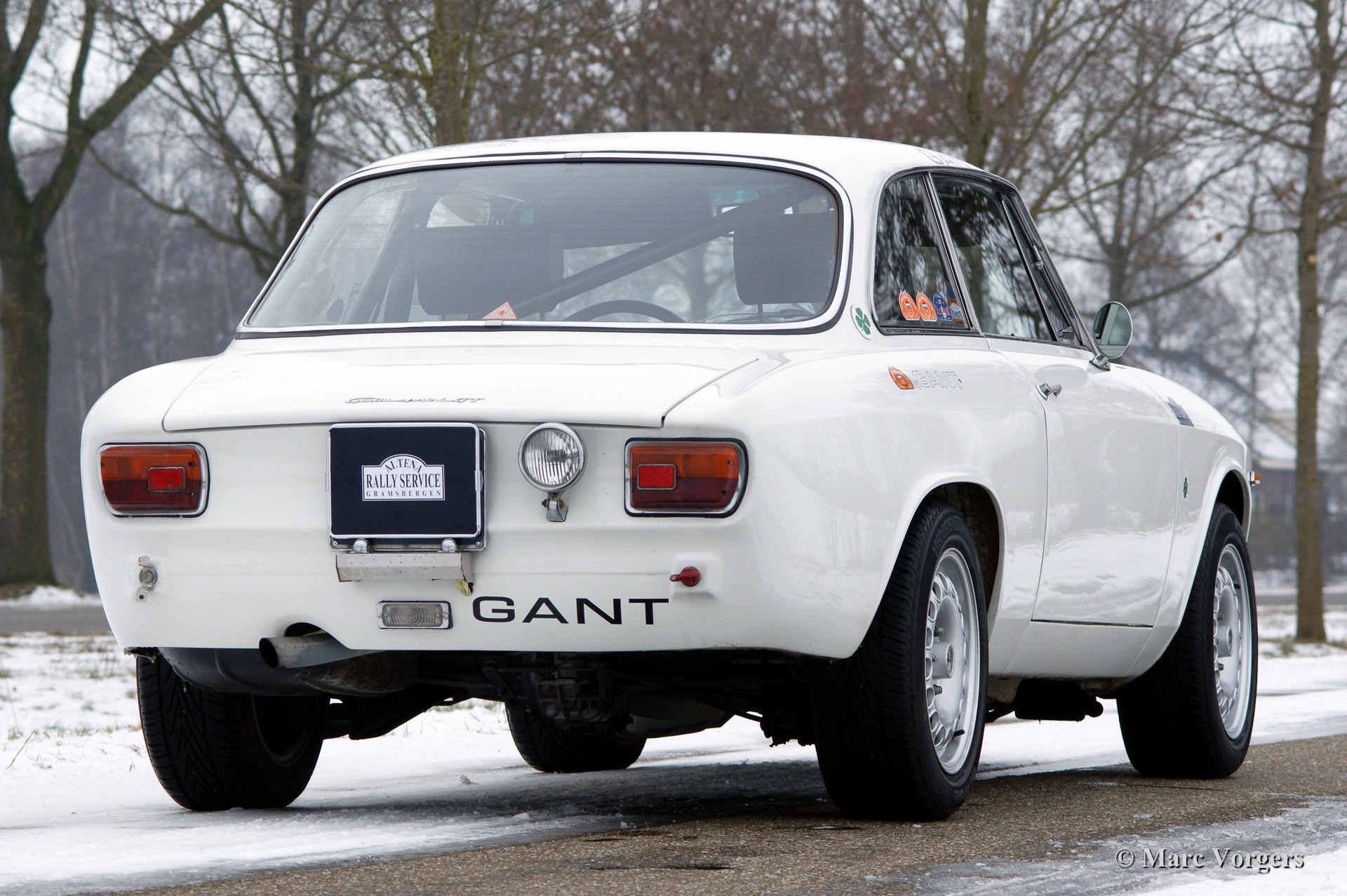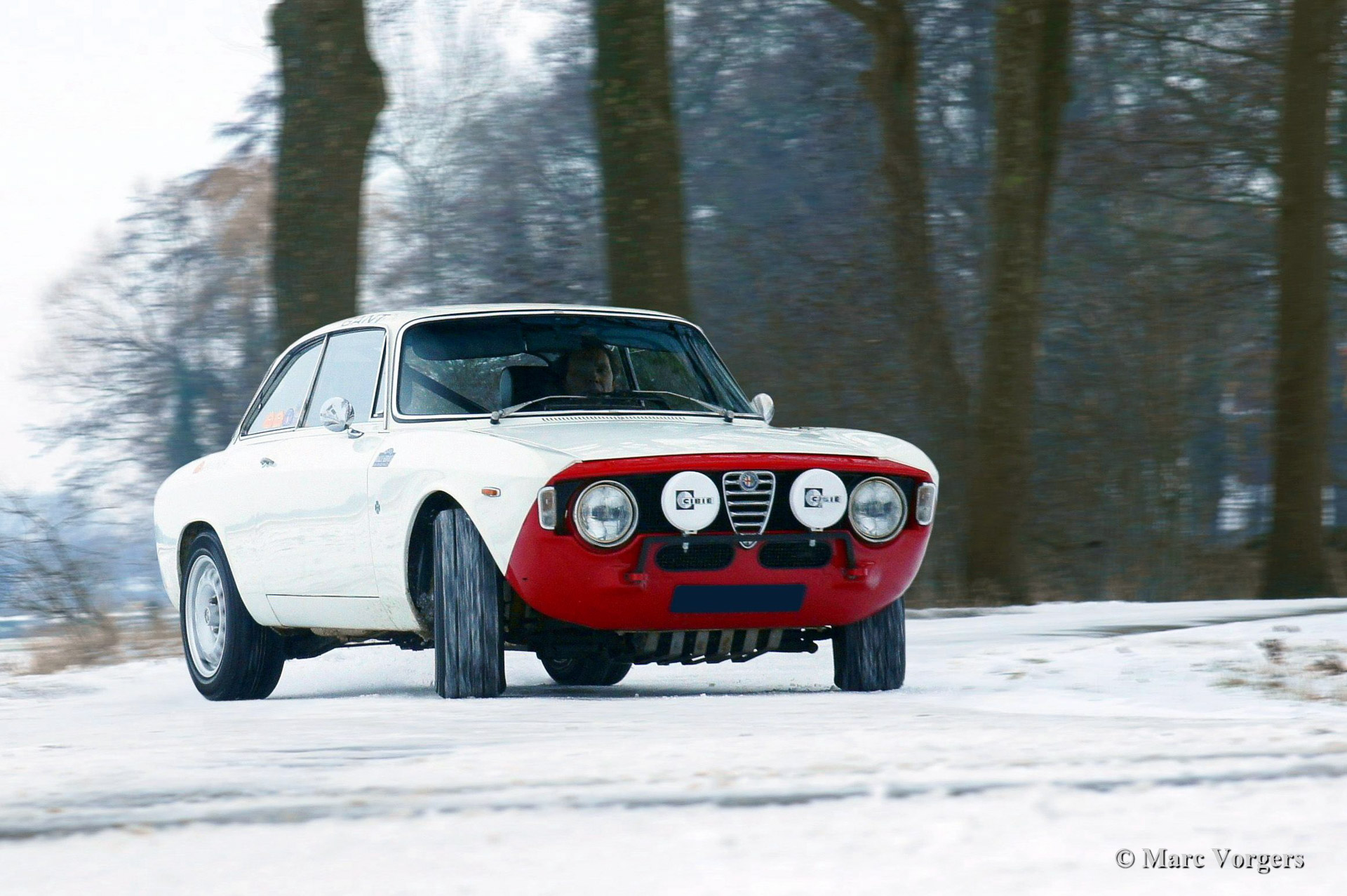 Alfa Romeo Giulia 1600 Sprint GT rally car 'Bertone', year 1964. Colour white /red front and a black rally interior. The automobile was extensively restored, overhauled and tuned.
