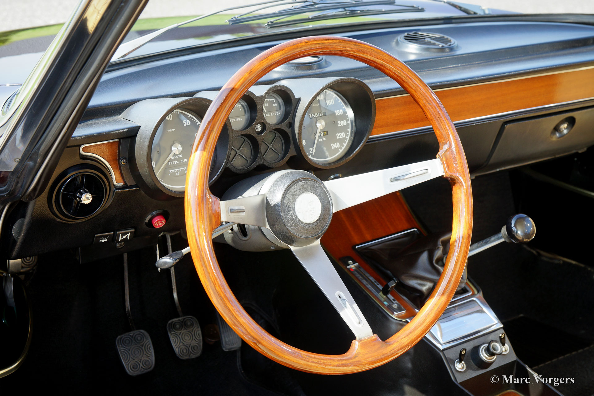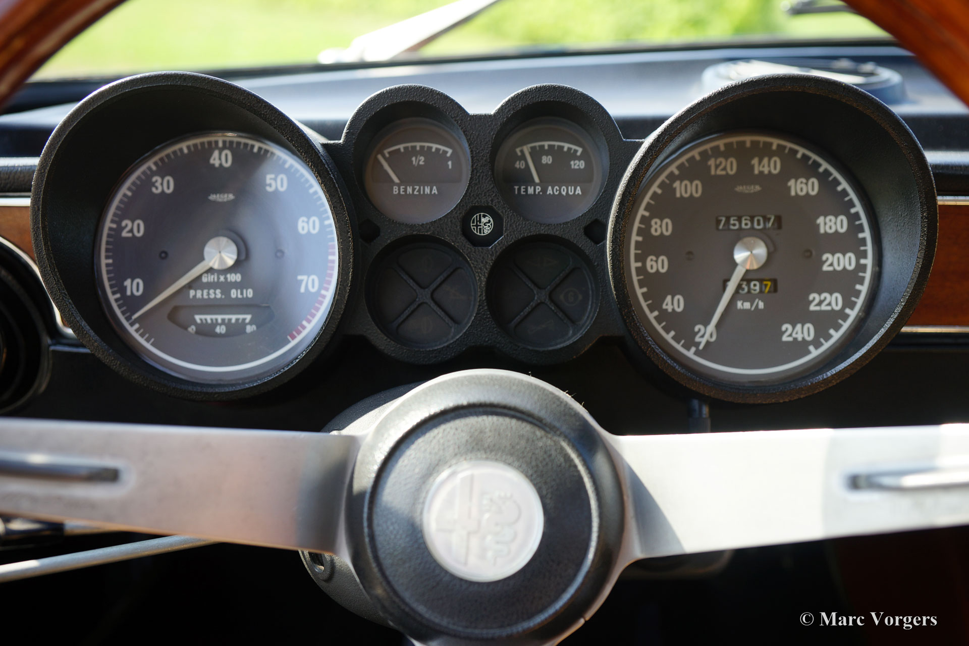 The Alfa Romeo Giulia GT was designed by Bertone and can be considered as one of the most successful designs of a compact GT in the past decades. In addition to its exquisite design, the Giulia GT handles very well, is fitted with a sublime engine and is practical and user-friendly. The Giulia GT is every inch a two-person GT, a paragon for everything Alfa Romeo stands for: it is competitive, refined and has class. The Giulia GT is fitted with a complete aluminium four-cylinder in-line engine with a double overhead camshaft and a five-speed gearbox. The Giulia GT "Bertone" was built from 1963 until 1972 and from 1972 until 1977 with a redesigned front. The latter models were named "Lusso". The cars were sold with several cylinder capacities; 1300, 1600 and 1750 cc. From 1972 until 1977 a 2000 cc. variant marketed: the Giulia 2000 GTV.