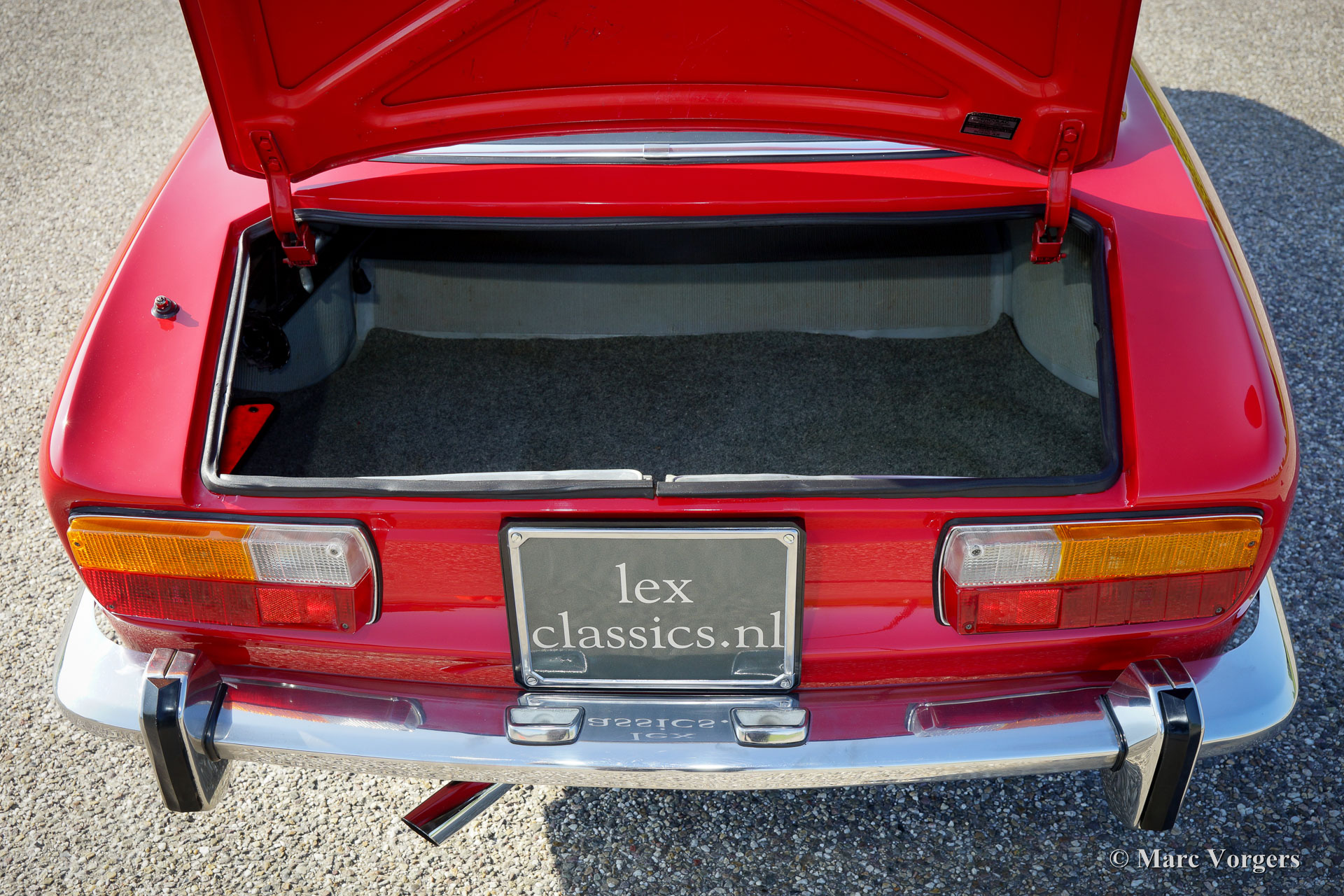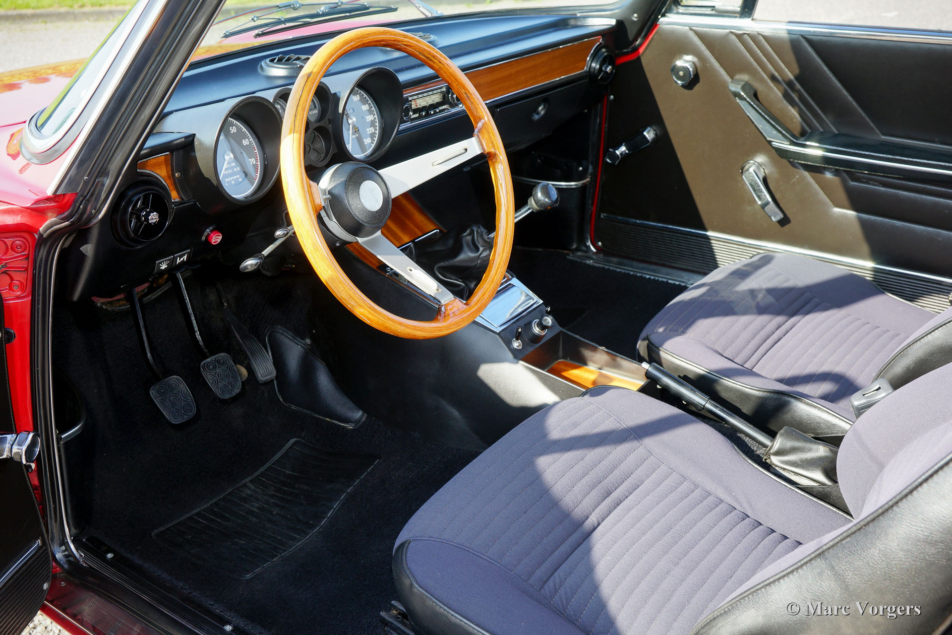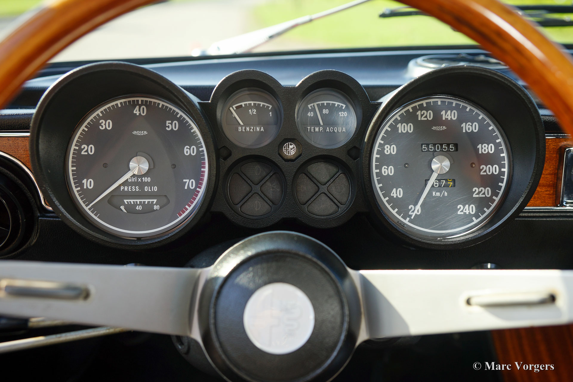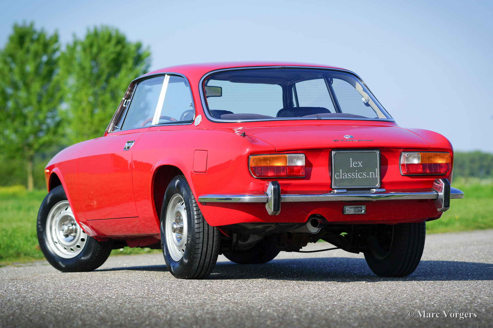 Alfa Romeo GT 1300 Junior 'Lusso', année 1975. Numéro de châssis AR10530 * 0001302. Couleur rouge (Alfa Rosso 501) avec un intérieur en similicuir et de tissu noir / gris et tapis noir. Cette magnifique Alfa Romeo Giulia GT 1300 Junior, également appelée «Bertone» par les passionnés, provient du premier propriétaire italien! Ce super original Alfa Romeo fut importé récemment aux Pays-Bas. La voiture a conduit seulement 55.055 kilomètres de nouveau ! Cette Alfa Romeo en état TOP, concours ! Le corps n'a jamais été soudé, rien n'a été restauré, la voiture n'a reçu qu'une nouvelle peinture parfaite dans la couleur d'origine ! Ce magnifique ‘Bertone’ montre tous les détails originaux, l'ensemble d'outils original est présent, tout comme les livres d'origine. La voiture est équipée d'une belle radio Grundig. Ce GT 1300 Junior est un modèle dite ‘Lusso’ (de luxe). C'est le dernier modèle de la série avec l'intérieur, l'insonorisation, la grille, les arrière-lumières et les pare-chocs du Giulia GTV 2000 haut de gamme. Ce type de voitures classiques super originales et jamais restaurées dans Excellente à la première condition sont le Saint Graal pour les enthousiastes sérieux et les collectionneurs - Une restauration de première classe ne peut pas correspondre à l'originalité parfaite et le charme que les années ont ajouté à son pedigree.