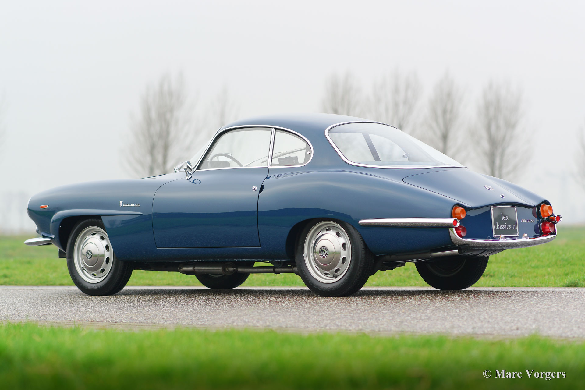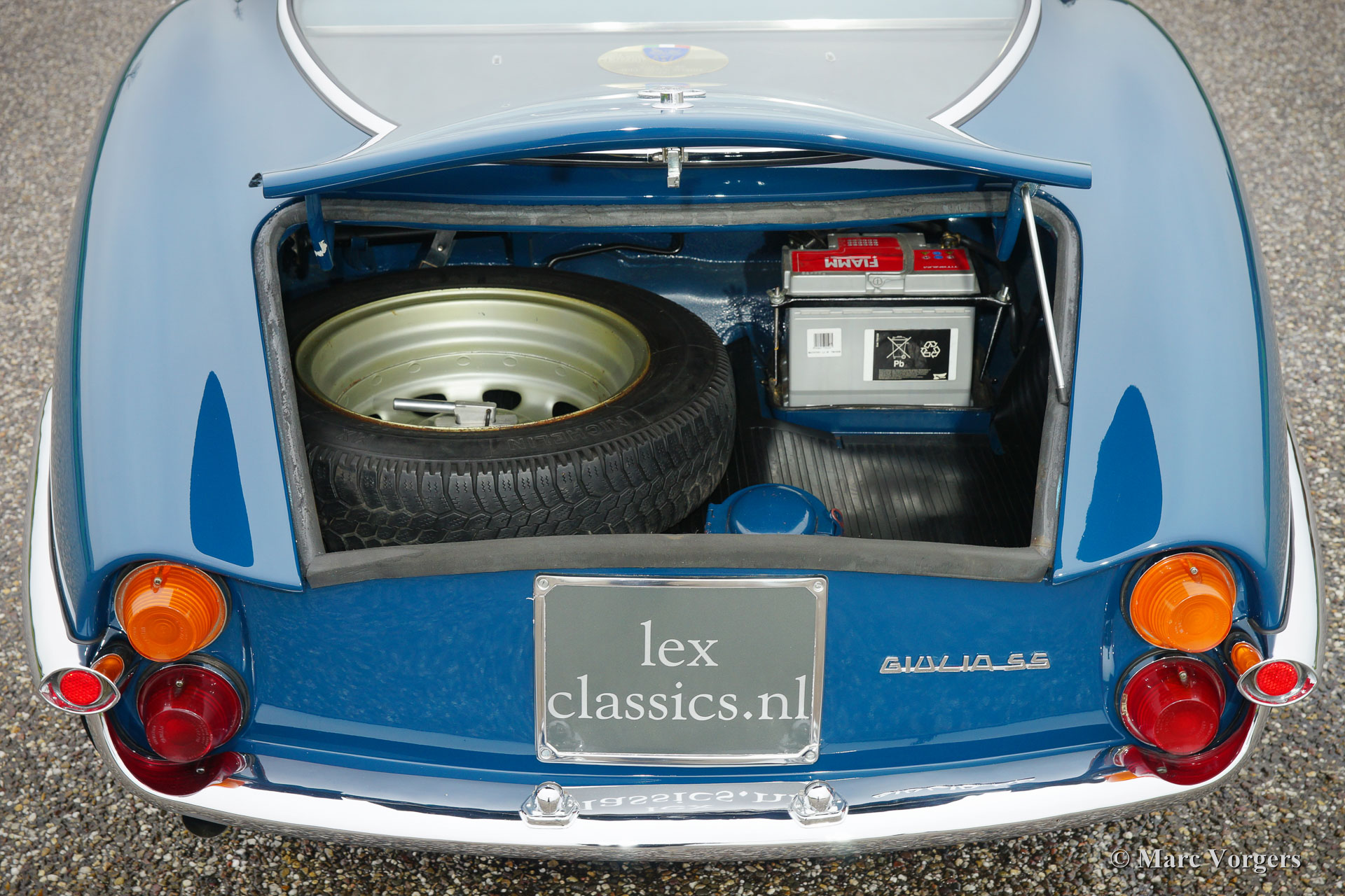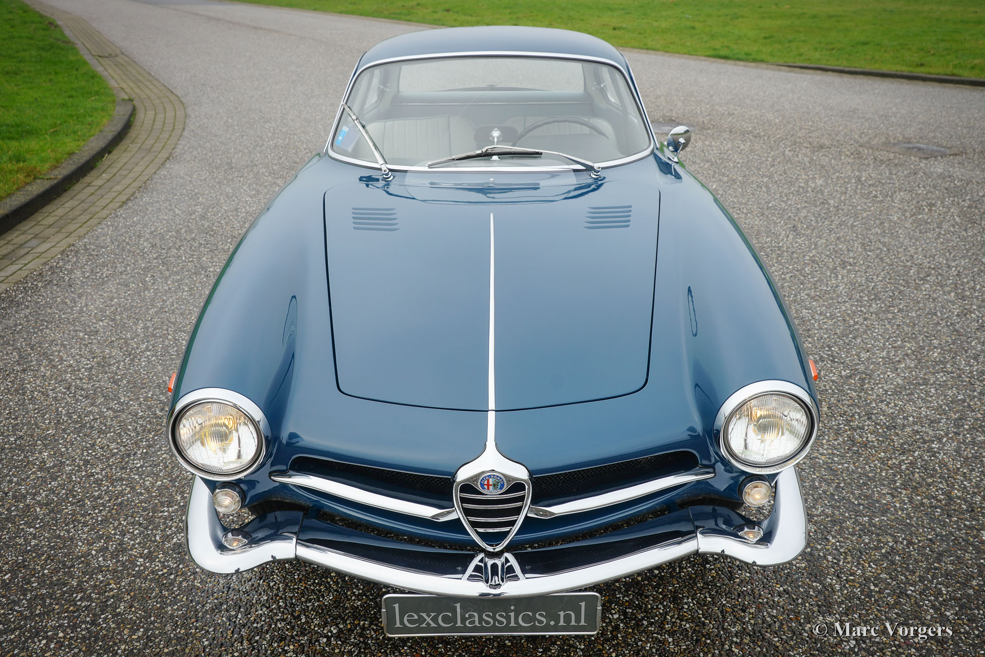 Alfa Romeo Giulia SS (Sprint Spéciale), année 1964. Couleur bleu (Bluette) avec un chiffon bleu / gris intérieur et tapis bleu. Ce fantastique Giulia SS a été restauré en Italie en l'an 1999. En 2013, la voiture a été importé aux Pays-Bas. Le propriétaire a décidé d'avoir la voiture a les normes les plus élevées de sorte qu'il a été restauré à nouveau à un niveau élevé de perfection. La voiture affiche toujours toutes ses couleurs originales et les détails.