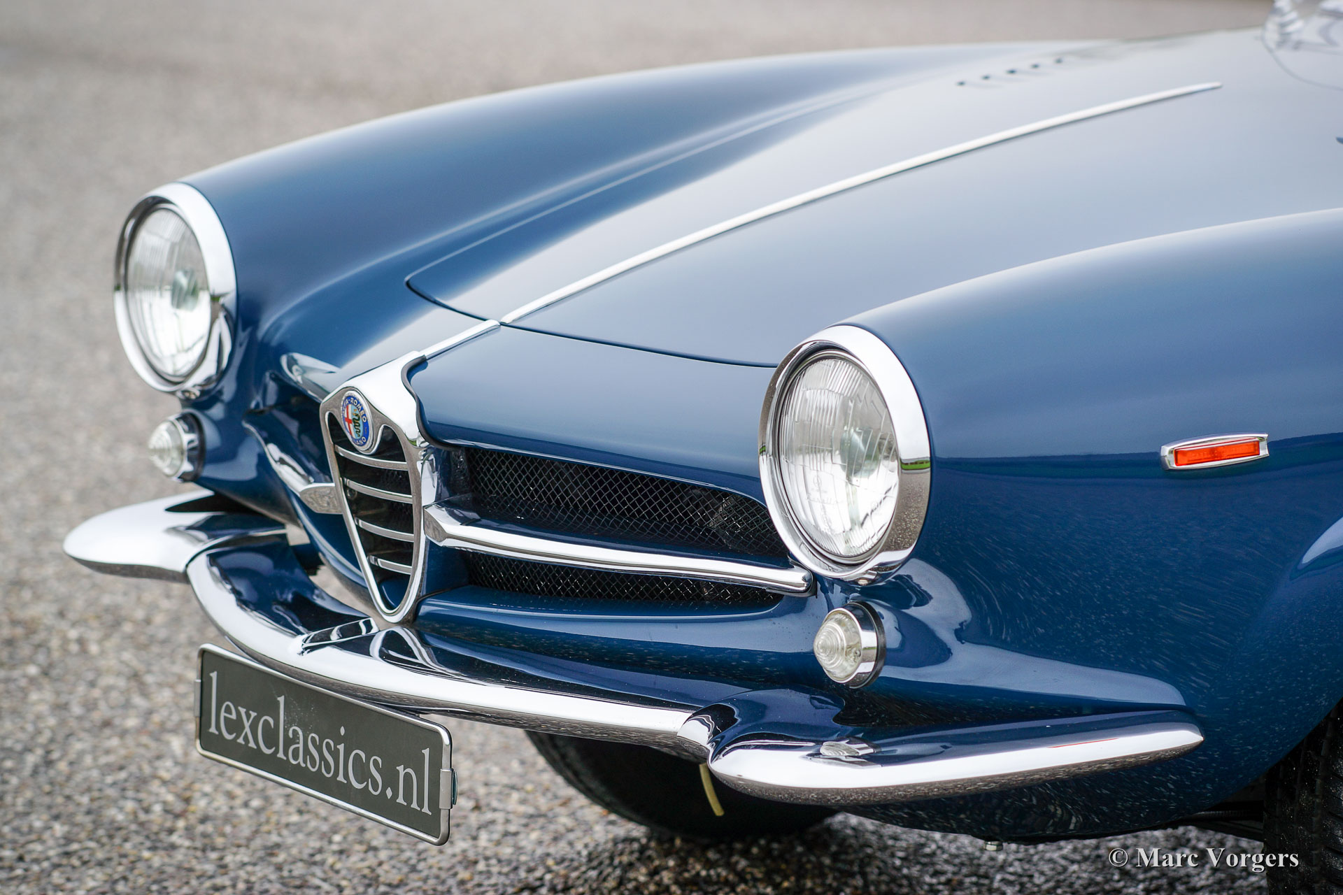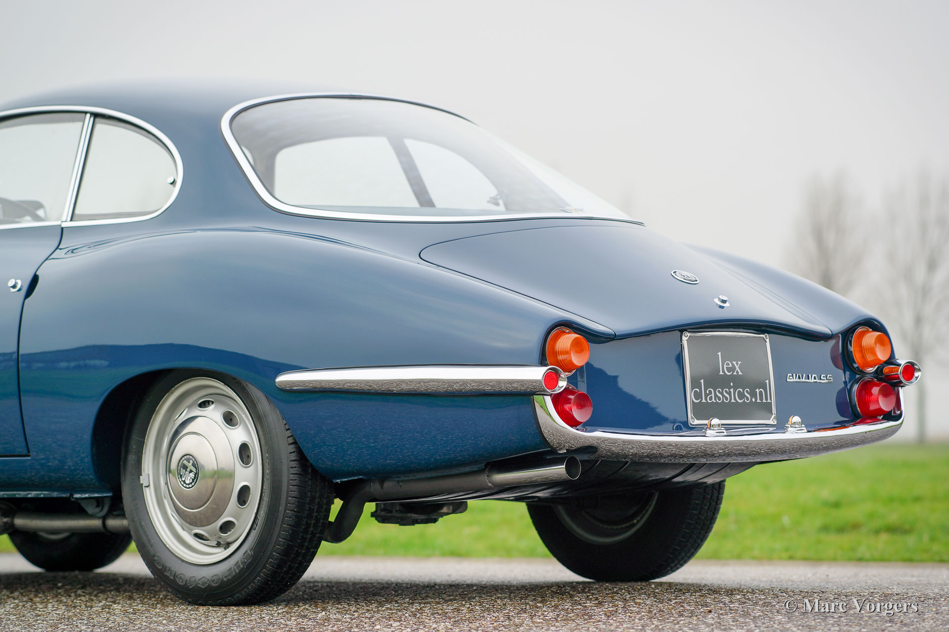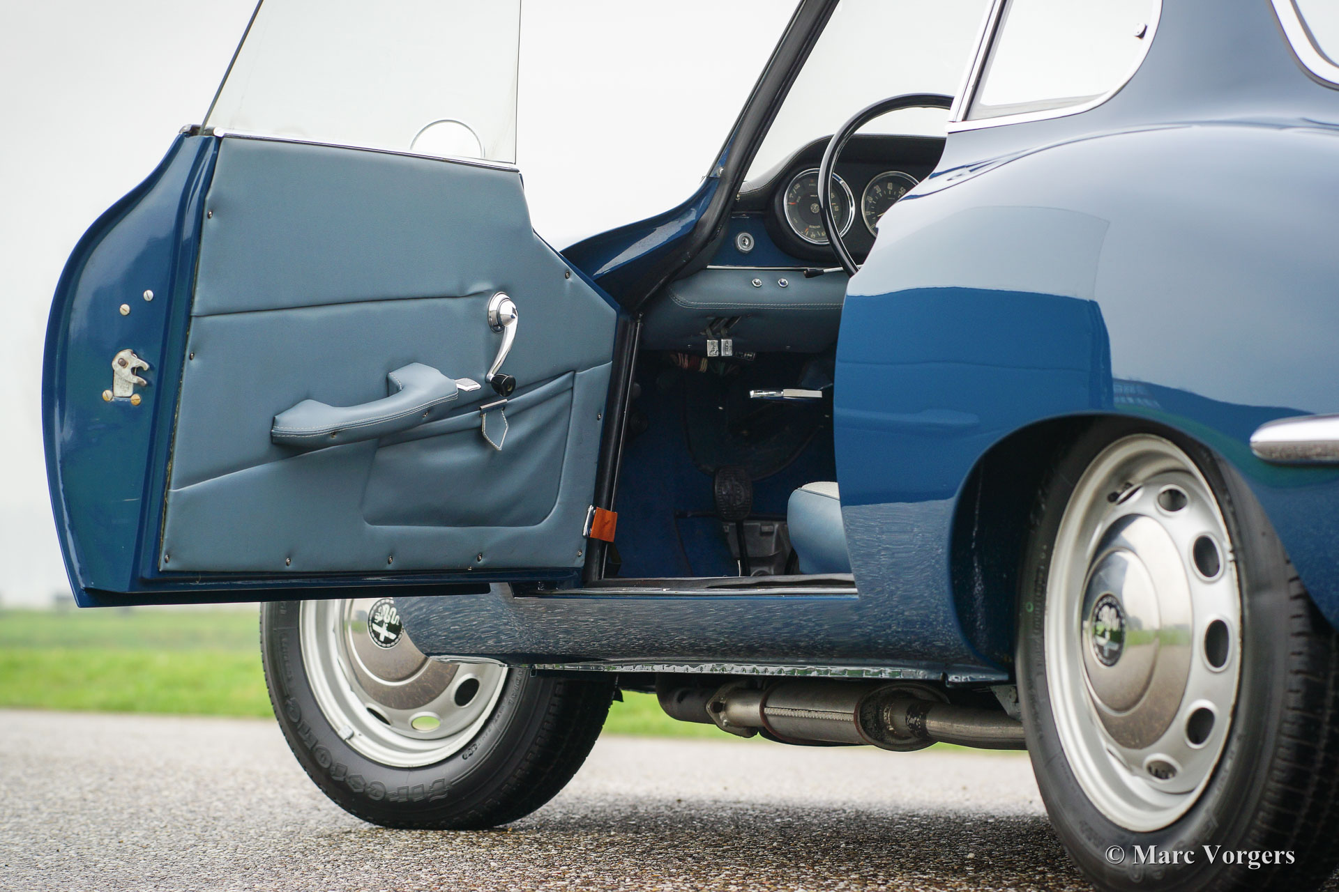 Alfa Romeo Giulia SS (Sprint Spéciale), année 1964. Couleur bleu (Bluette) avec un chiffon bleu / gris intérieur et tapis bleu. Ce fantastique Giulia SS a été restauré en Italie en l'an 1999. En 2013, la voiture a été importé aux Pays-Bas. Le propriétaire a décidé d'avoir la voiture a les normes les plus élevées de sorte qu'il a été restauré à nouveau à un niveau élevé de perfection. La voiture affiche toujours toutes ses couleurs originales et les détails.