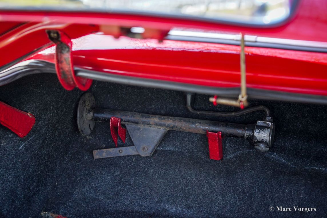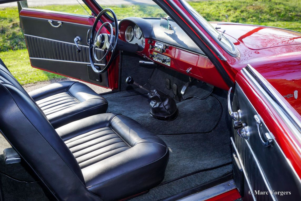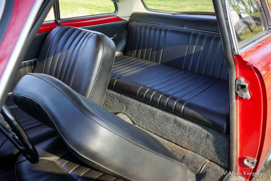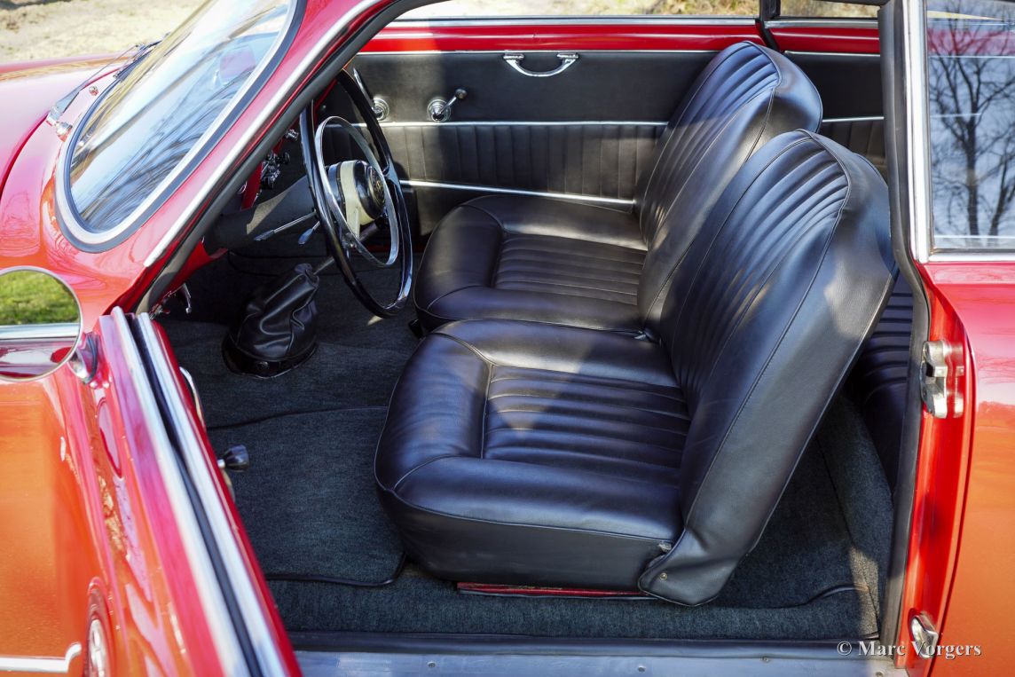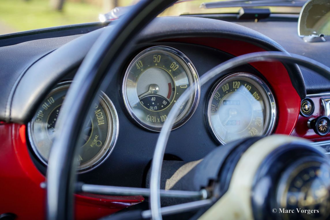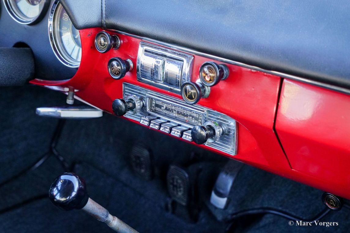 Alfa Romeo Giulietta Sprint, année 1960. Couleur extérieure rouge associée à un intérieur en similicuir noir et à une moquette gris foncé. Cette magnifique Alfa Romeo Giulietta Sprint fut vendu neuve en Italie, le certificat d'immatriculation italien d'origine est toujours avec la voiture. Cette fantastique Alfa Romeo est dans un état merveilleux et super d'origine ! La voiture n'a jamais été restaurée, seulement très bien entretenue et aimée par ses anciens propriétaires. La voiture fut parfaitement repeinte dans la couleur rouge d'origine dans le passé et l'intérieur a reçu une nouvelle sellerie dans le passé. Les panneaux de carrosserie présentent un ajustement parfait et de merveilleuses lignes. Les finitions extérieures chromées et en acier inoxydable sont en très bon état. Le ravissant intérieur classique présente tous les détails d'origine. C'est un plaisir de conduire la voiture et de regarder le volant fantastique, les magnifiques jauges et la radio Blaupunkt Köln d'époque. Le moteur à quatre cylindres de 1 300 cm3 à double arbre à cames tourne avec enthousiasme et la boîte de vitesses à 4 rapports passe les vitesses en douceur et avec précision. L'expérience de conduite et les impressions sont fantastiques ; vous pouvez entendre et ressentir l'ambiance des années 1950 et 1960 en conduisant cette magnifique capsule temporelle ! La voiture présente tous les détails d'origine, est équipée de pneus Pirelli 155/15 et est livrée avec le cric d'origine. Cette belle voiture classique peut être importée dans n'importe quel pays du monde et elle est prête à être pleinement appréciée ! Cette Alfa Romeo Giulietta est un magnifique spécimen en très bon à excellent état d'origine ; une belle trouvaille pour le collectionneur/amateur d'Alfa Romeo !