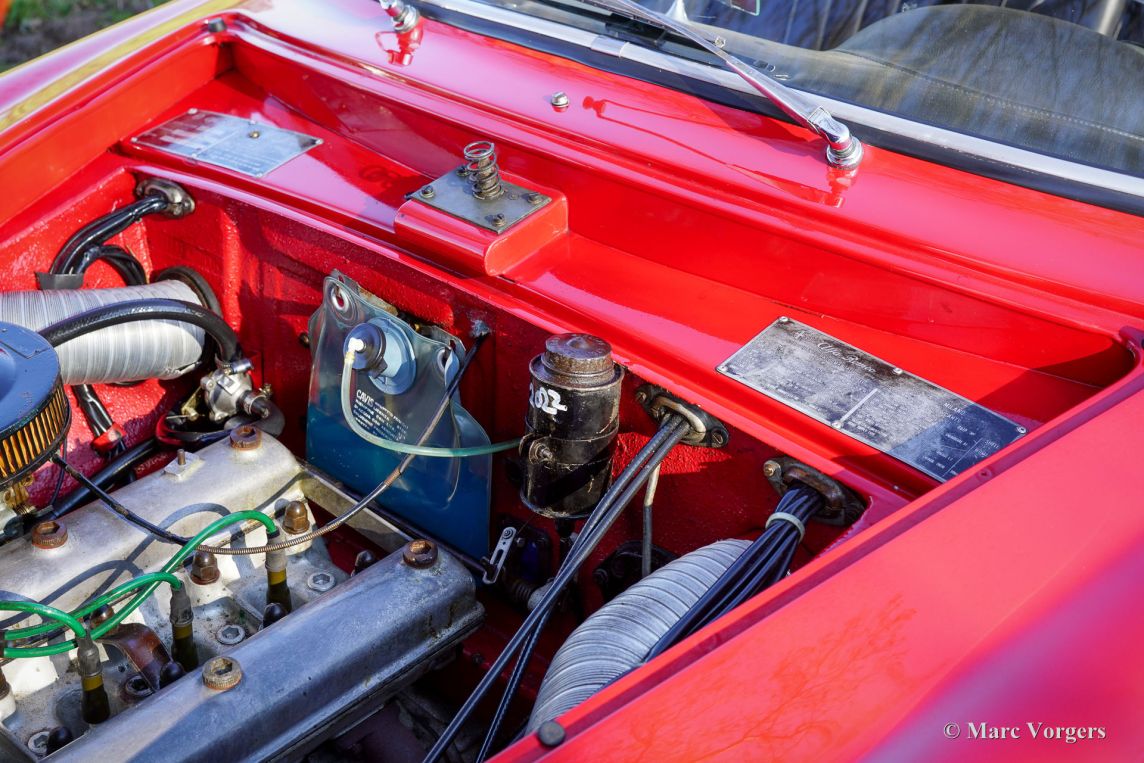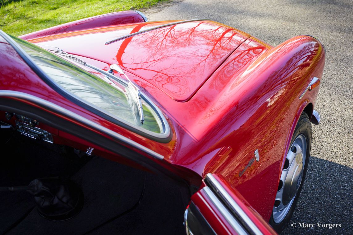 In 1954 the Alfa Romeo Giulietta Sprint (750 series) was presented on the Turin motor show. It was a car with a breathtaking sleek and compact design, drawn by Bertone. The car was very light and featured excellent aerodynamics. Very important was the introduction of the new Alfa Romeo four cylinder engine with the Alfa Romeo Giulietta. This compact engine was made of aluminium and featured two overhead camshafts. Cylinder capacity was 1290 cc. and it delivered a stunning 50 bhp. per liter which was very remarkable those days. This reliable and powerful engine concept would become famous and was going to be used in many Alfa Romeo models for the decades to come.