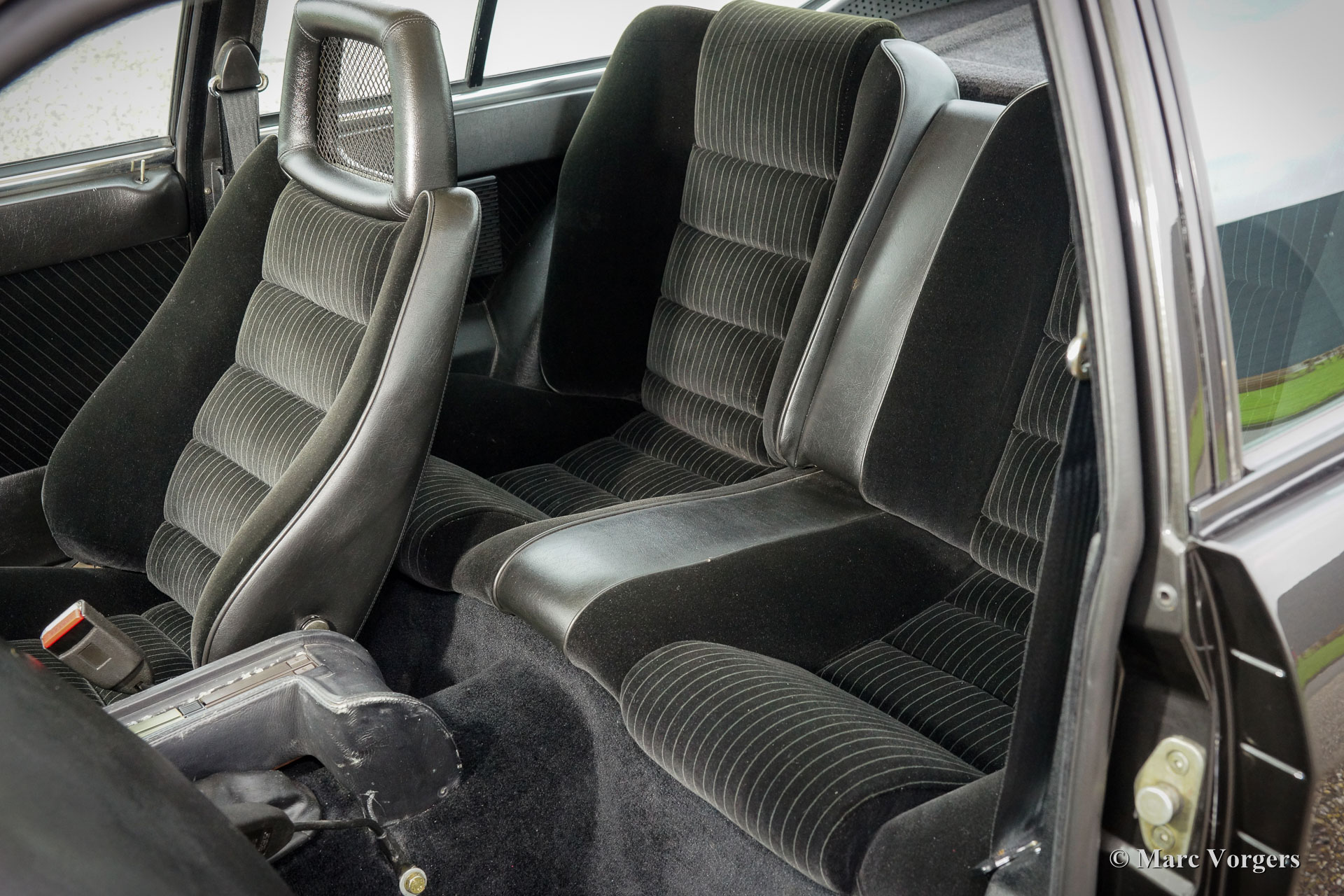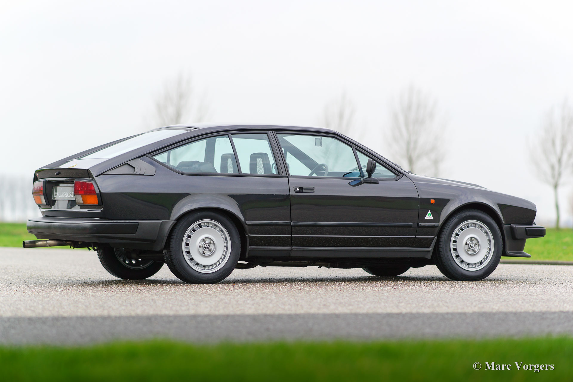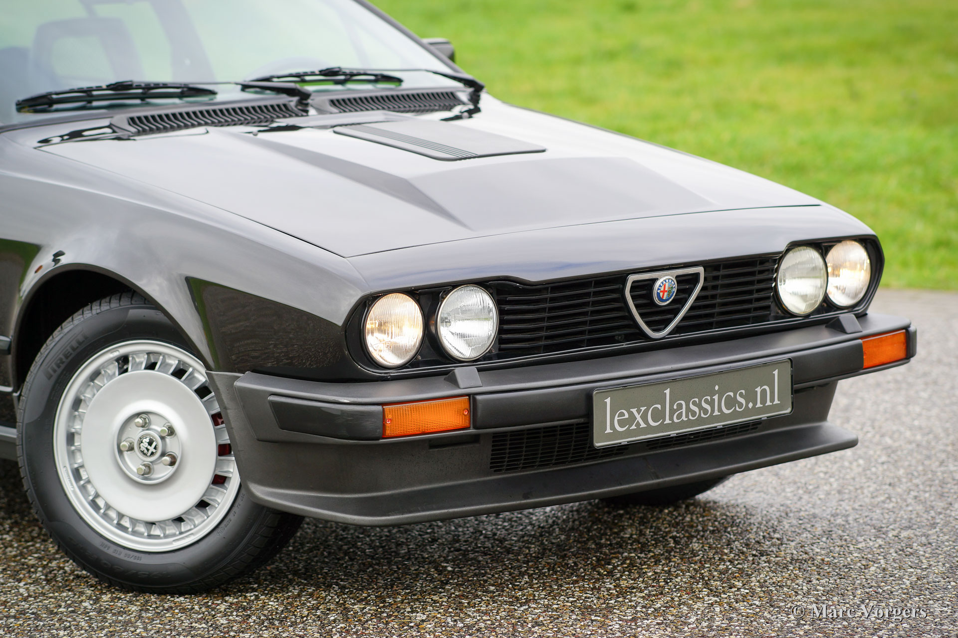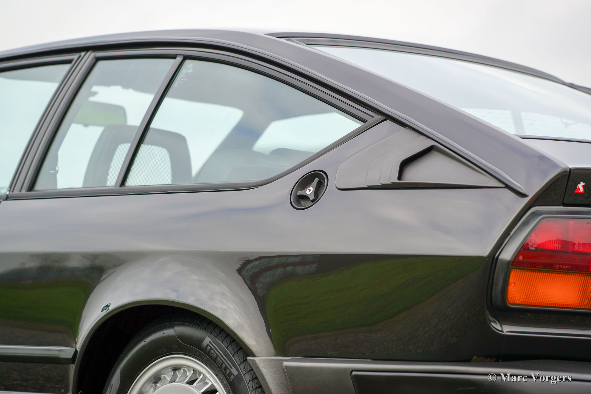 Alfa Romeo GTV6 2.5, année 1984. Couleur anthracite métallisé avec un interieur tissu noir et tapis noir. Ce magnifique Alfa Romeo GTV6 a été vendue neuve aux Pays-Bas par le représentant Alfa Romeo 'Albatros' à Amsterdam. Cette GTV6 est en très bon état et très original ! Il y a quelques années, la voiture a été donnée belle nouvelle peinture. L'intérieur est entièrement original et très bon avec quelques traces d'utilisation. Le moteur V6 est un joyau fournir beaucoup de couple et un son magnifique. La boîte de vitesses «transaxle», qui est monté sur le différentiel arrière, décale parfaitement. Le GTV6 est le modèle top-of-the-line de la série Alfetta. Un bon et très original par exemple, comme cette voiture est difficile à trouver. La voiture dispose les roues en alliage léger d'origine. Les livrets service et d'instruction originaux sont présents.