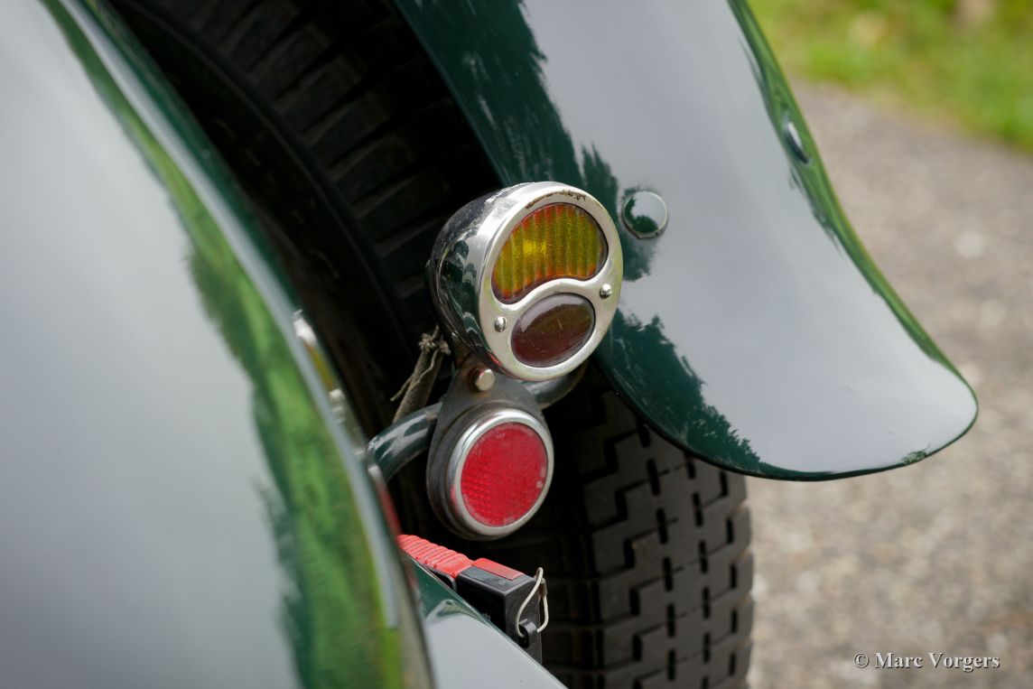 Alvis 4.3 litres Special, année 1939. Couleur extérieure « British Racing Green » foncé, intérieur avec sièges en cuir vert foncé. Capuche noire et couvre-tonneau gris. La 4,3 litres est la voiture de série la plus puissant et la plus rare jamais construite par Alvis. Cette magnifique spéciale Alvis 4,3 litres a reçu il y a plusieurs décennies une carrosserie biplace spéciale de style course Brooklands. Cette Alvis a été vendue neuve au Royaume-Uni, et elle fut exportée aux Pays-Bas en 1999. L'ancienne immatriculation britannique (BRV 55) est toujours présente. Aux Pays-Bas, cette impressionnante automobile d'avant-guerre n'a connu qu'un seul propriétaire. Le propriétaire a participé à de nombreux événements historiques au cours des 22 dernières années, cette Alvis est une automobile renommée dans les cercles néerlandais d'Alvis. Cette Alvis montre une magnifique patine vintage, et la voiture est en bon état et très fiable. La voiture est équipée de la célèbre boîte de vitesses Alvis entièrement synchronisée à 4 vitesses, du système d'allumage d'origine, de deux pompes à essence, de freins hydrauliques, d'un ventilateur de refroidissement électrique pour un refroidissement supplémentaire et de roues à rayons de 19 pouces chaussées de pneus Dunlop Racing 6.50 x 19. Cette Alvis 4.3 litres spéciale de 1939 est une voiture pour le vrai passionné de voitures de sport anciennes qui sait ce qu'une machine de ce calibre peut apporter si elle est traitée, chérie et pilote d'une main habile.