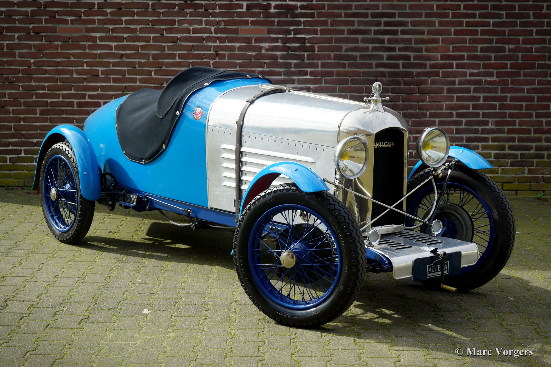 Amilcar CGS, année 1927. Couleur bleu bicolore combinée avec un intérieur en cuir beige. Cette magnifique Amilcar CGS a été vendue neuve en France, la « Carte Grise » française de 1982 est présente. De 1982 à 2014, la voiture n'a connu qu'un seul propriétaire. Vers l'an 2000, l'automobile a retrouvé son éclat d'origine. Depuis l'achèvement de la restauration, la voiture a été conduite occasionnellement et elle fut régulièrement entretenue. La voiture était toujours garée dans des conditions sèches. Cette magnifique Amilcar CGS est en très bon état avec une belle patine vintage. L'Amilcar CGS était la voiture la plus performante produite par cette firme française. La plupart des voitures furent vendues avec une carrosserie sportive à deux places (en supplément en aluminium) encourageant les propriétaires à participer aux compétitions locales. Le moteur en ligne à quatre cylindres délivre une superbe 40 ch à partir d'une cylindrée de 1 097 cc ! Cette puissance combinée au très faible poids a fait de l'Amilcar GCS une véritable voiture de sport. Le GCS présenté montre des détails originaux fantastiques : c'est un exemple très souhaitable !