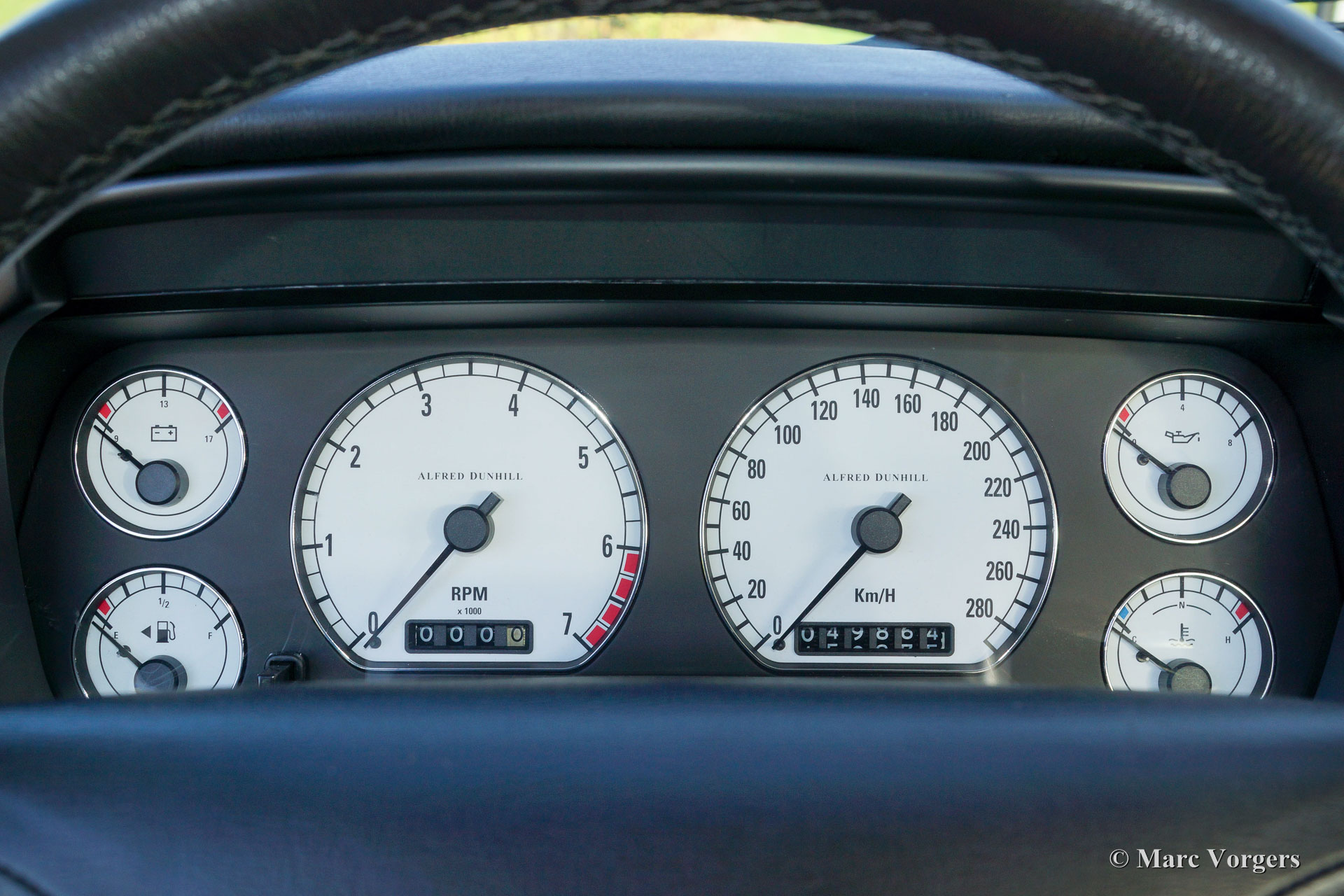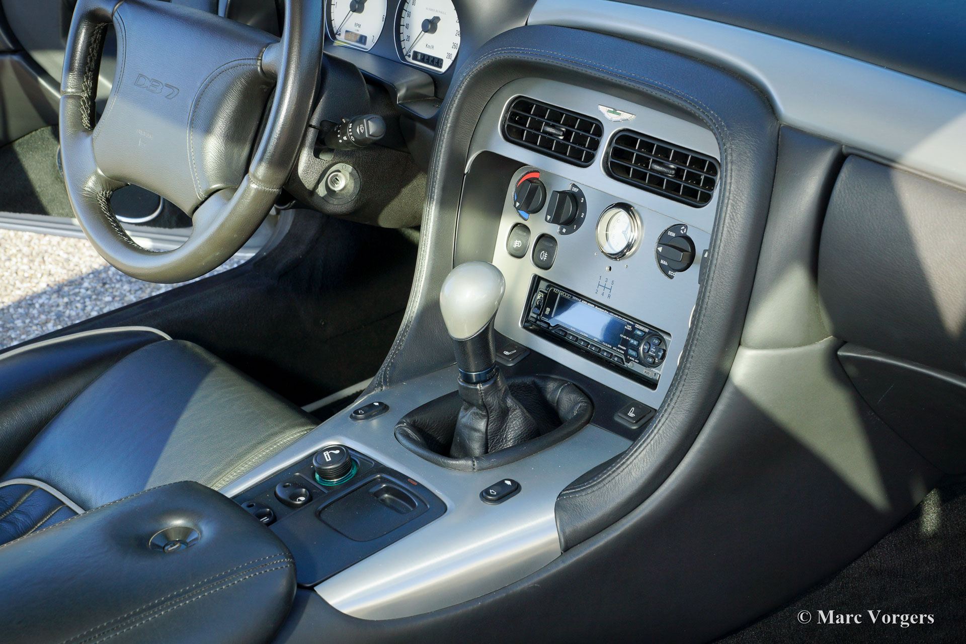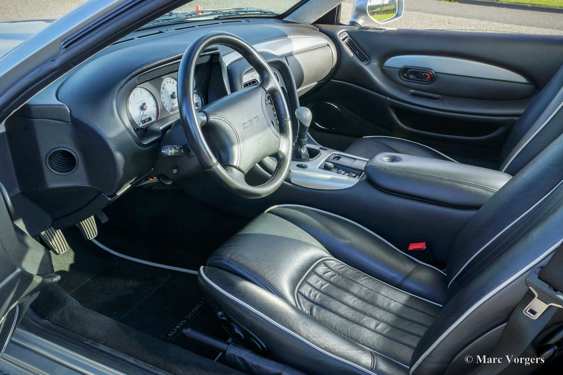 Aston Martin DB 7 Dunhill, année 1998. Couleur Platinum métallique avec un intérieur en cuir gris foncé. L'intérieur est garni de details en aluminium brossé. Ce rare et impressionnant Aston Martin DB 7 'Dunhill' est le numéro de la voiture 8 d'une édition limitée de 78 voitures ! L'Aston Martin a été vendue neuve en Italie et la voiture a conduit 49.848 kilomètres de nouvelles. L'automobile a connu deux propriétaires italiens et un propriétaire néerlandais. Cette spéciale Aston Martin est en excellent état d'origine ! Ces modèles Aston Martin sont nommés d'après Alfred Dunhill et les voitures étaient disponibles en modèles coupé et cabriolet. Détails de la signature sont la peinture platine métallique combinée avec l'intérieur en cuir gris foncé orné de détails en aluminium brossé, l'horloge Dunhill spéciale et les roues grises foncé spécial peintes en alliage léger. Remarquable est que les voitures ont été vendues dans les «fumeurs» ou couvert «non-fumeurs». Cette voiture est une édition «non-fumeurs», qui dispose d'une bouteille de parfum Dunhill dans l'accoudoir. Autres ‘goodies’ Dunhill originales qui viennent avec la voiture sont deux stylos Dunhill originaux, deux boutons de manchette Dunhill et une épingle de cravate Dunhill. Cette Aston Martin est très bien documentée. Les livres service et d'instruction originaux sont présents, une facture de services de 2013 Aston Martin Patrimoine aux Pays-Bas et une lettre du concessionnaire / garage italien qui précise que la voiture a connu deux propriétaires italiens et que la voiture a été entretenu ponctuellement. Ceci est une chance rare d'acheter une édition spéciale limitée Aston Martin.
