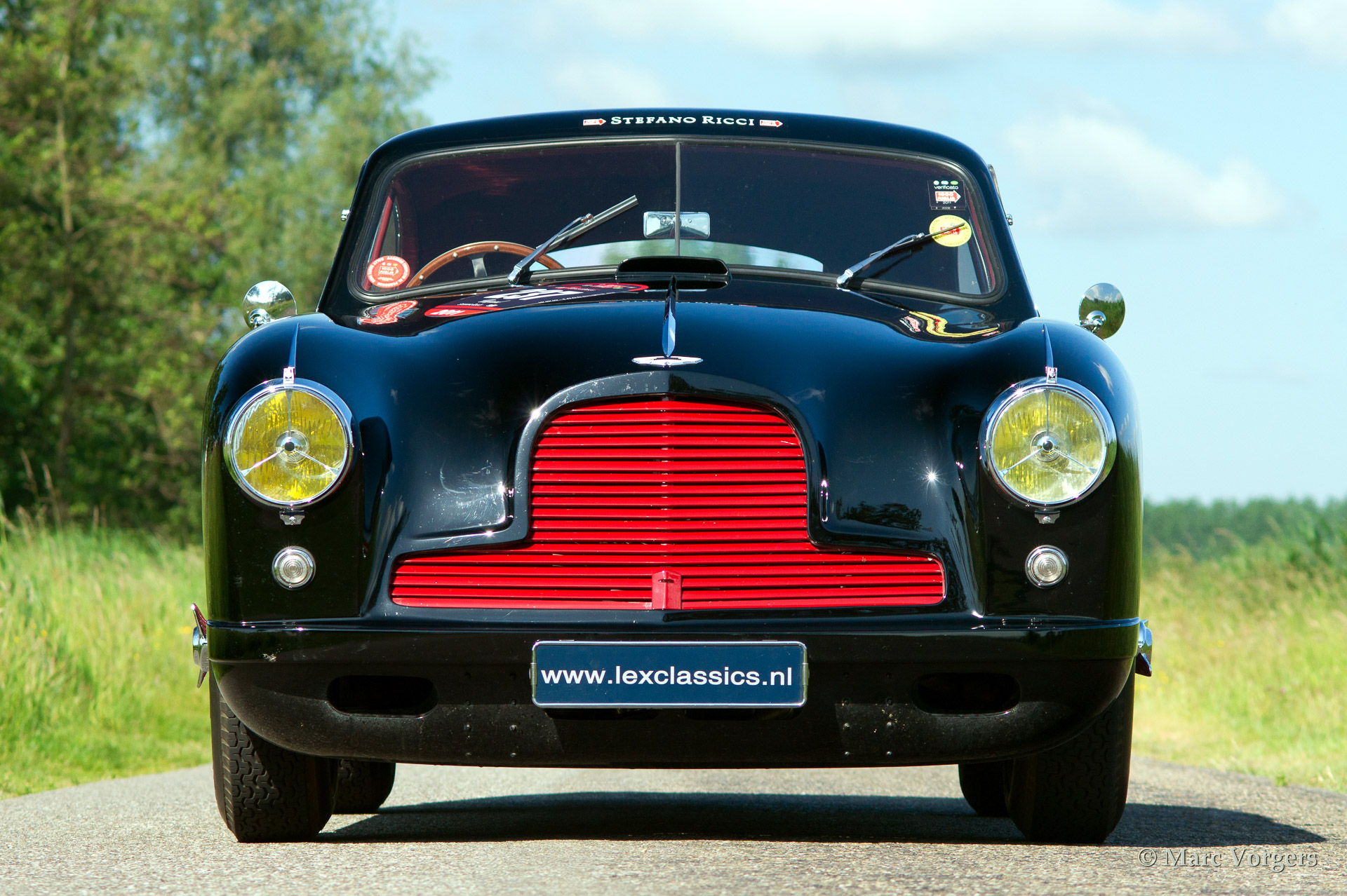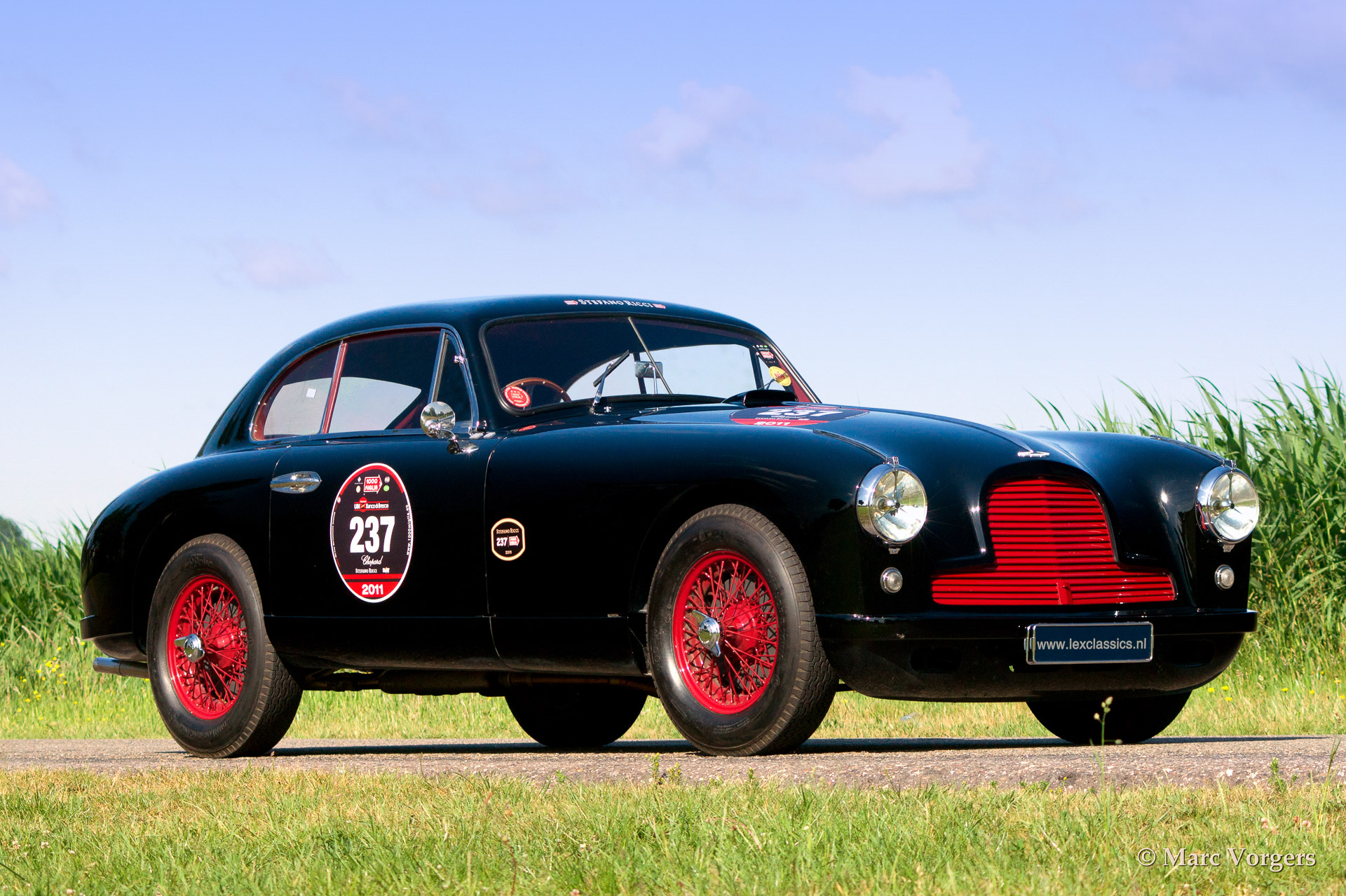 Aston Martin DB2 Vantage, year 1952. Colour black with dark red enameled wire wheels and a dark red leather interior. This scarce and very beautiful DB2 Vantage was extensively restored. This Aston Martin DB2 Vantage was delivered to the first owner with registration AY2 on 1 January 1953 by H.W. Motors of England.