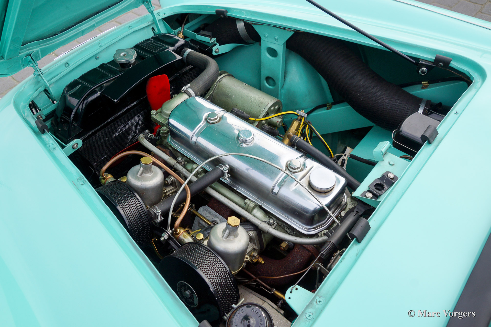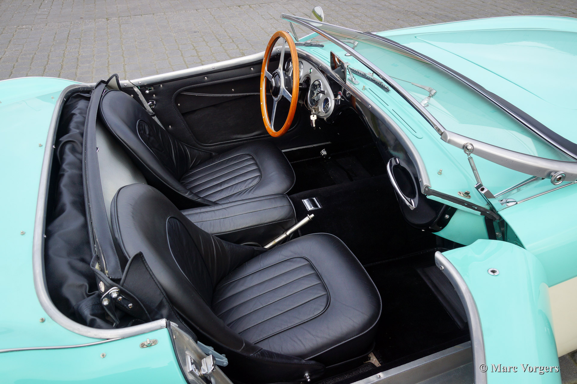 The former Healey models were more Spartan and featured fully detachable soft tops with separate side screens which could be stowed away in the booth.