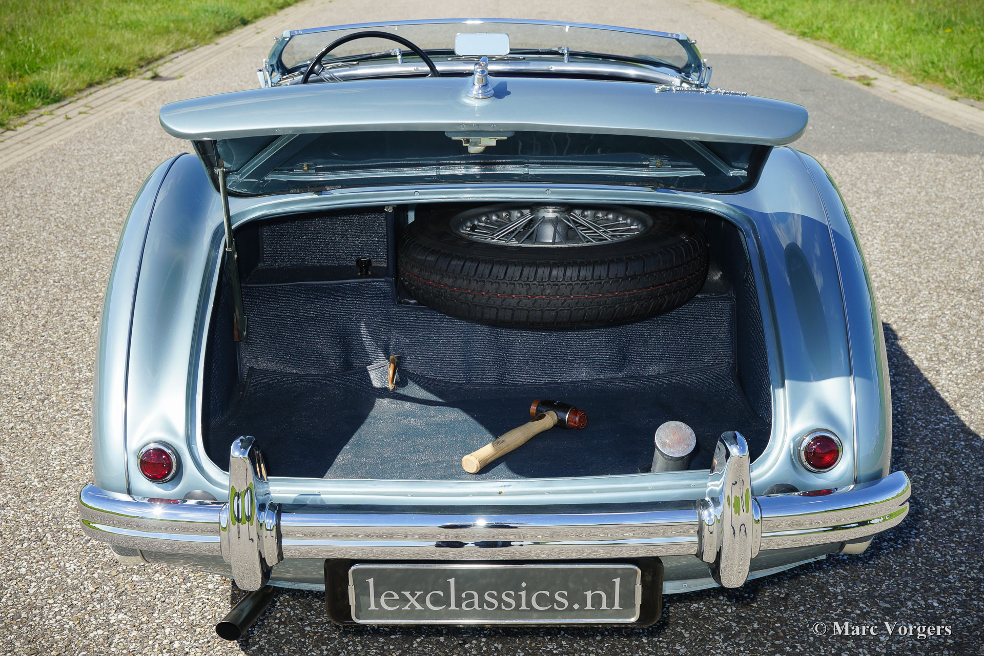 The former Healey models were more Spartan and featured fully detachable soft tops with separate side screens which could be stowed away in the booth.