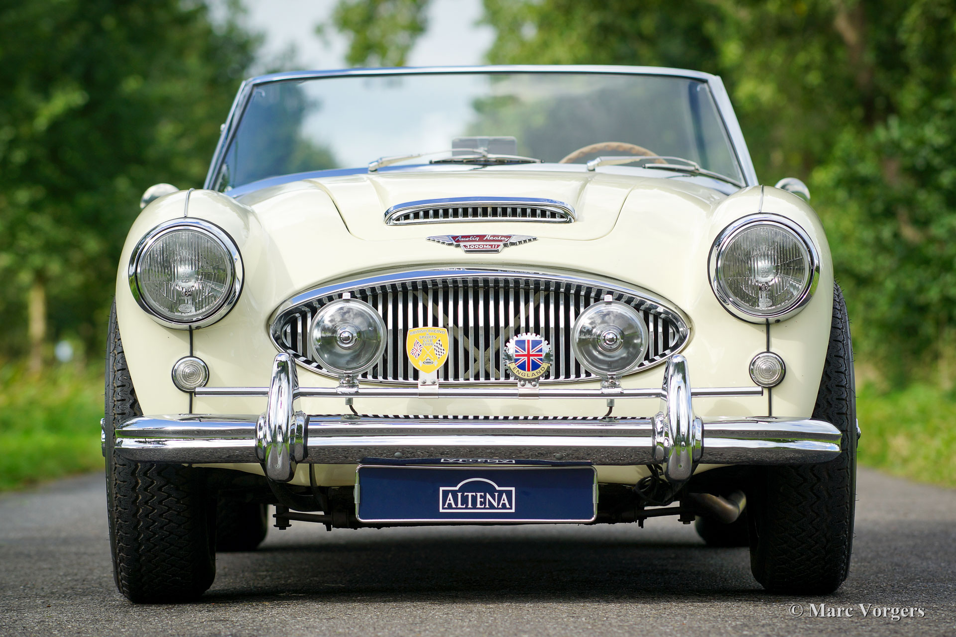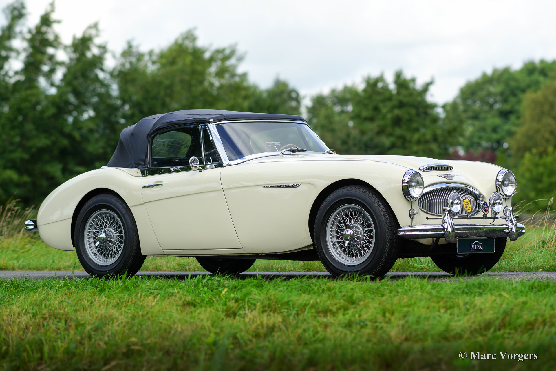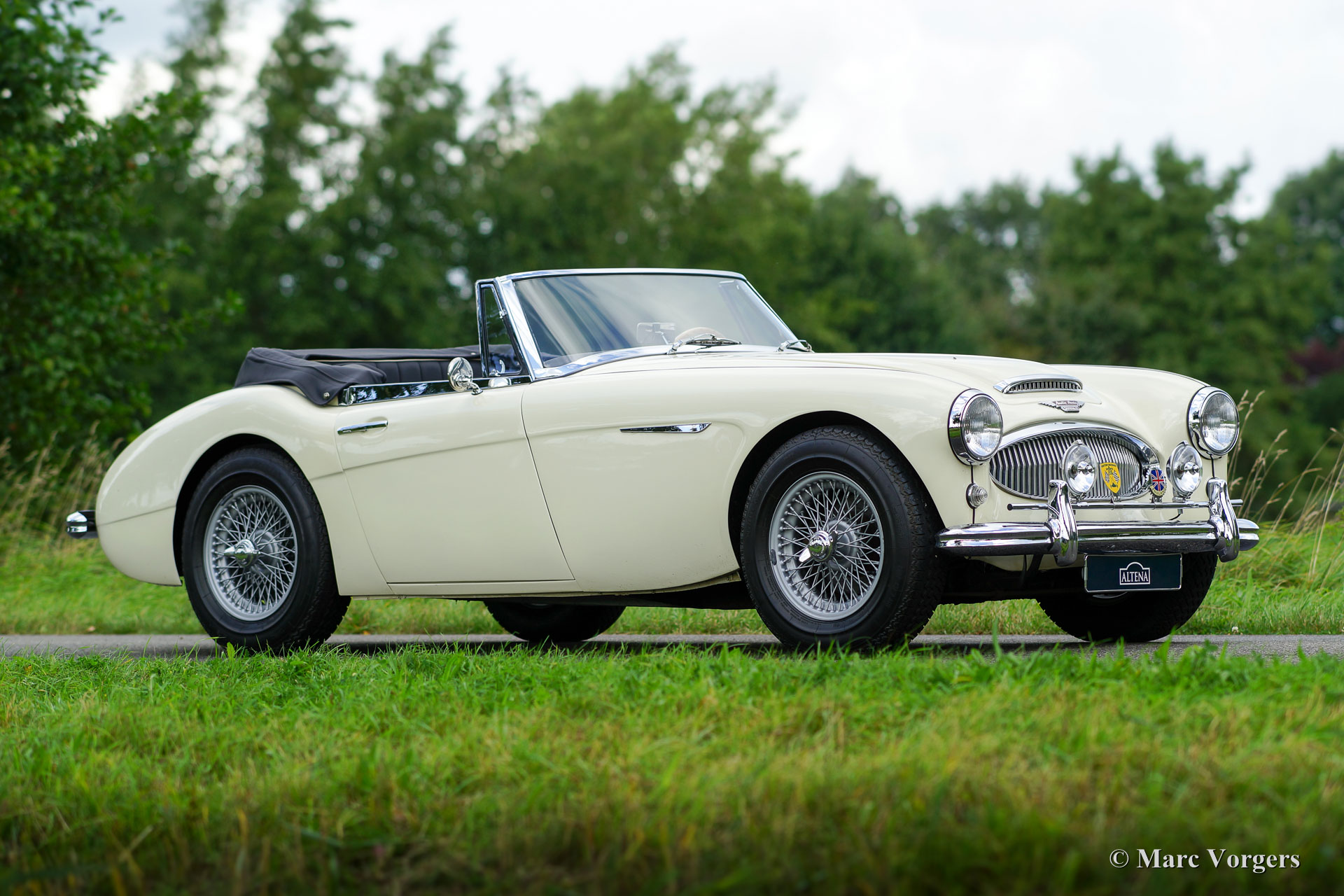 Austin Healey 3000 Mk IIa (convertible), année 1962. Numéro de châssis HBJ7L / 209XX. Couleur Old English White avec un intérieur en cuir noir garni de passepoil blanc et de tapis noir. Capot en vinyle noir, couvercle de la hotte noir et housse de tonneau noir. Ce magnifique ‘Big Healey’ fut restauré détaillée dans le passé, l'automobile est en excellent à superbe condition ! La carrosserie montre un magnifique ajustement en panneau, une excellente peinture, et l'intérieur et le capot sont en état impeccable. Cet Austin Healey est équipé d’un overdrive, des roues de fil peintes en argent, d'un badge-bar avec lampes-spots et badges supplémentaires et d'un alternateur (construit dans le boîtier de dynamo d'origine). C'est un merveilleux et très propre «Big Healey» avec une salle des machines parfaitement détaillée ! Il s'agit d'une «Big Healey» parfaitement conduite magnifique !
