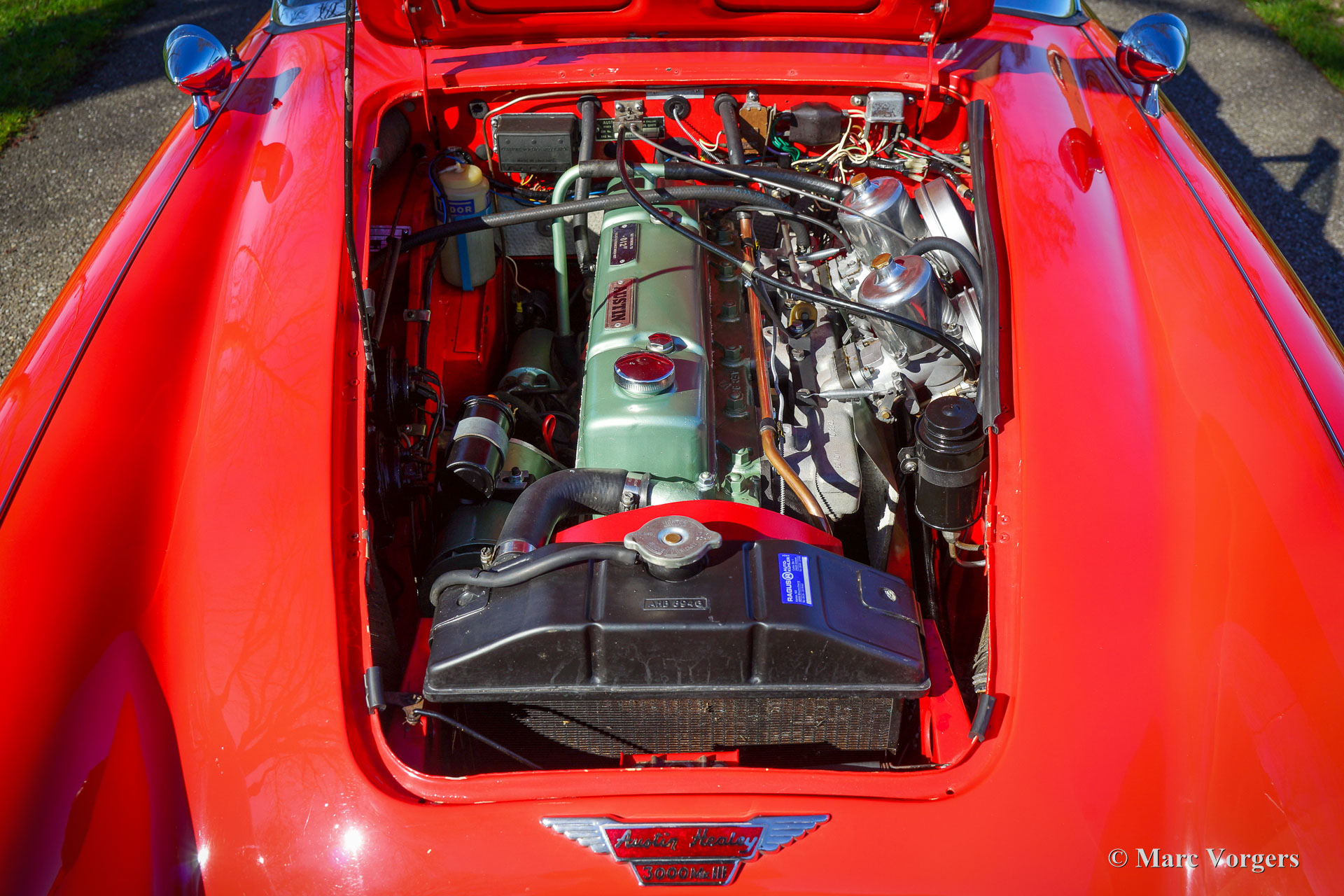 3000 is also known as the "Big Healey". The 3000 is a evolution of the 100/6 model. The engine was given a larger cylinder capacity of 2912 cc. and the 3000 was fitted with disc brakes at the front wheels. This first Austin Healey 3000 is currently known as the 3000 MK I model.