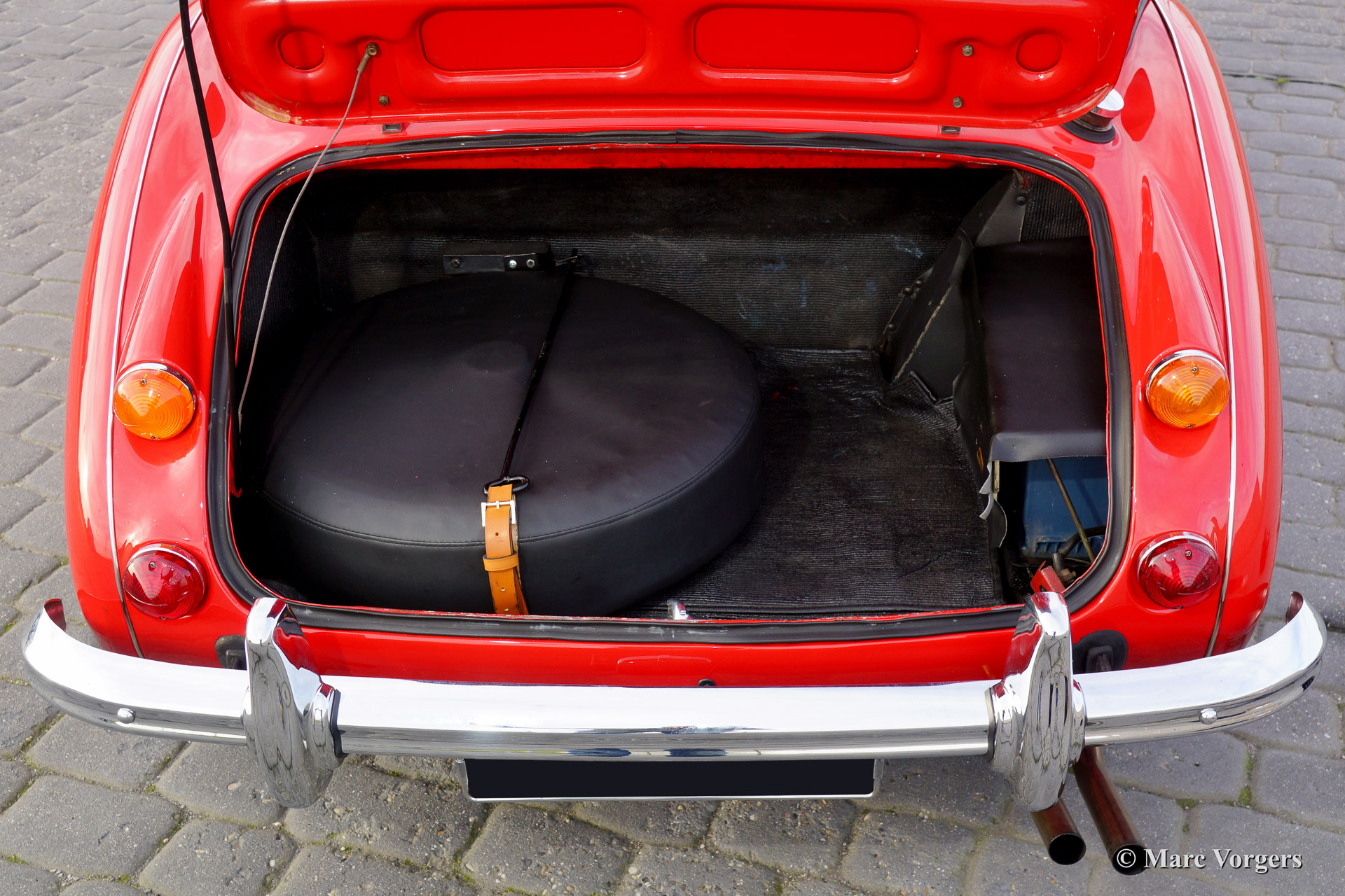 The former Healey models were more Spartan and featured fully detachable soft tops with separate side screens which could be stowed away in the booth.
