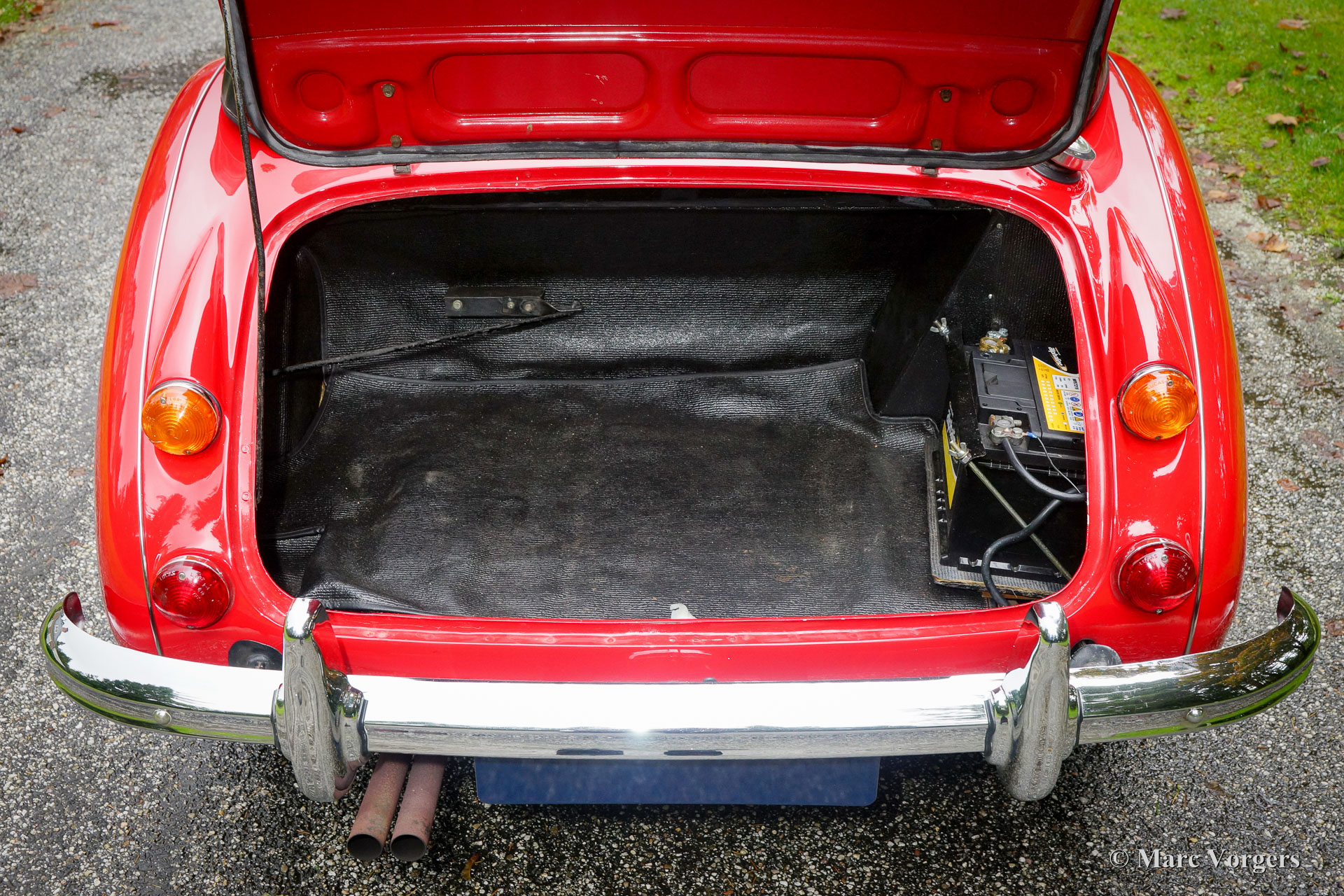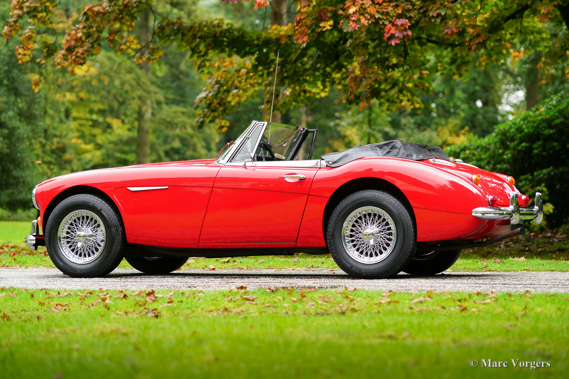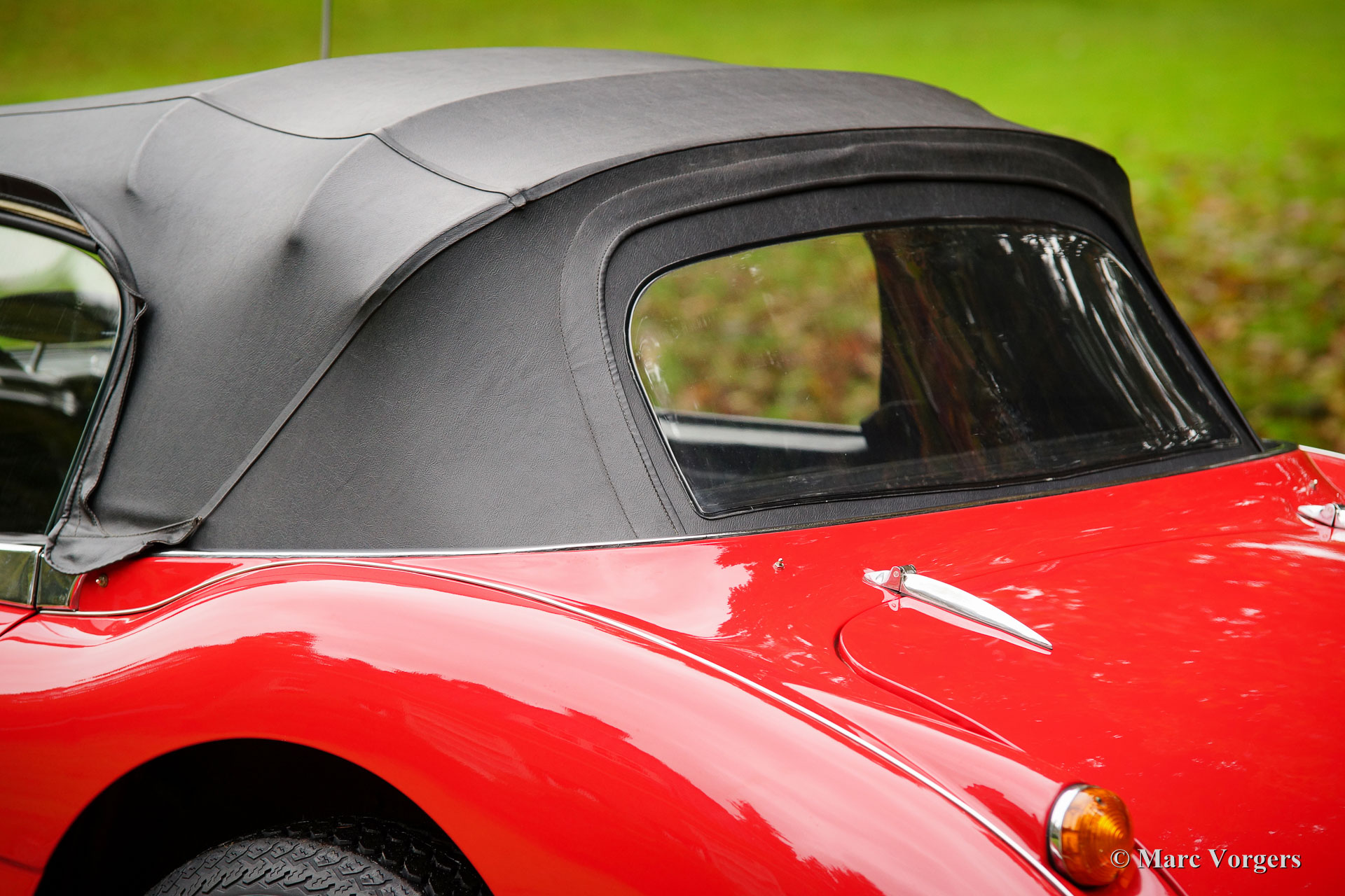 The former Healey models were more Spartan and featured fully detachable soft tops with separate side screens which could be stowed away in the booth.