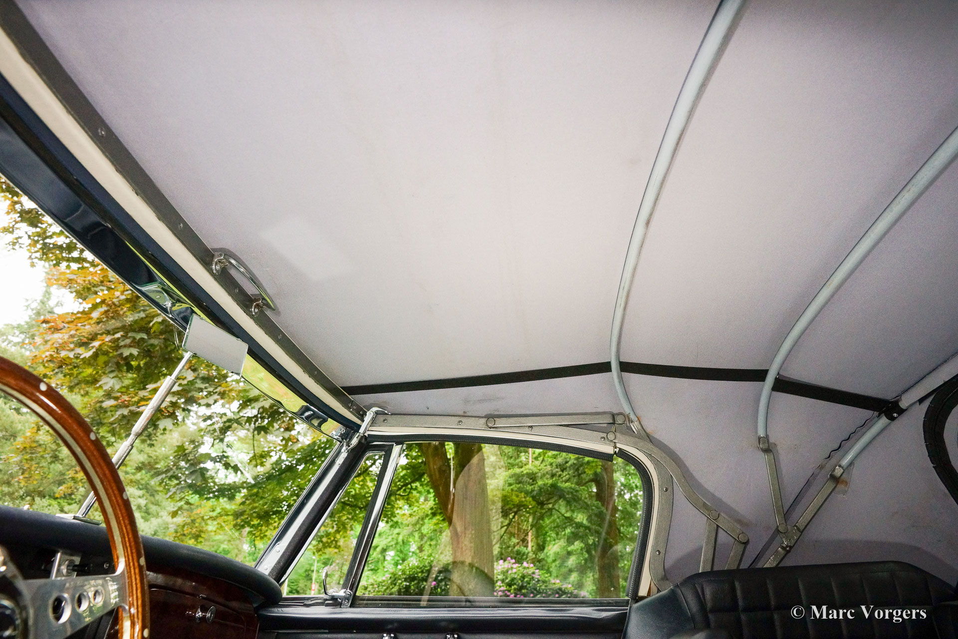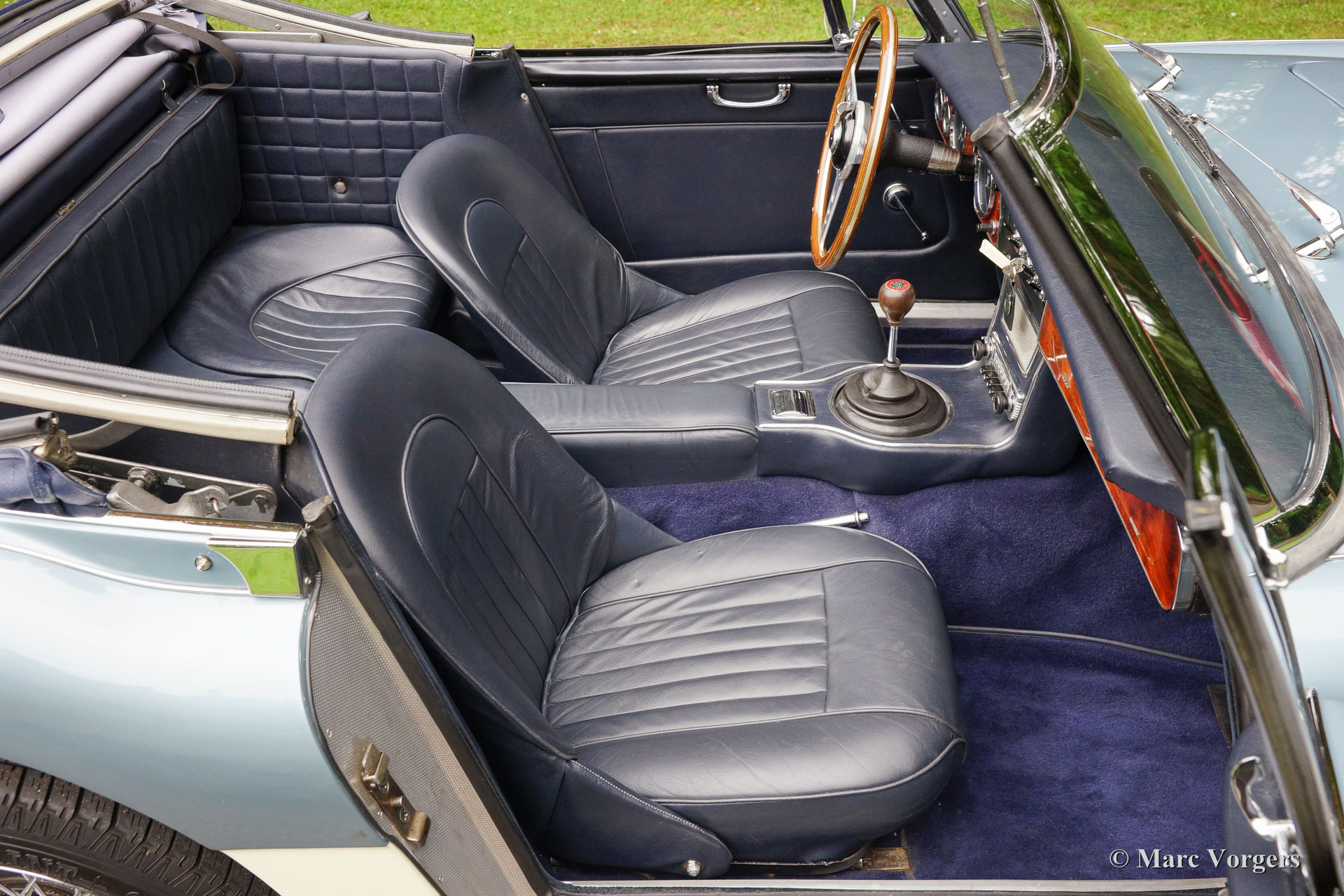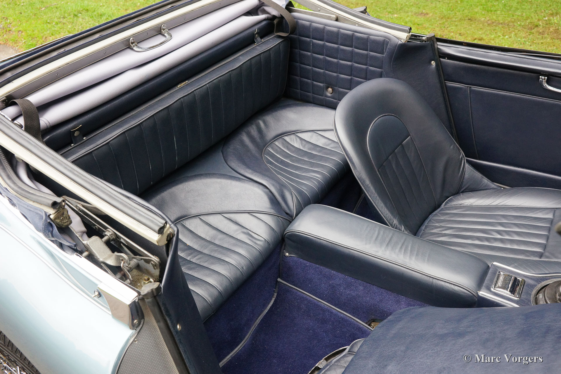 The former Healey models were more Spartan and featured fully detachable soft tops with separate side screens which could be stowed away in the booth.