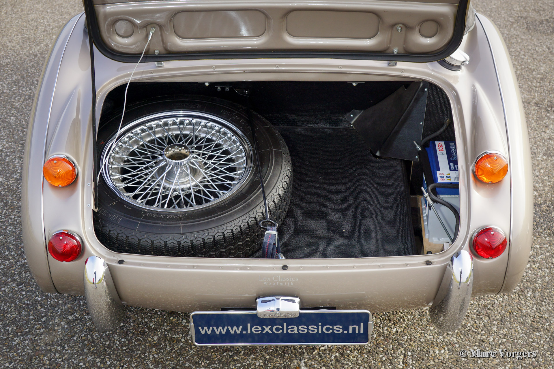 The former Healey models were more Spartan and featured fully detachable soft tops with separate side screens which could be stowed away in the booth.