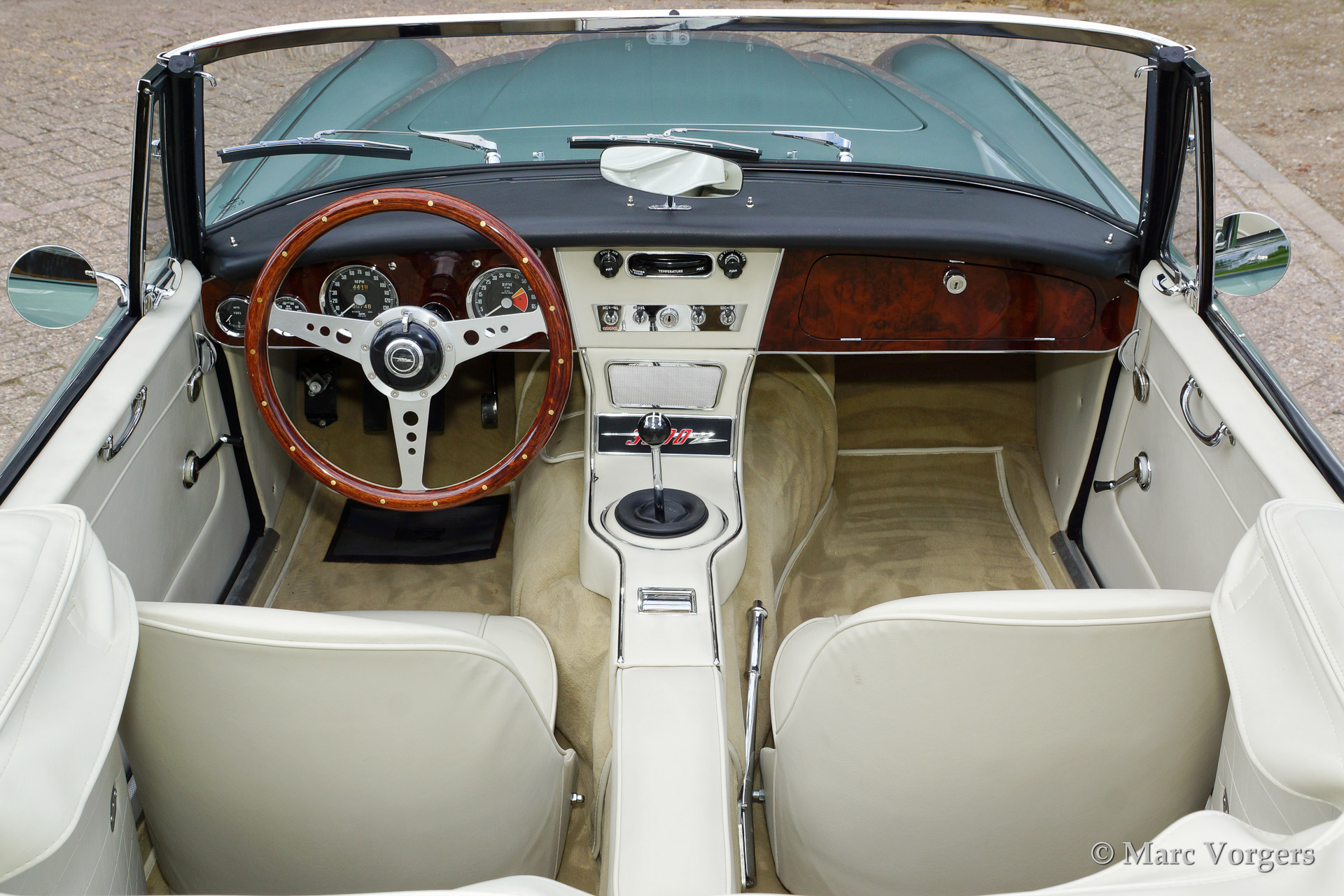 The former Healey models were more Spartan and featured fully detachable soft tops with separate side screens which could be stowed away in the booth.