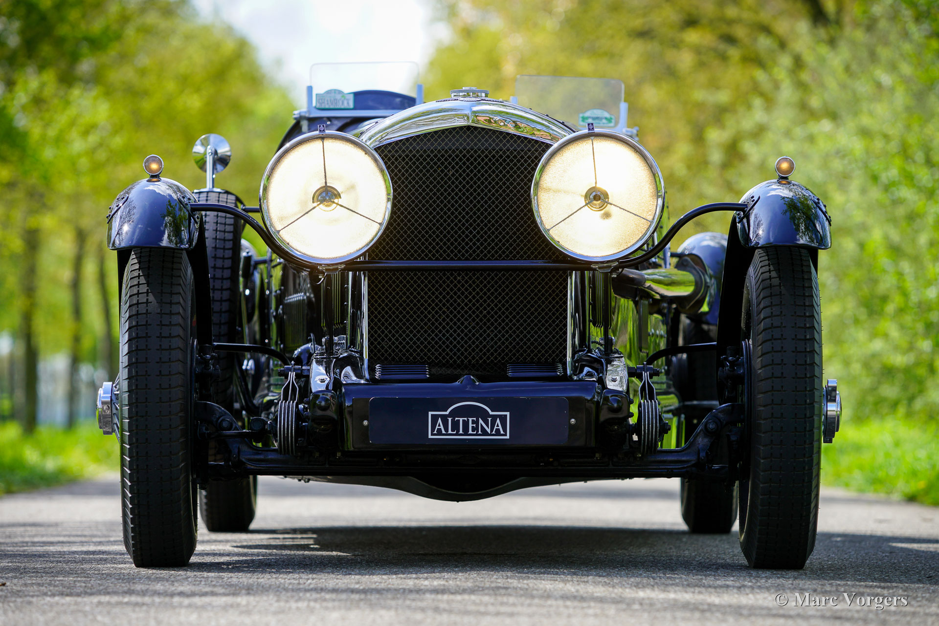 The Bentley 3 Litre was W.O. Bentley’s first design. The car was presented in 1919 but the first cars were sold in 1921. The four cylinder cars of rugged construction where in a class of their own for they combined the size and comfort of the big tourers and saloons with the road holding, and speed of the smaller sports- and racing cars. The Bentley was a true owner-driver car for the sporting motorist and connoisseur. The Bentley car could be had in three different types which were designated with three different radiator badges*. Red badge: short chassis speed model, Blue badge: the early short and then long chassis type for bespoke bodywork, Green badge: very rare and used for about eighteen 100 mph. These Green badge car won at Le Mans in 1924 and 1927 (Old Number Seven.) The 3-Litre was built from 1919 until 1929.