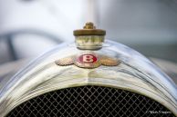 The Bentley 3 Litre was W.O. Bentley’s first design. The car was presented in 1919 but the first cars were sold in 1921. The four cylinder cars of rugged construction where in a class of their own for they combined the size and comfort of the big tourers and saloons with the road holding, and speed of the smaller sports- and racing cars. The Bentley was a true owner-driver car for the sporting motorist and connoisseur. The Bentley car could be had in three different types which were designated with three different radiator badges*. Red badge: short chassis speed model, Blue badge: the early short and then long chassis type for bespoke bodywork, Green badge: very rare and used for about eighteen 100 mph. These Green badge car won at Le Mans in 1924 and 1927 (Old Number Seven.) The 3-Litre was built from 1919 until 1929.
