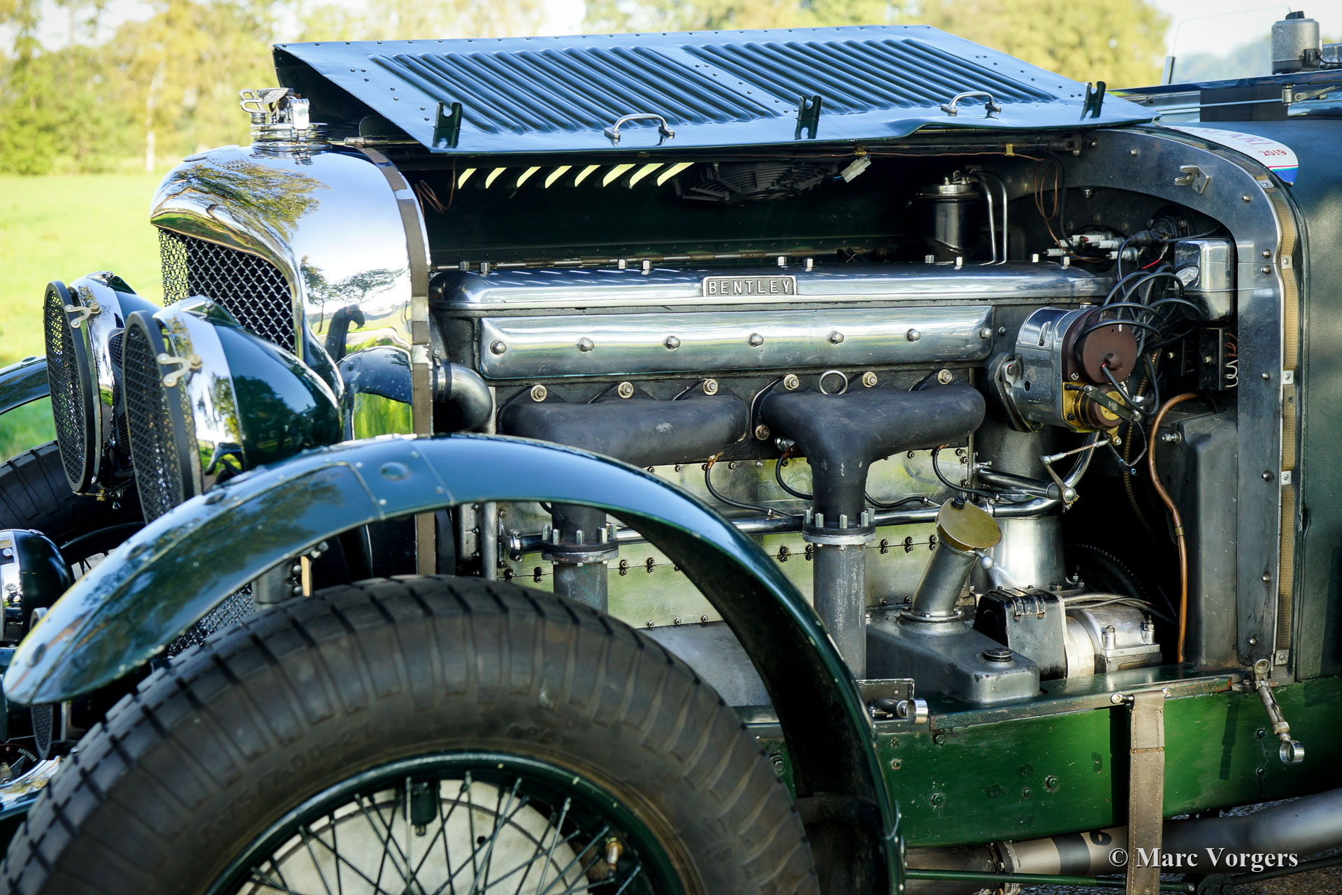 The Bentley 3 Litre was W.O. Bentley’s first design. The car was presented in 1919 but the first cars were sold in 1921. The four cylinder cars of rugged construction where in a class of their own for they combined the size and comfort of the big tourers and saloons with the road holding, and speed of the smaller sports- and racing cars. The Bentley was a true owner-driver car for the sporting motorist and connoisseur. The Bentley car could be had in three different types which were designated with three different radiator badges*. Red badge: short chassis speed model, Blue badge: the early short and then long chassis type for bespoke bodywork, Green badge: very rare and used for about eighteen 100 mph. These Green badge car won at Le Mans in 1924 and 1927 (Old Number Seven.) The 3-Litre was built from 1919 until 1929.