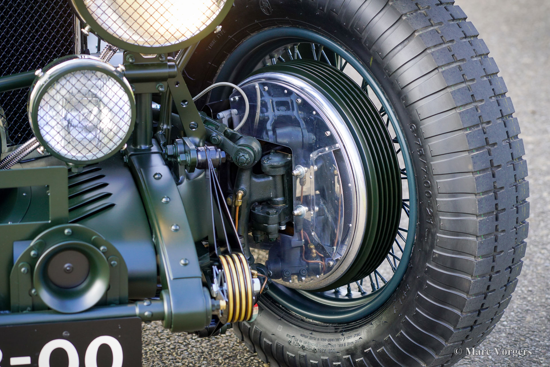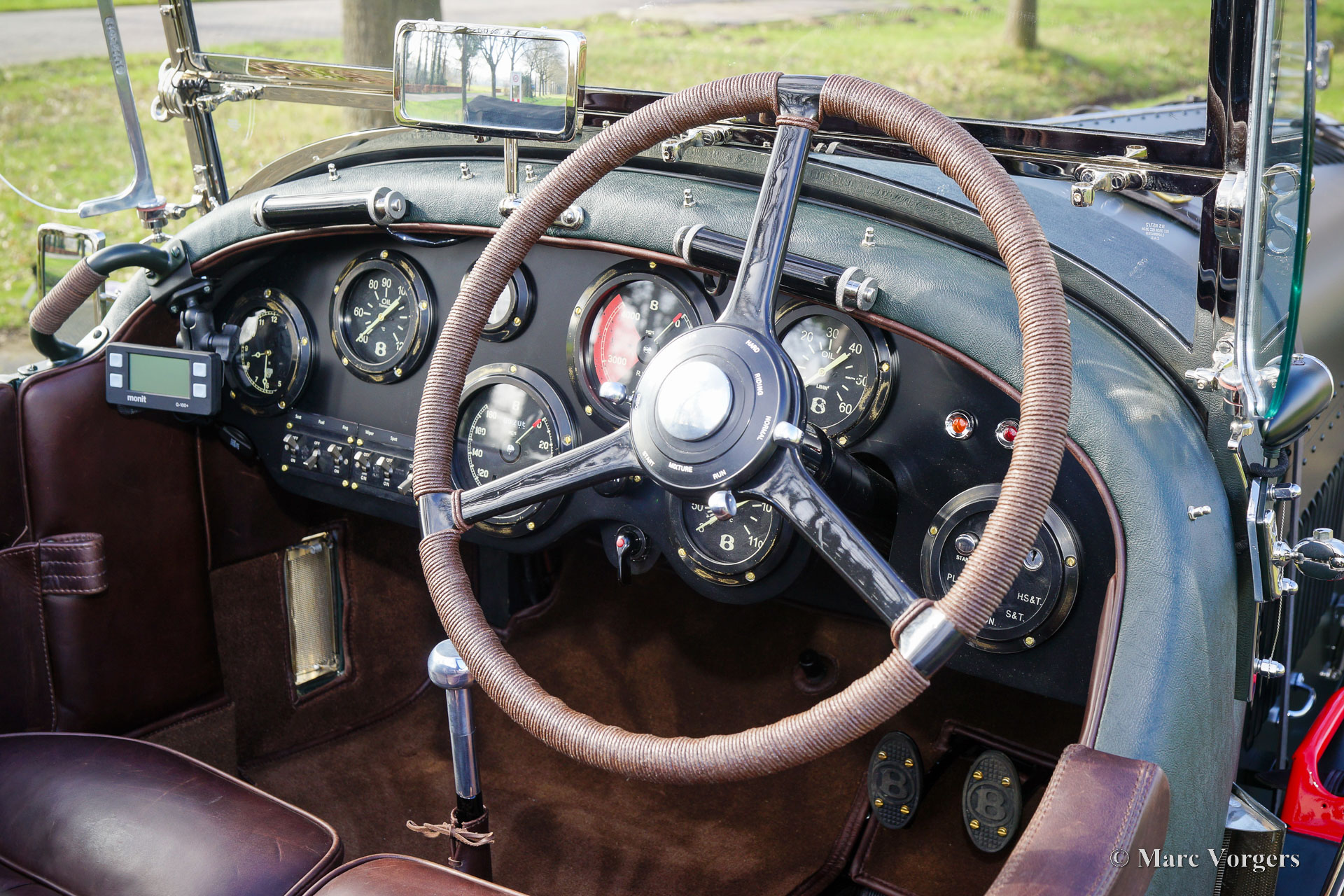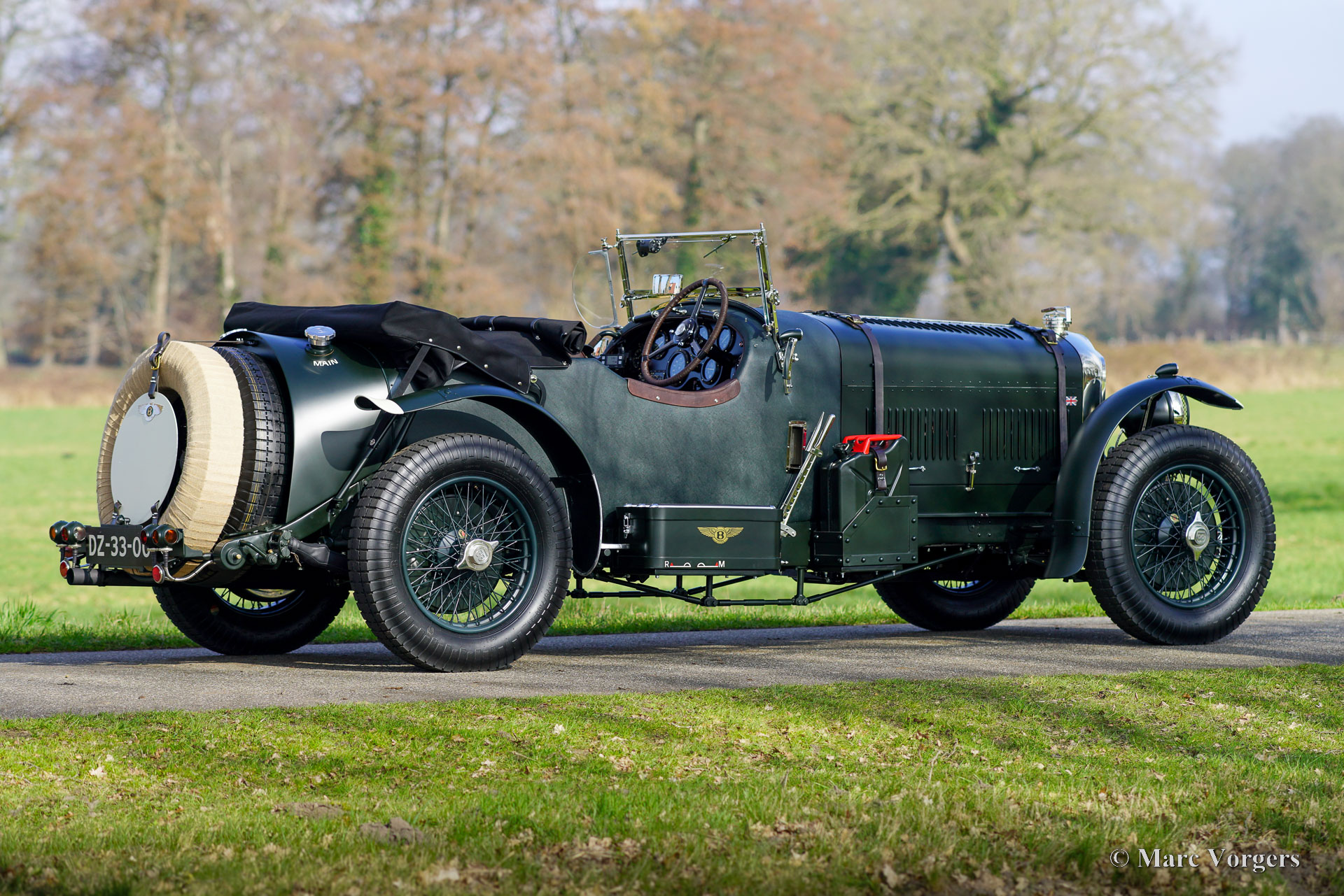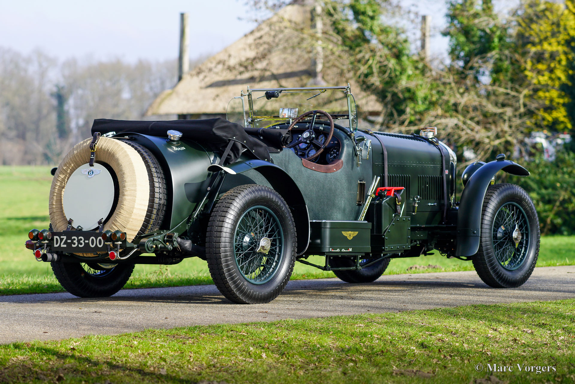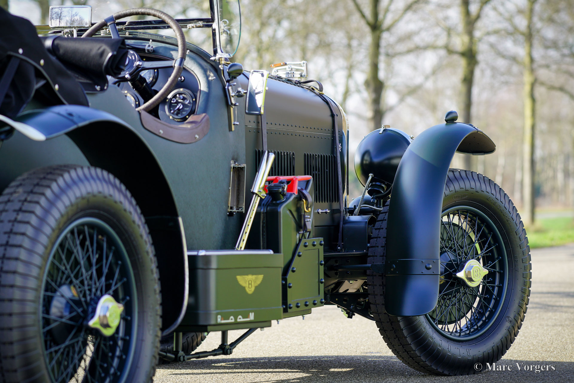 The Bentley 3 Litre was W.O. Bentley’s first design. The car was presented in 1919 but the first cars were sold in 1921. The four cylinder cars of rugged construction where in a class of their own for they combined the size and comfort of the big tourers and saloons with the road holding, and speed of the smaller sports- and racing cars. The Bentley was a true owner-driver car for the sporting motorist and connoisseur. The Bentley car could be had in three different types which were designated with three different radiator badges*. Red badge: short chassis speed model, Blue badge: the early short and then long chassis type for bespoke bodywork, Green badge: very rare and used for about eighteen 100 mph. These Green badge car won at Le Mans in 1924 and 1927 (Old Number Seven.) The 3-Litre was built from 1919 until 1929.