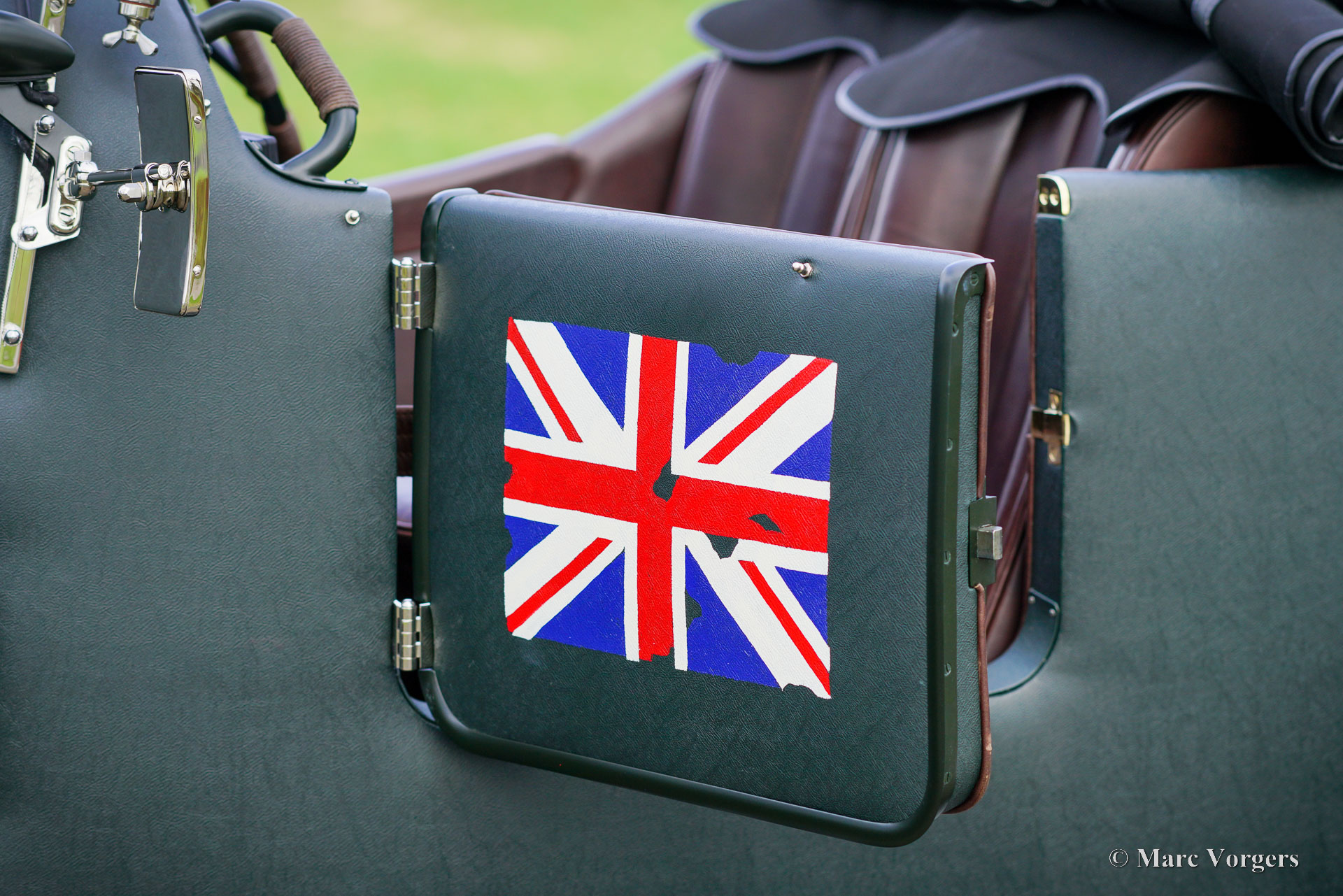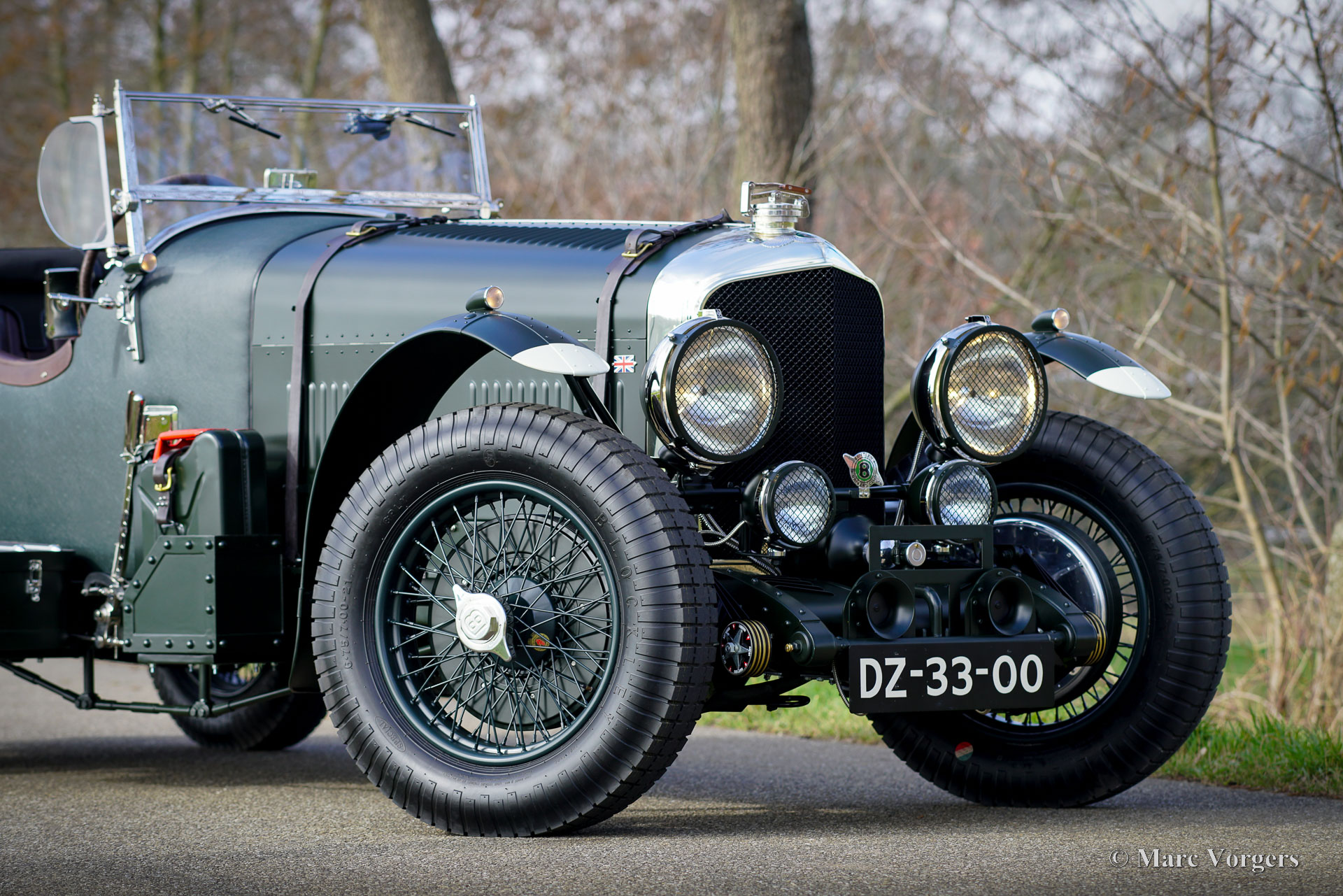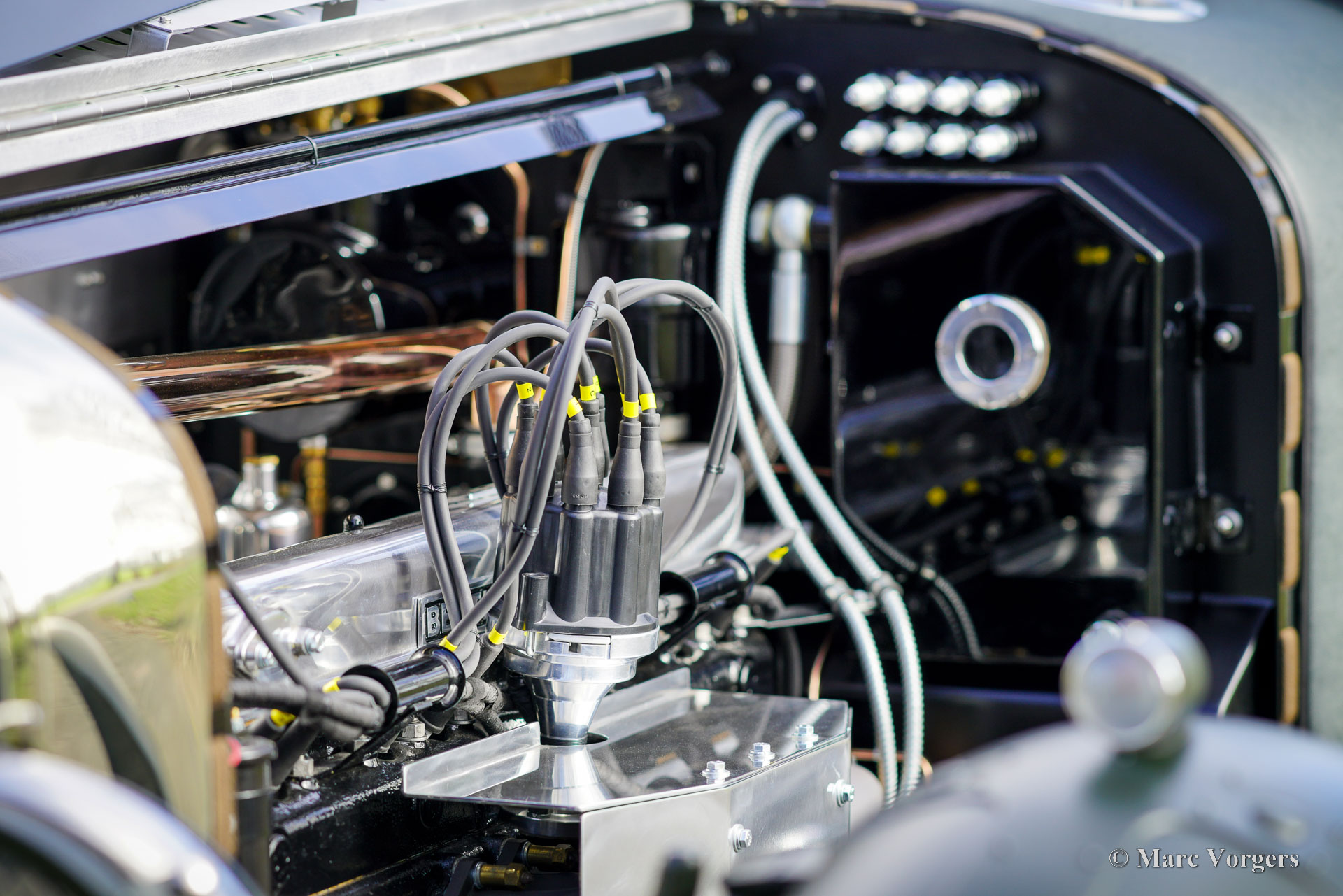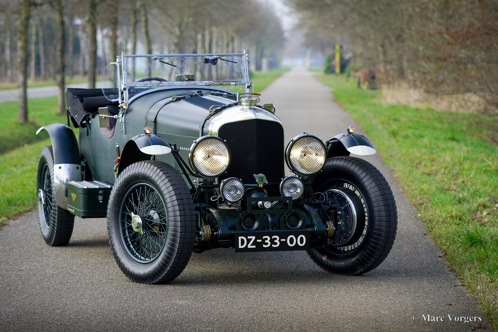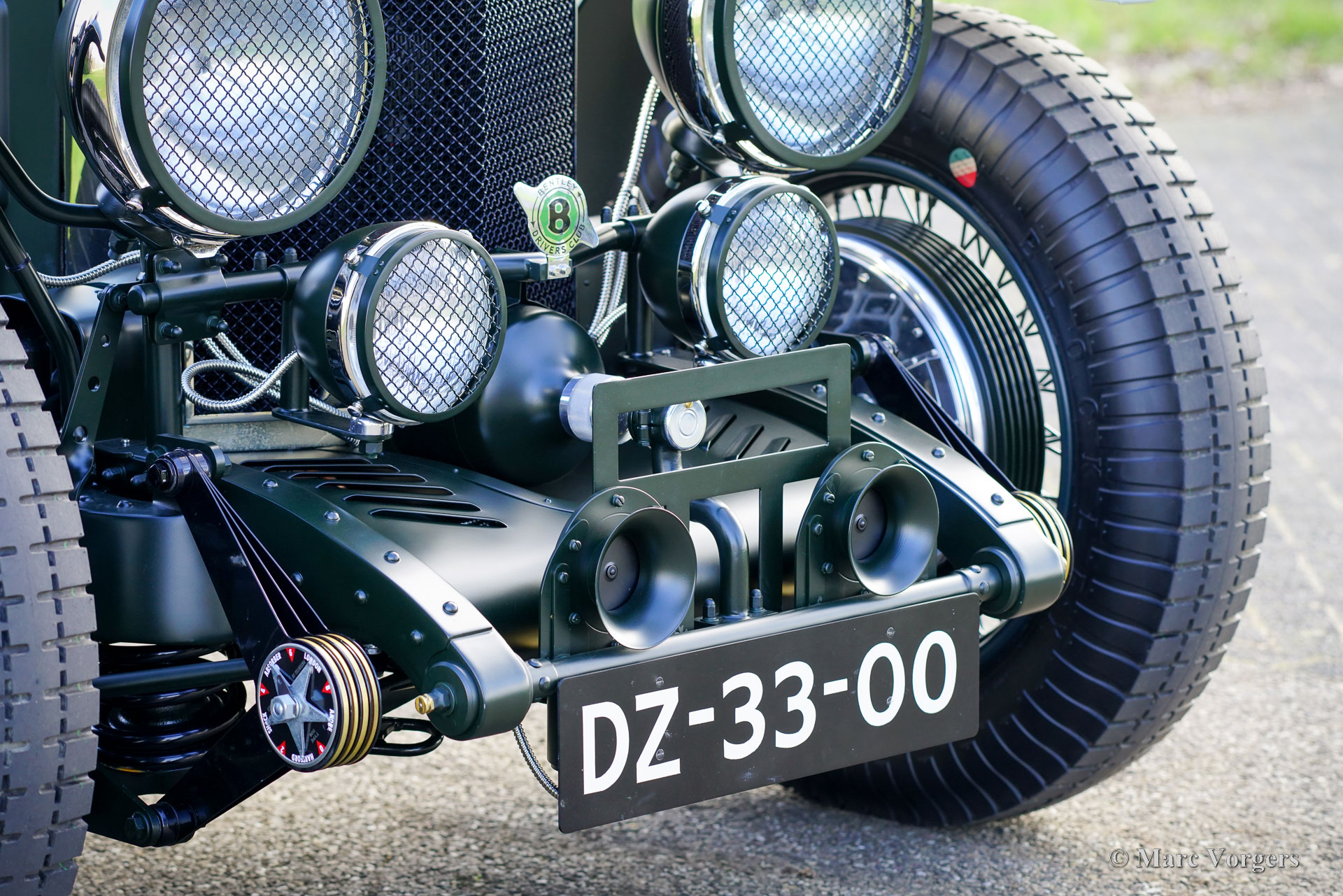 The Bentley 3 Litre was W.O. Bentley’s first design. The car was presented in 1919 but the first cars were sold in 1921. The four cylinder cars of rugged construction where in a class of their own for they combined the size and comfort of the big tourers and saloons with the road holding, and speed of the smaller sports- and racing cars. The Bentley was a true owner-driver car for the sporting motorist and connoisseur. The Bentley car could be had in three different types which were designated with three different radiator badges*. Red badge: short chassis speed model, Blue badge: the early short and then long chassis type for bespoke bodywork, Green badge: very rare and used for about eighteen 100 mph. These Green badge car won at Le Mans in 1924 and 1927 (Old Number Seven.) The 3-Litre was built from 1919 until 1929.