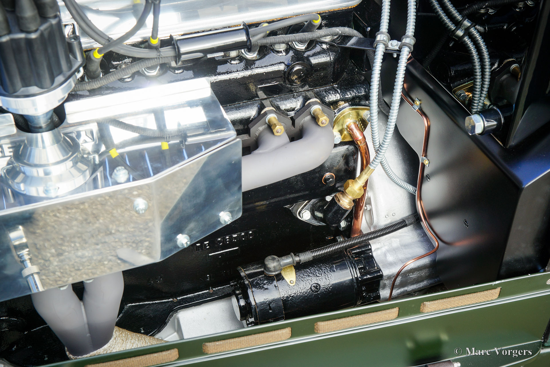 Bentley Speed-8 ‘Bobtail’ année châssis 1938. Numéro de châssis B206CF, numéro de moteur B80 103BG. Couleur vert foncé mat (British Racing Green) combiné à un intérieur entièrement en cuir brun foncé garni d'un tapis en laine brun foncé. Capote et couvre tonneau en mohair noir. Cette impressionnante Bentley fut construite sur mesure pour notre client par Racing Green Engineering (RGE) de Wales UK. Nous sommes un représentant officiel de RGE, nous pouvons également réaliser vos rêves Bentley. Ce magnifique Bentley « Bobtail » fut récemment terminé après une classe supérieure construite dans la période 2021 -2022. La conception de la carrosserie fut inspirée par la Bentley 4,5 Litre « Bobtail » originale de 1928 qui a couru au 24 Heures du Mans dans les années 1928 et 1929. Les artisans qualifiés de RGE ont construit la carrosserie en aluminium à la perfection à la main. Le châssis est un « Derby » Bentley 4¼ litres qui a été amélioré en détail pour offrir une sensation et une conduite plus modernes. Le moteur est un huit cylindres en ligne B80 de 5575 cm3 équipé de quatre S.U. carburateurs. La puissance est transmise aux roues arrière via une boîte manuelle à 5 rapports. Cette Bentley fut construite pour une utilisation intensive dans les rallyes historiques longue distance. Tout a été fait pour rendre la voiture aussi confortable et facile à utiliser que possible. Le moteur est équipé d'un système d'huile à carter sec et la voiture est équipée de deux réservoirs d'essence, de grands coffres de rangement sur les côtés, de sièges chauffants et d'un tripmaster Monit. Notre client attend avec impatience de nombreuses aventures au volant de cette magnifique Bentley construite sur mesure par Racing Green Engineering. Contactez-nous si vous souhaitez que vos rêves Bentley deviennent réalité.