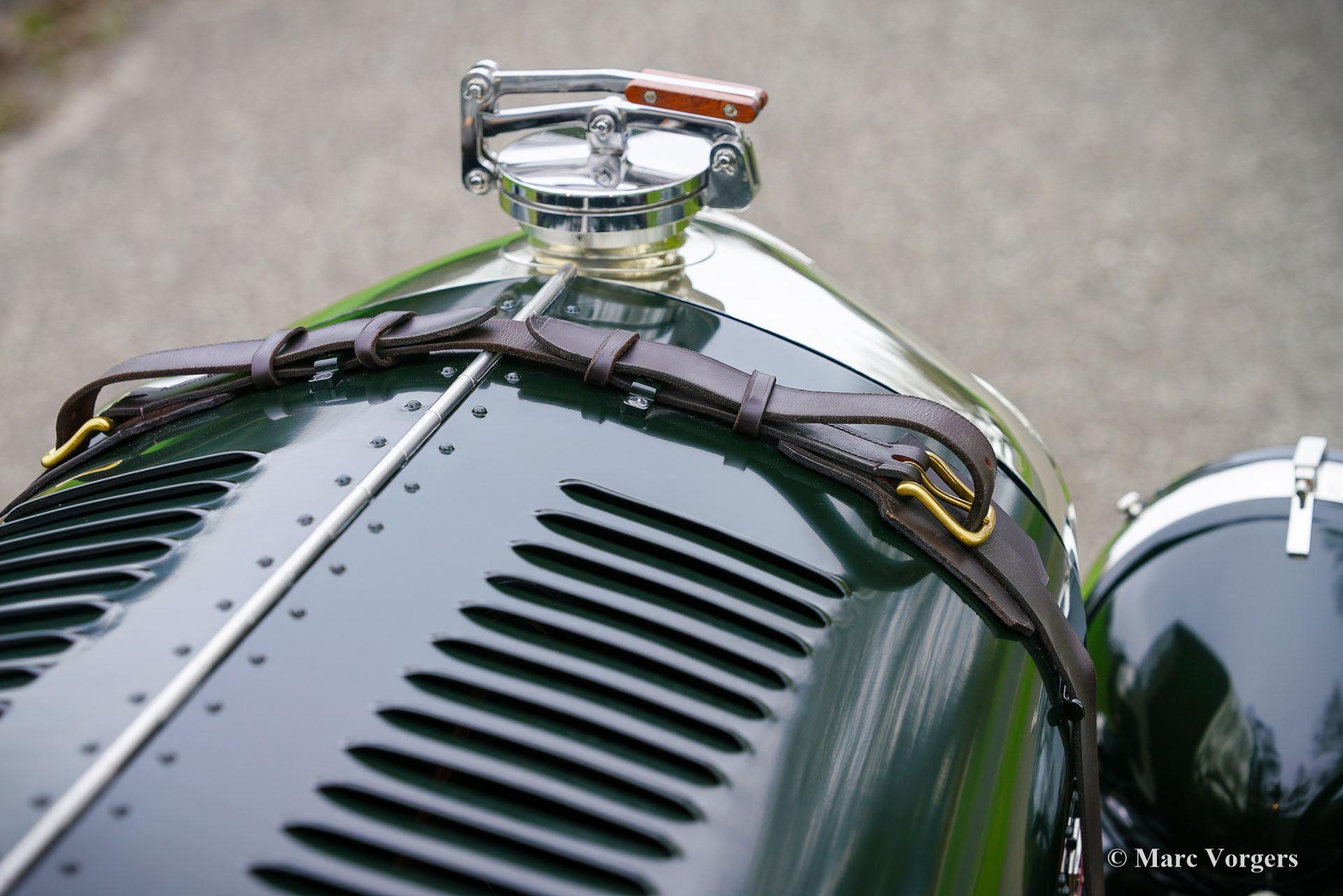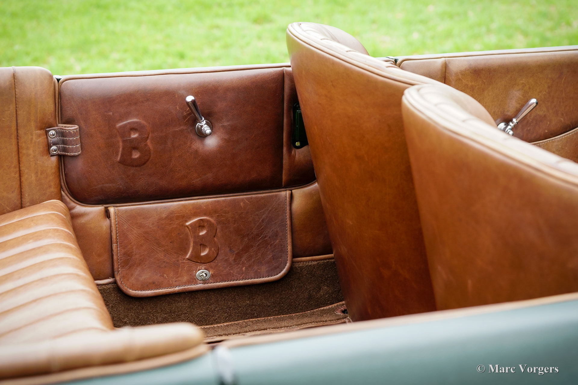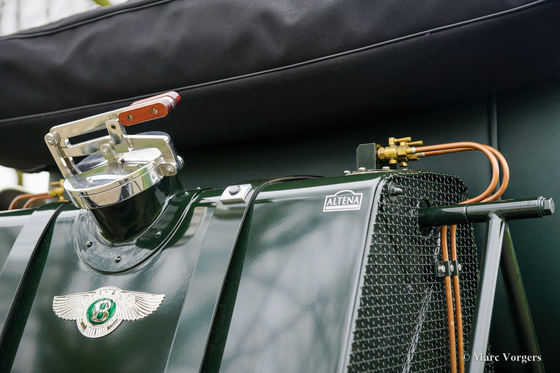 The Bentley 3 Litre was W.O. Bentley’s first design. The car was presented in 1919 but the first cars were sold in 1921. The four cylinder cars of rugged construction where in a class of their own for they combined the size and comfort of the big tourers and saloons with the road holding, and speed of the smaller sports- and racing cars. The Bentley was a true owner-driver car for the sporting motorist and connoisseur. The Bentley car could be had in three different types which were designated with three different radiator badges*. Red badge: short chassis speed model, Blue badge: the early short and then long chassis type for bespoke bodywork, Green badge: very rare and used for about eighteen 100 mph. These Green badge car won at Le Mans in 1924 and 1927 (Old Number Seven.) The 3-Litre was built from 1919 until 1929.