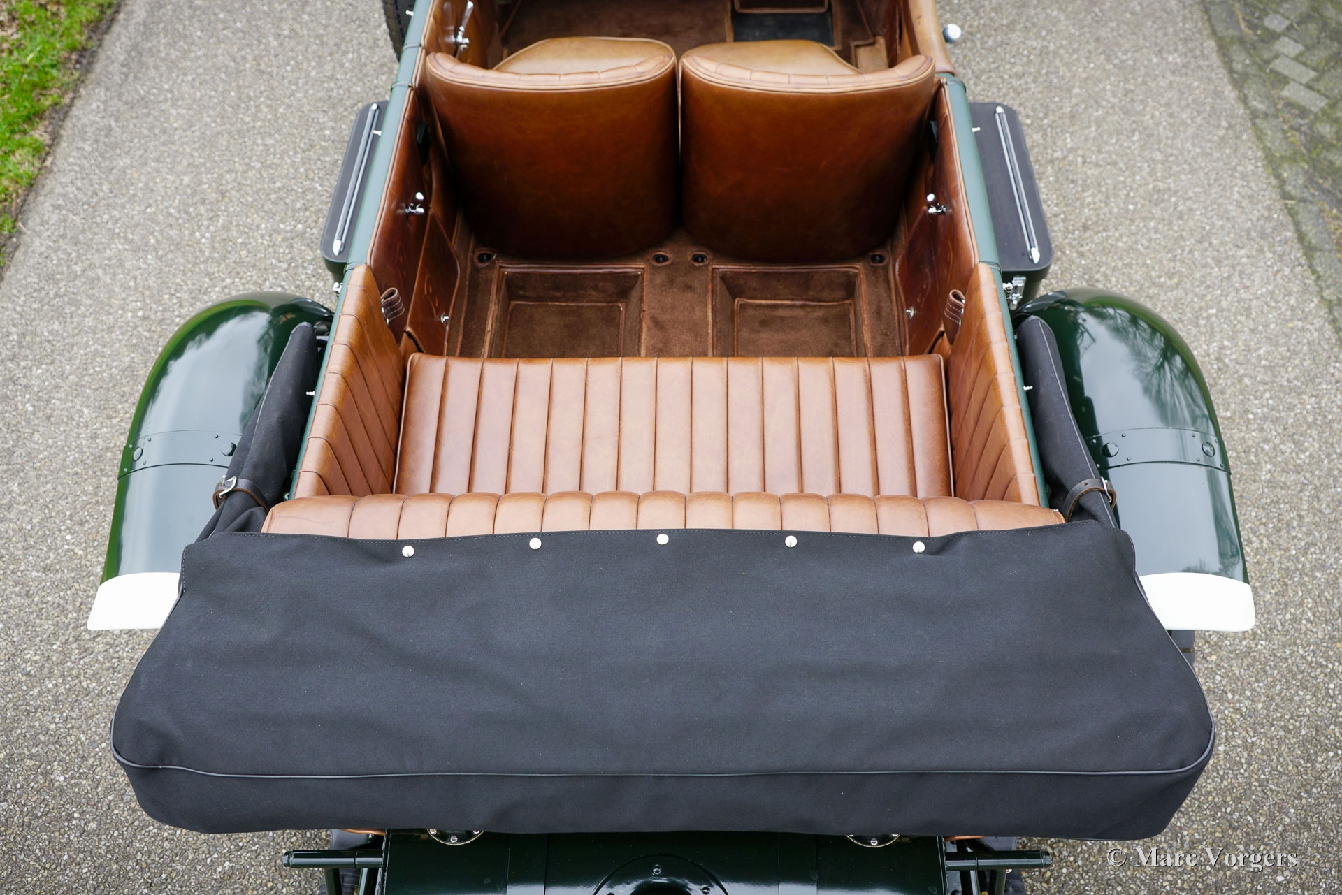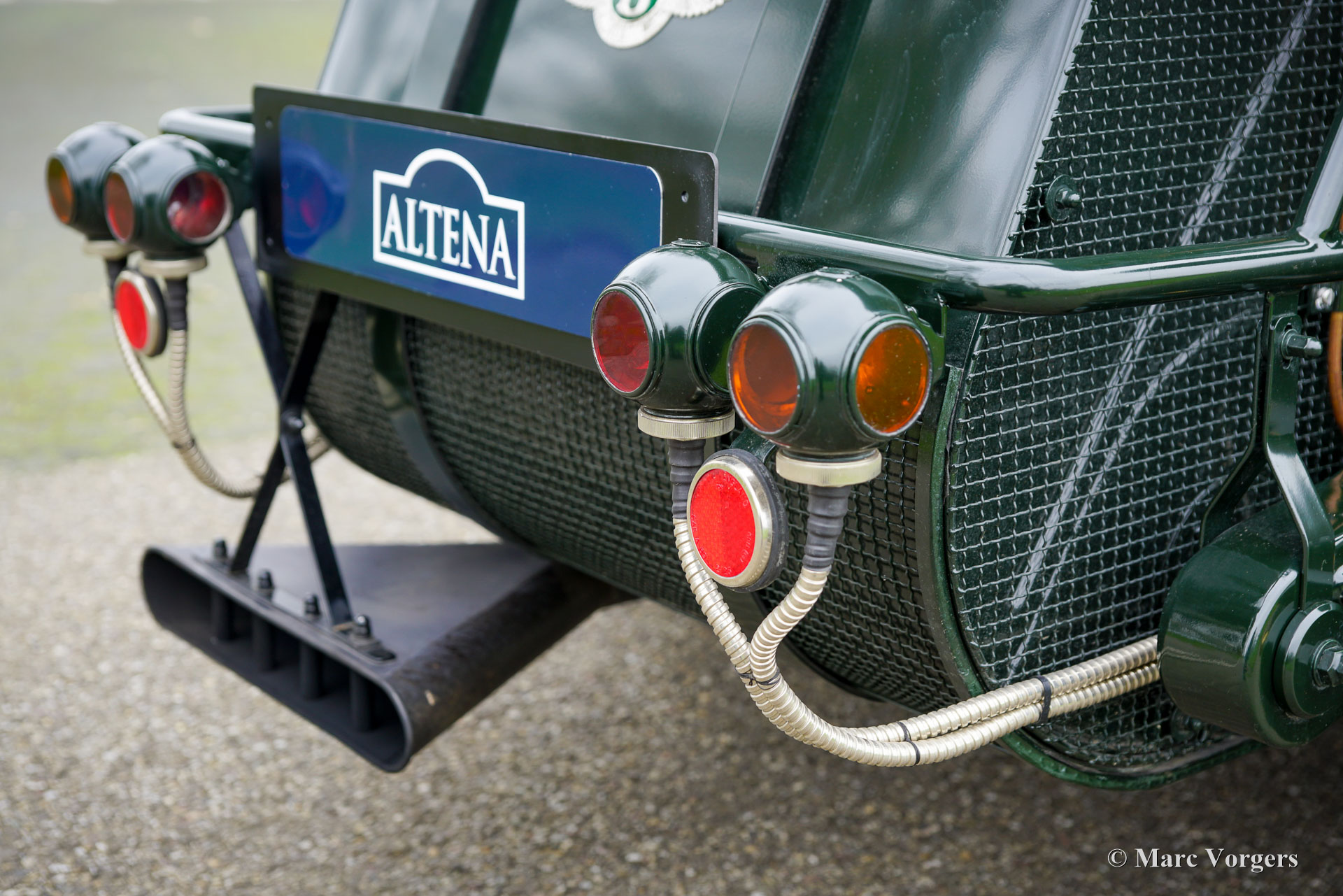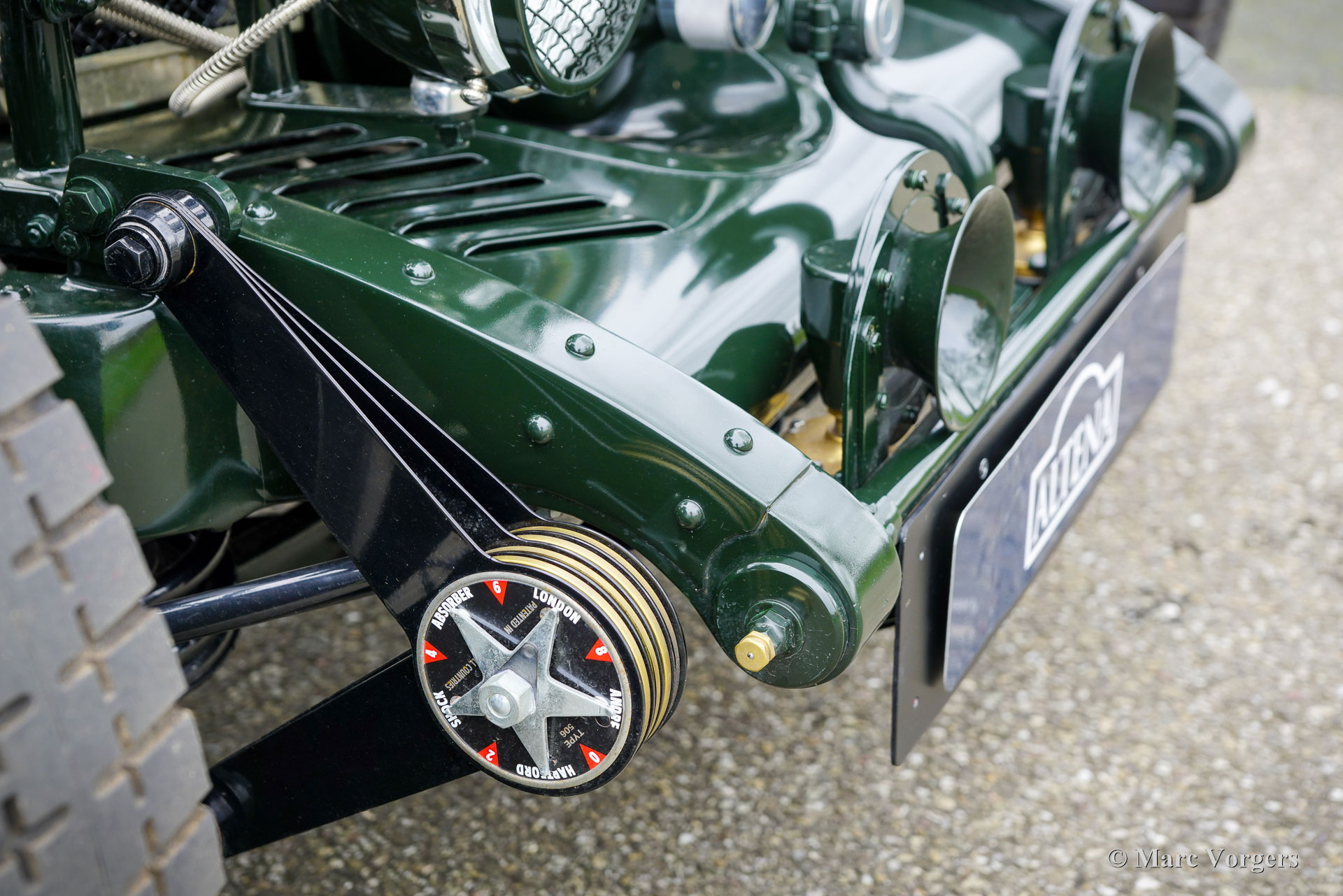 The Bentley 3 Litre was W.O. Bentley’s first design. The car was presented in 1919 but the first cars were sold in 1921. The four cylinder cars of rugged construction where in a class of their own for they combined the size and comfort of the big tourers and saloons with the road holding, and speed of the smaller sports- and racing cars. The Bentley was a true owner-driver car for the sporting motorist and connoisseur. The Bentley car could be had in three different types which were designated with three different radiator badges*. Red badge: short chassis speed model, Blue badge: the early short and then long chassis type for bespoke bodywork, Green badge: very rare and used for about eighteen 100 mph. These Green badge car won at Le Mans in 1924 and 1927 (Old Number Seven.) The 3-Litre was built from 1919 until 1929.