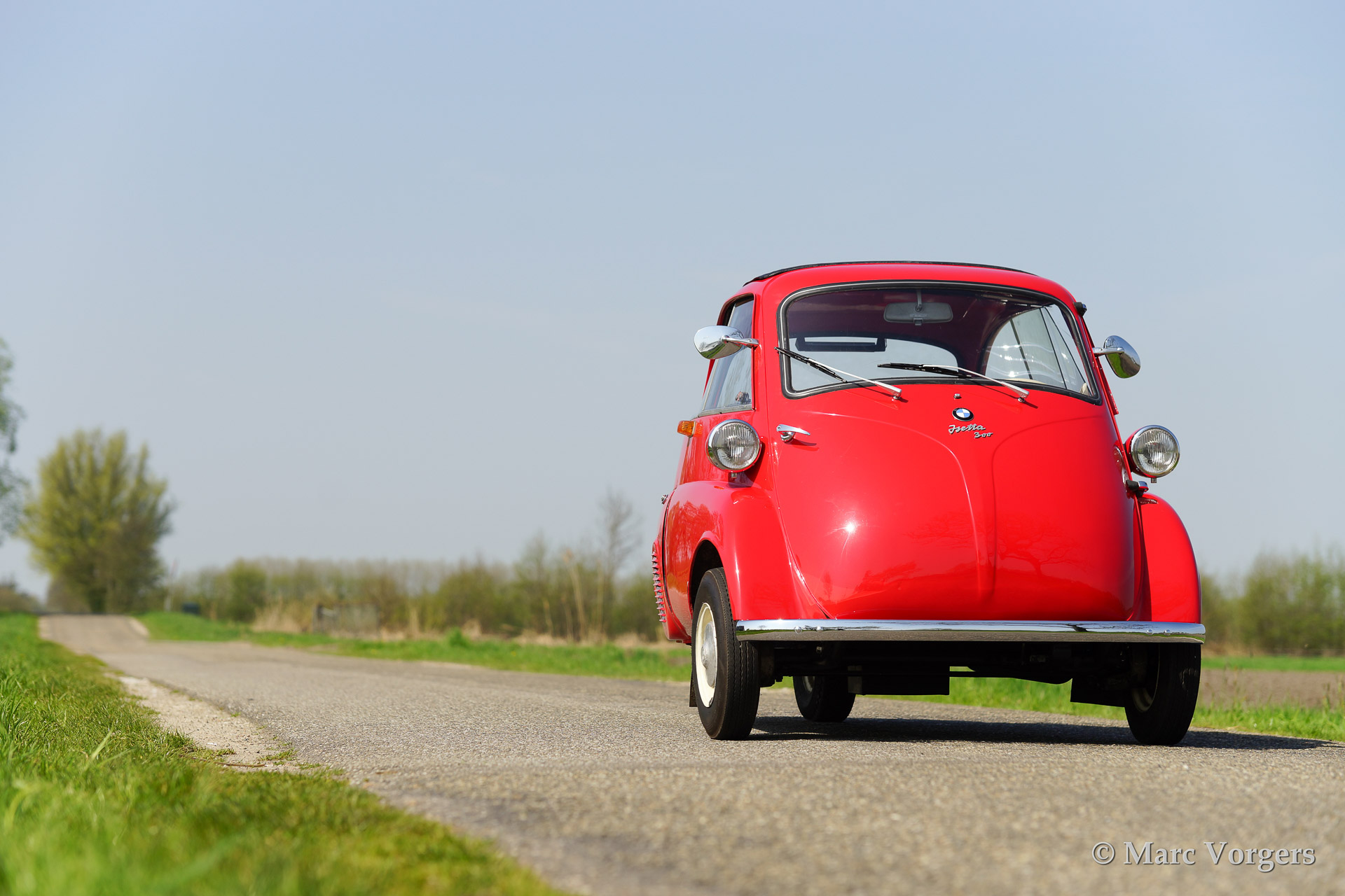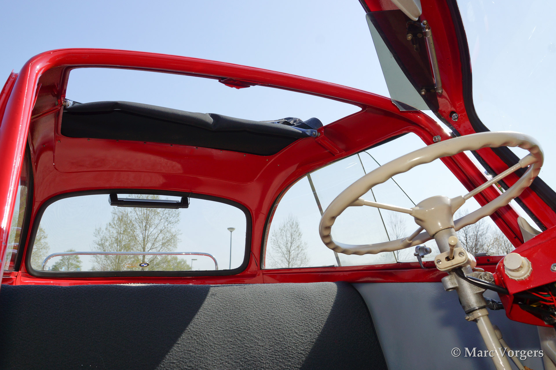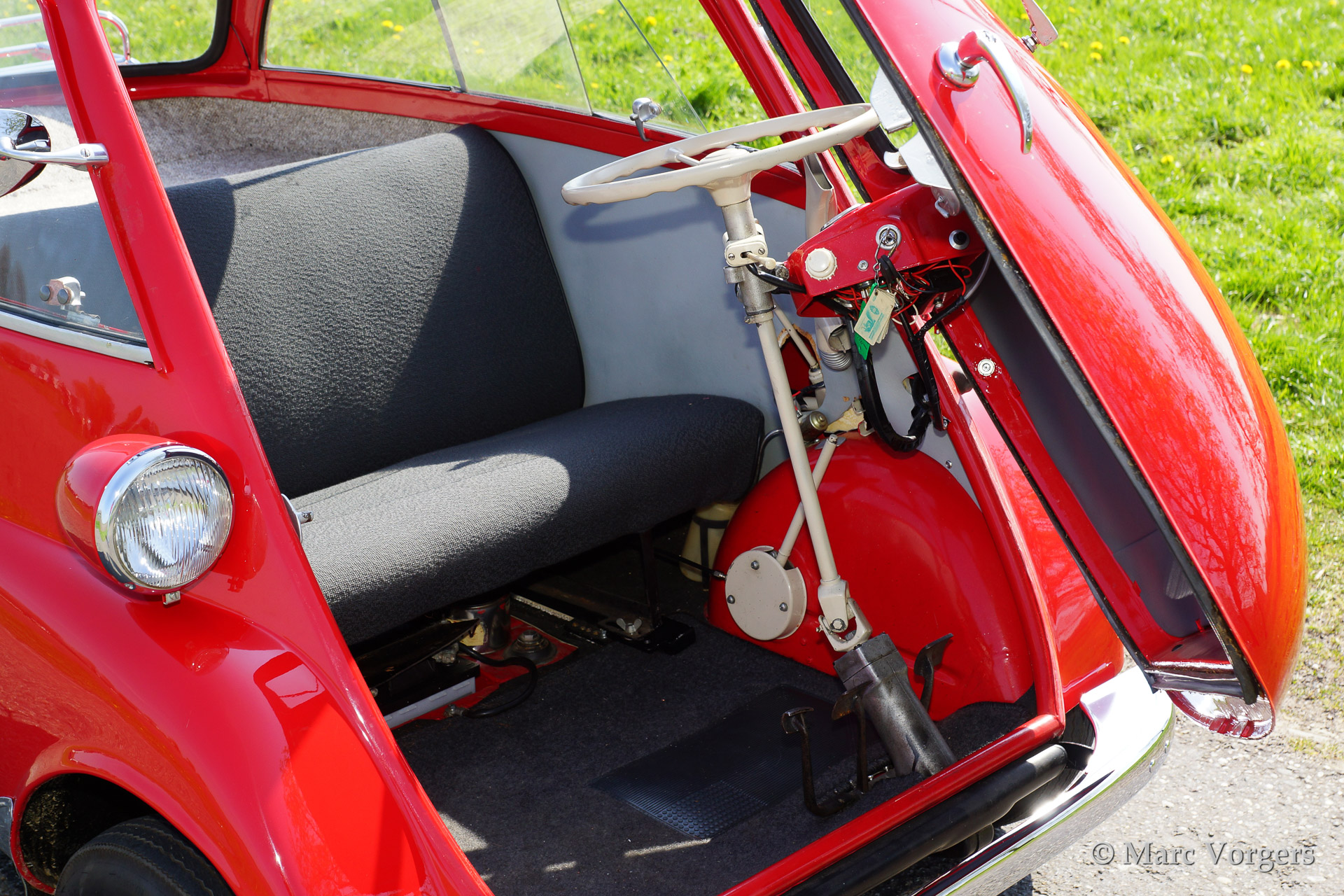 BMW Isetta 300, year 1961. Colour red with a black grey interior. This wonderful little 3-wheeler was restored in Danmark. It is a unique experience to drive or to be driven in this midget cocoon on wheels!