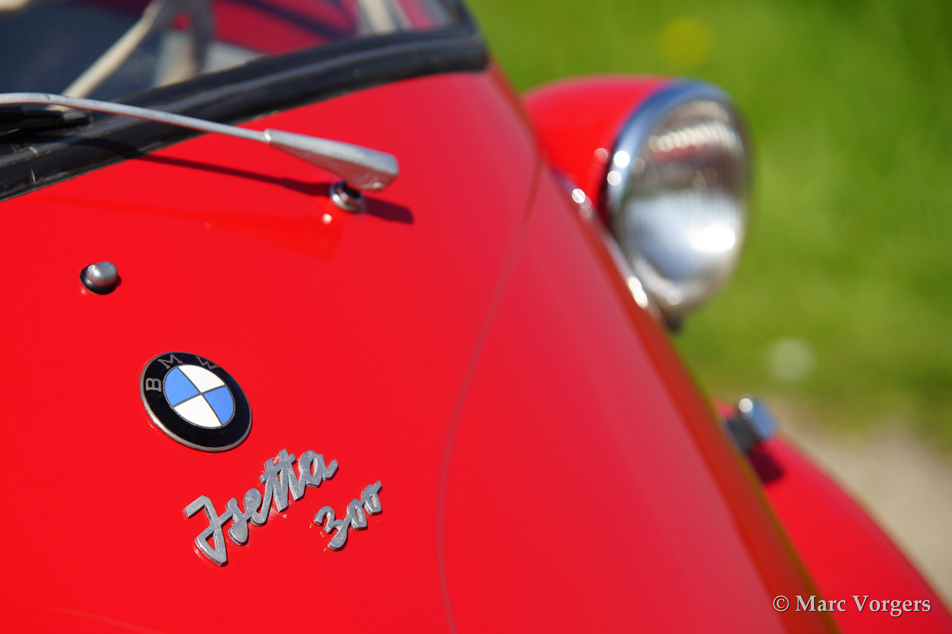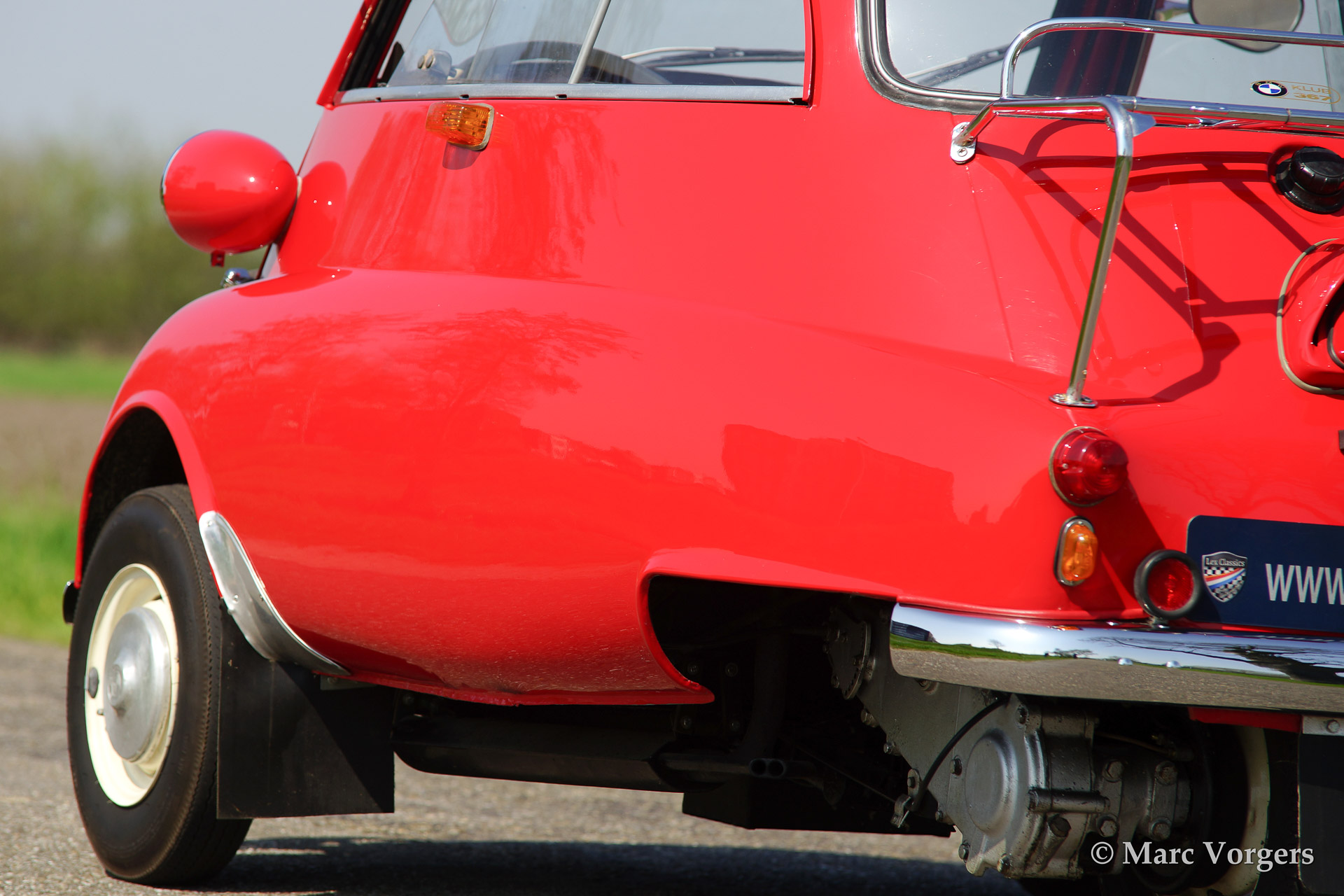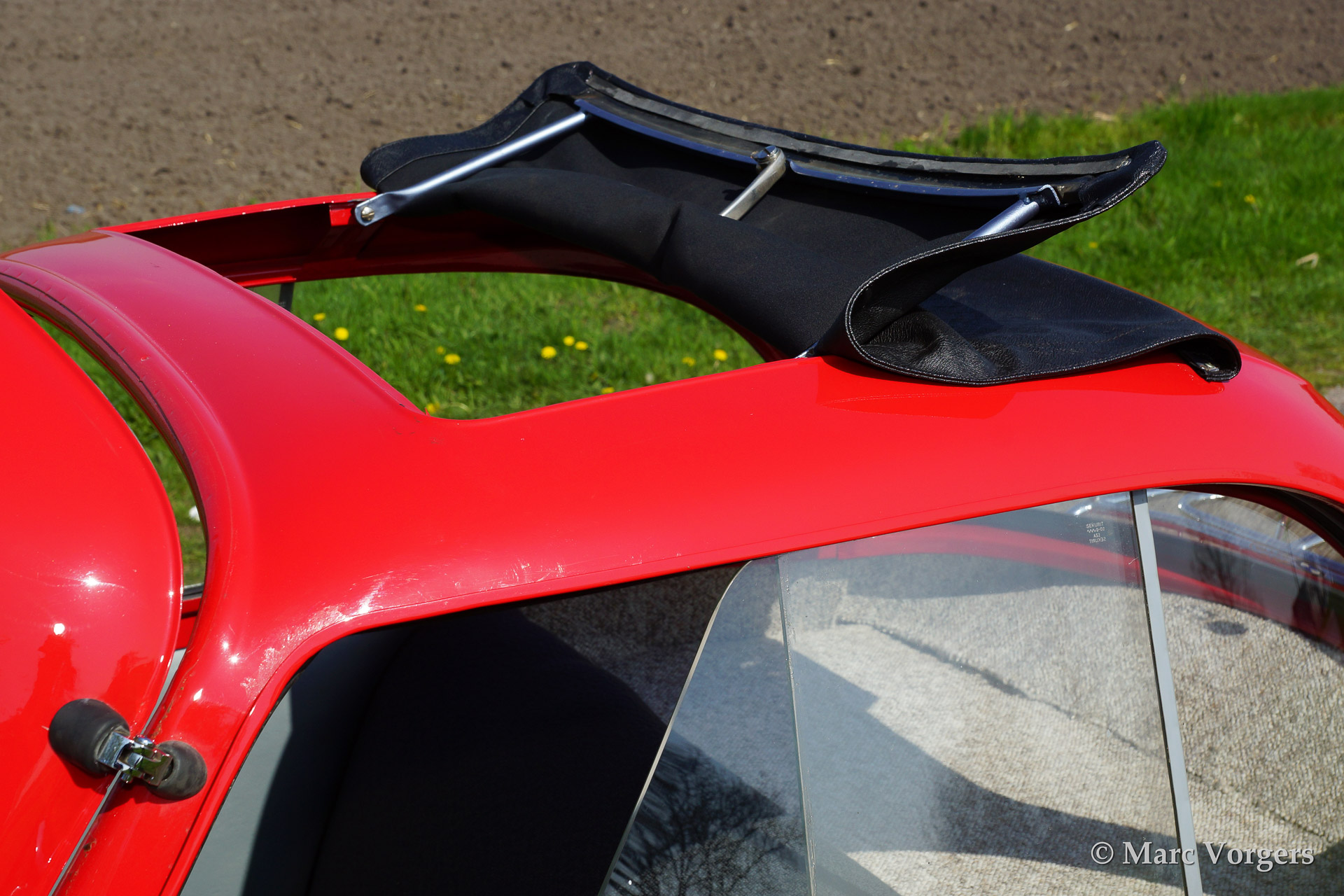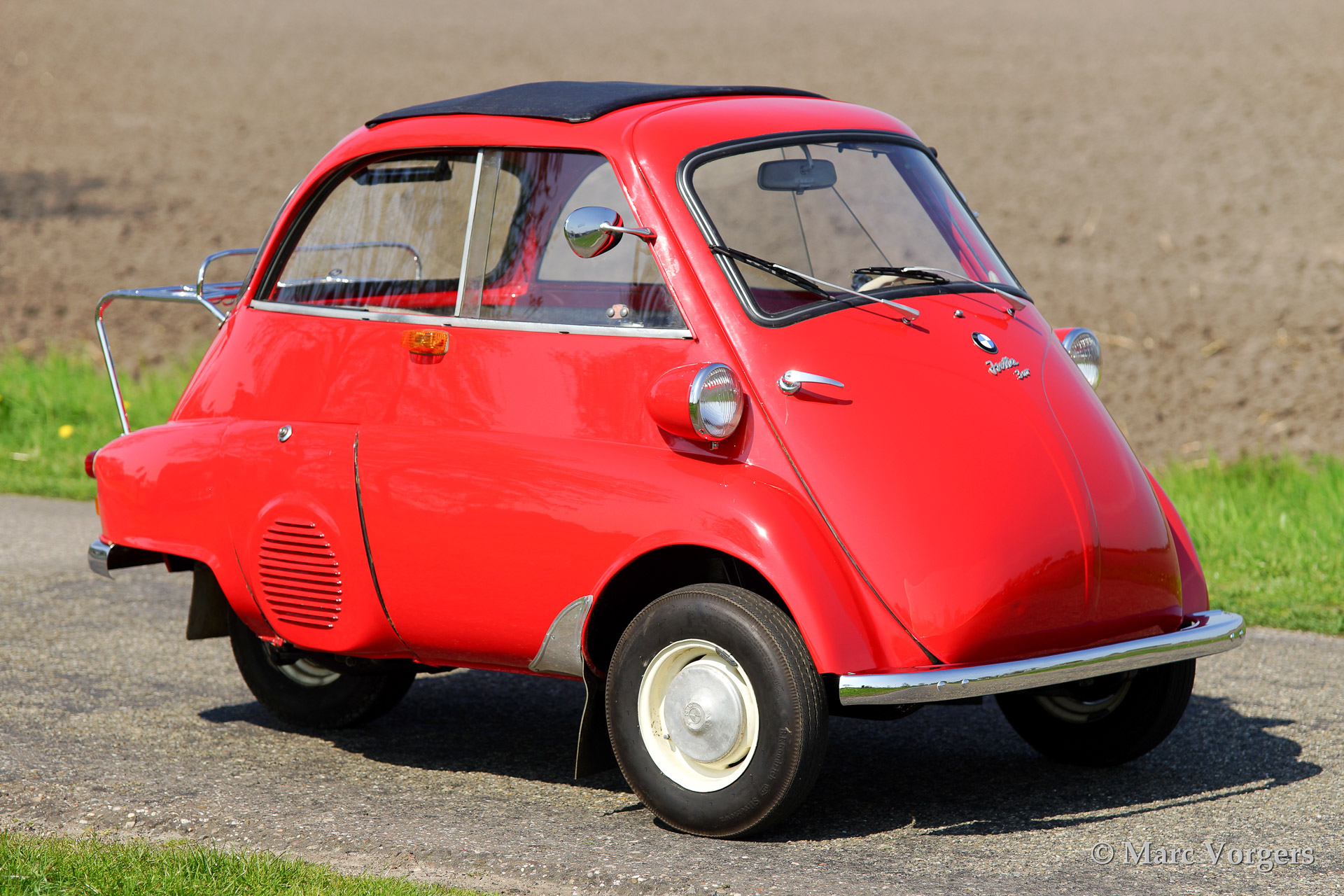 BMW Isetta 300, year 1961. Colour red with a black grey interior. This wonderful little 3-wheeler was restored in Danmark. It is a unique experience to drive or to be driven in this midget cocoon on wheels!