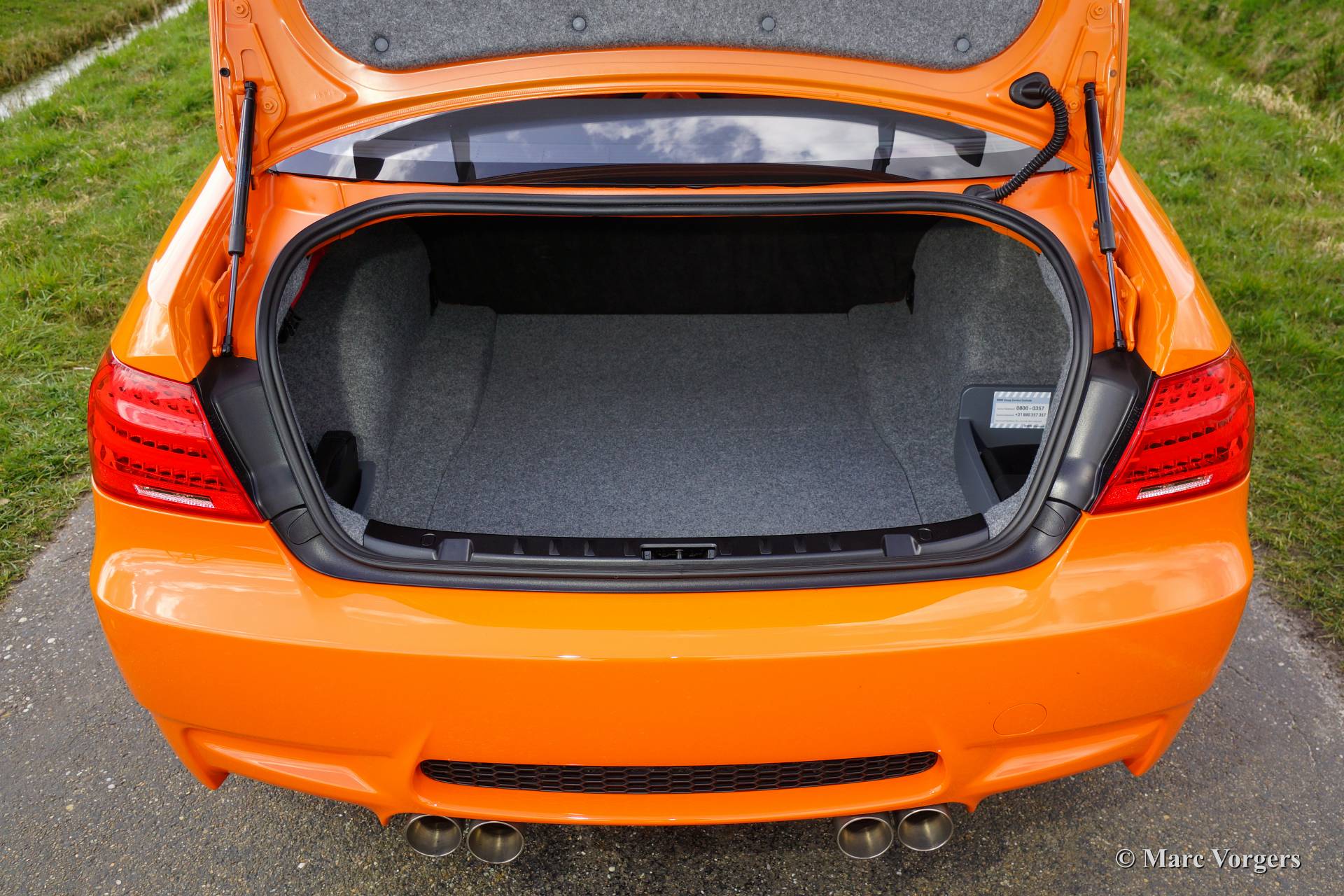 BMW M3 GTS Coupé, année 2010. Couleur 'Feuerorange' (code 494/2) avec un intérieur noir anthracite. Spécification sur mesure via le programme de la BMW "individual". Édition limitée de 150 voitures construites. Cette M3 GTS est un super coupe avec un moteur V8 de 4,4 litres qui délivre une superbe 450 ch à 8300 tours par minute! La voiture accélère de 0 à 100 km / h en seulement 4,4 secondes, puis se arrête à une vitesse de pointe de 305 kilomètres par heure (190 mph)! La BMW M3 GTS est équipé d'un 7-vitesse boîte de vitesses M DCT avec un embrayage double. La M3 GTS a été développé comme une voiture de circuit par BMW. De ce point de vue la M3 a été allégé par 155 kg. par la suppression de la banquette arrière, la climatisation et le système audio. Puis les sièges baquets Recaro ont été équipés de harnais de sécurité 4 points et un arceau solide.
