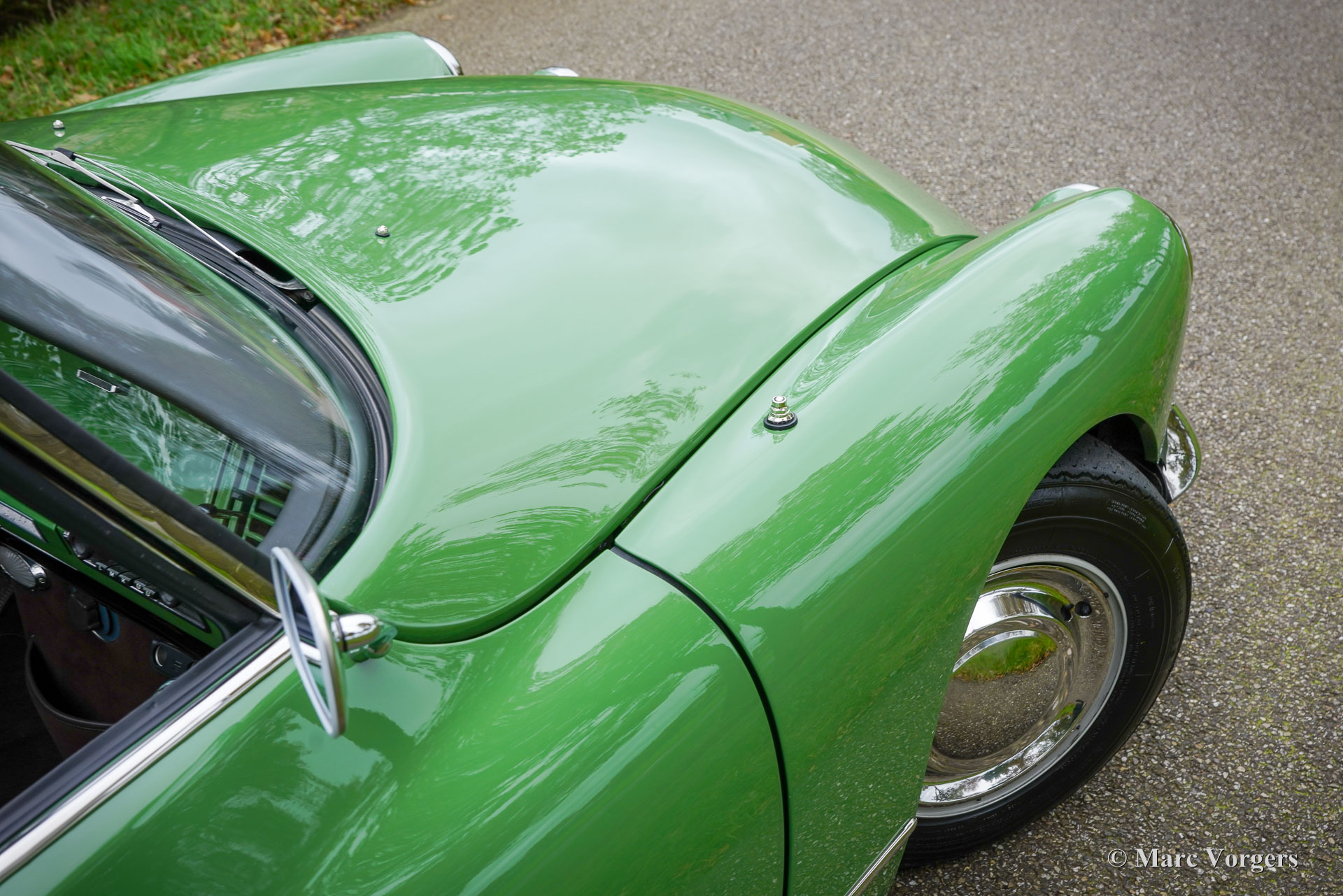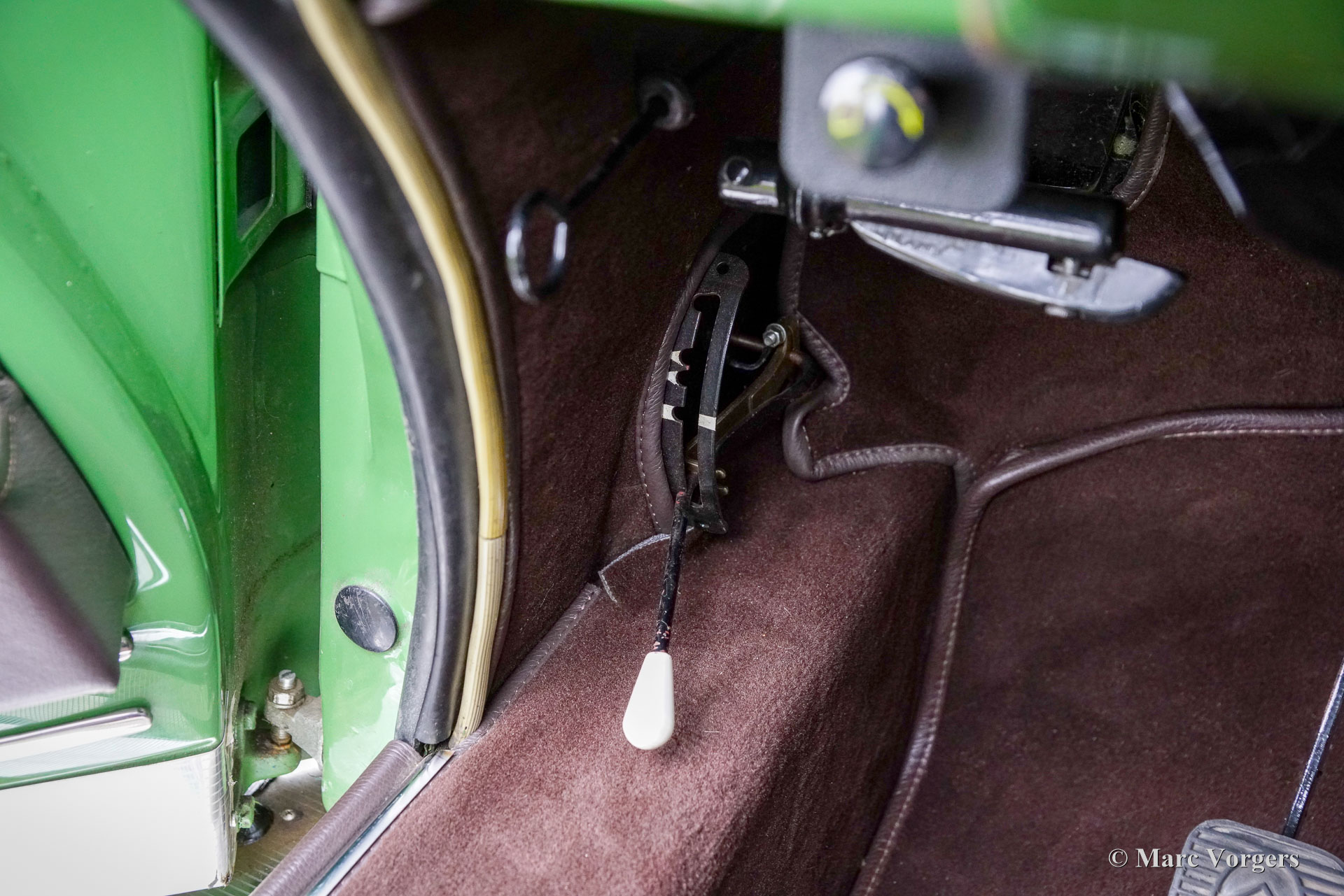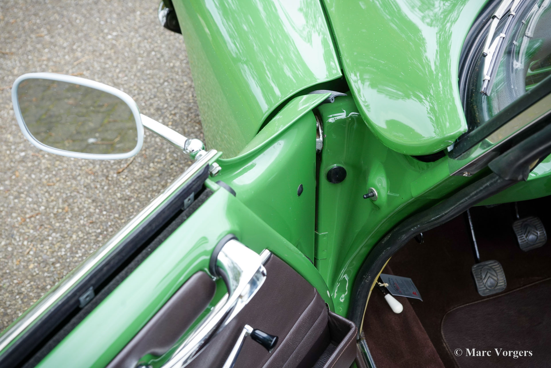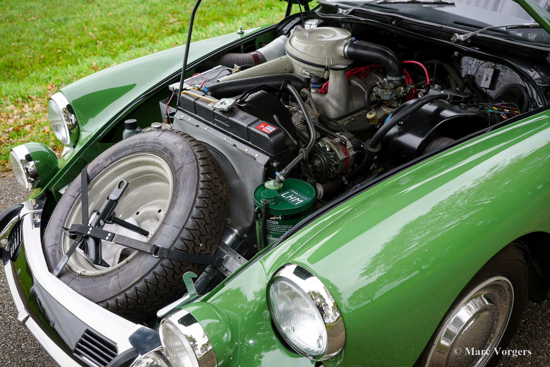 Citroën ID19 B Cabriolet, année 1968. Couleur vert (Vert Olive, code Citroën AC510), associée à un intérieur en cuir marron foncé, une moquette marron foncé et une capote en mohair marron foncé. Un cabriolet d'usine a été proposé par Citroën de l'été 1960 à l'été 1971. Les Décapotable Cabriolet d'Usine furent construits par l'entreprise de carrosserie française (Henri) Chapron, pour le réseau de concessionnaires Citroën. C'était une voiture chère et seulement 1 365 exemplaires furent produits. Les voitures décapotables ID/DS d'origine sont très rares, c'est pourquoi de nombreuses Berlines sont converties en cabriolets pour répondre à l'énorme demande du marché. Ce magnifique cabriolet ID19B est une telle conversion créée par la société néerlandaise Citro Classique. La berline ID19B d'origine fut vendue neuve en France, et l'automobile fut transformée et restaurée dans les années 2015-2018. La carrosserie ID19 fut convertie et renforcée selon les spécifications Chapron d'origine, et tout a été restauré, révisé et renouvelé pour atteindre la perfection. Cette magnifique automobile est dans un superbe état ! La carrosserie présente un ajustement parfait des panneaux, une peinture fantastique et tous les détails du cabriolet d'usine. Tout est flambant neuf ; ni les coûts ni les efforts n’ont été épargnés. La voiture est équipée de pneus Michelin d'origine, des projecteurs Marchal supplémentaires, d'un accoudoir central, de magnifique appuie-tête et d'une radio Becker Europa. Ce très bel exemplaire reprend toutes les caractéristiques attractives de Citroën ID/DS comme la superbe tenue de route, la qualité de confort et de conduite incomparable, le superbe système de freinage qui maintient la voiture à l'horizontale au freinage… Tout cela grâce au magnifique système hydraulique Citroën. Système de suspension hydropneumatique introduit sur les voitures Citroën ID/DS. Cet exemple comprend une boîte de vitesses manuelle à 4 rapports avec levier de vitesses sur la colonne de direction. Le moteur quatre cylindres de 2 100 cm3 est une unité puissante qui fonctionne à merveille et entraîne les roues avant. Ce cabriolet Citroën ID19B merveilleusement restauré est fini dans une palette de couleurs Citroën originale des années 1960 qui ajoute à l'expérience de conduite classique globale. Le coffre est suffisamment grand pour contenir les bagages de voyage de quatre personnes si vous rêvez de vous lancer dans un voyage hôtelier transeuropéen… Ce cabriolet ID19B fait vraiment tourner les têtes et constitue une fantastique voiture classique à apprécier avec votre conjoint et/ou entre amis !