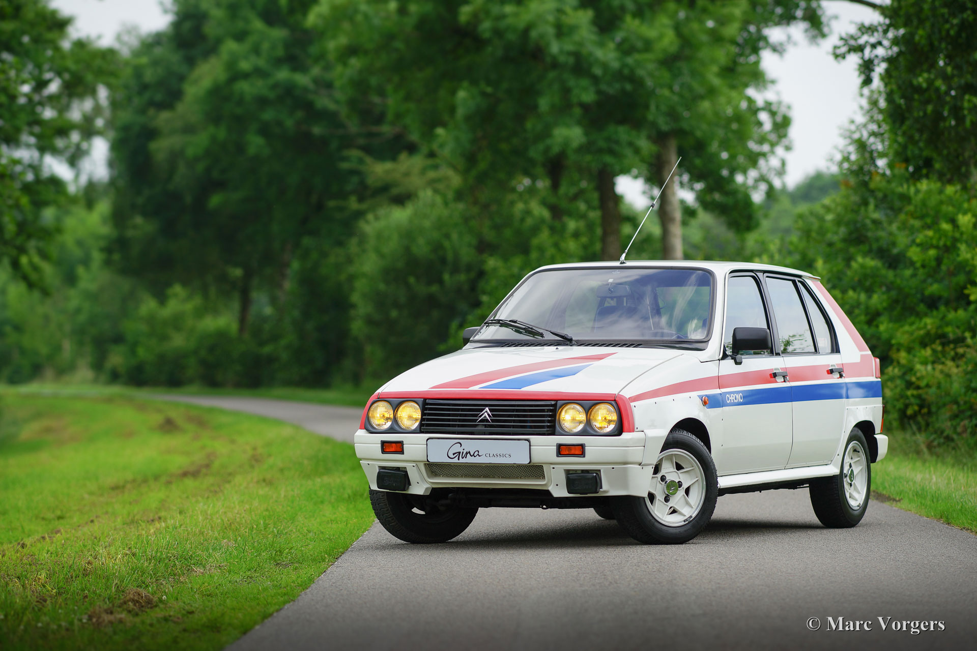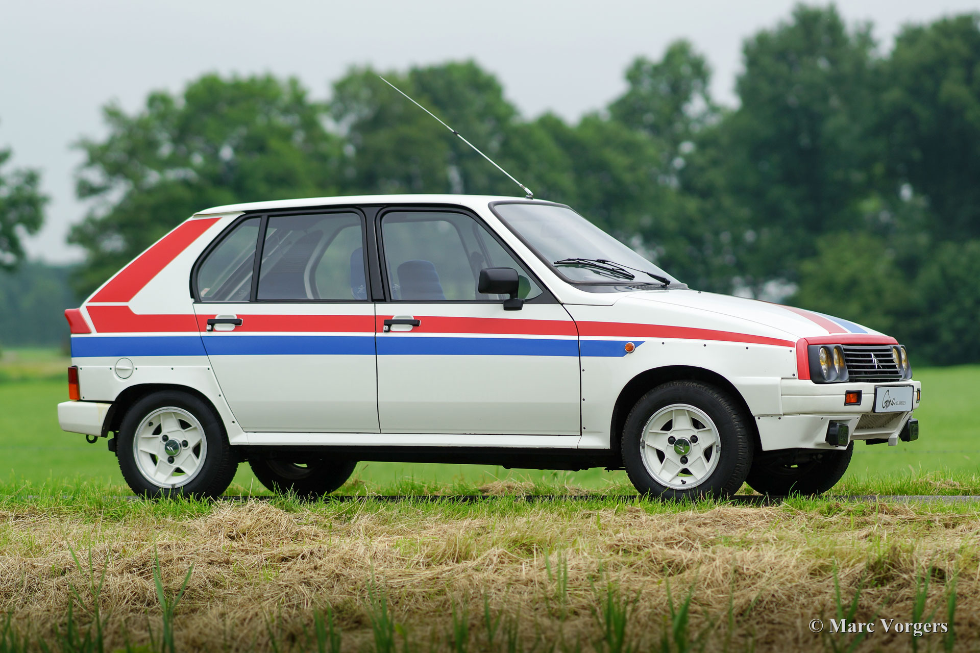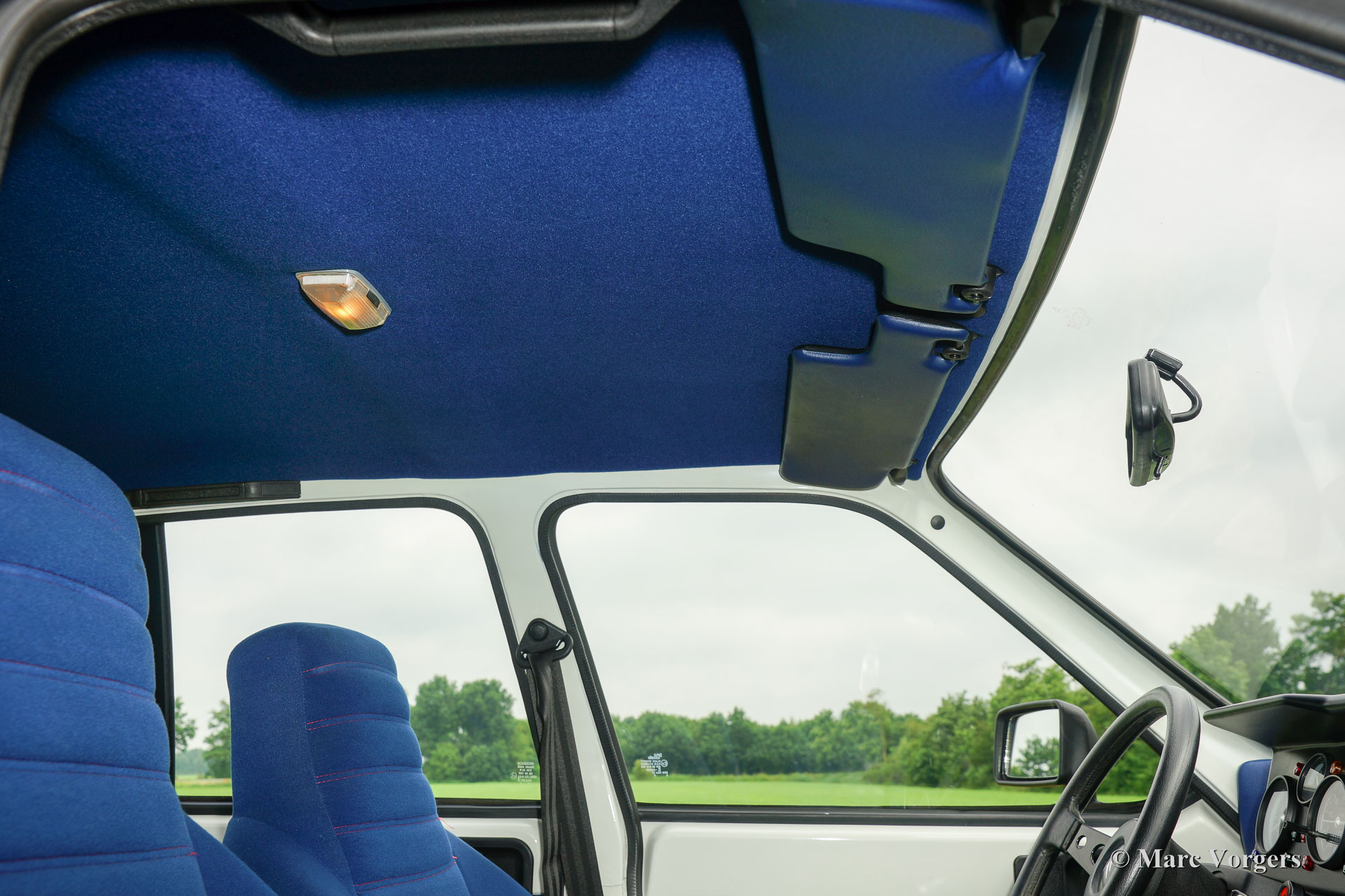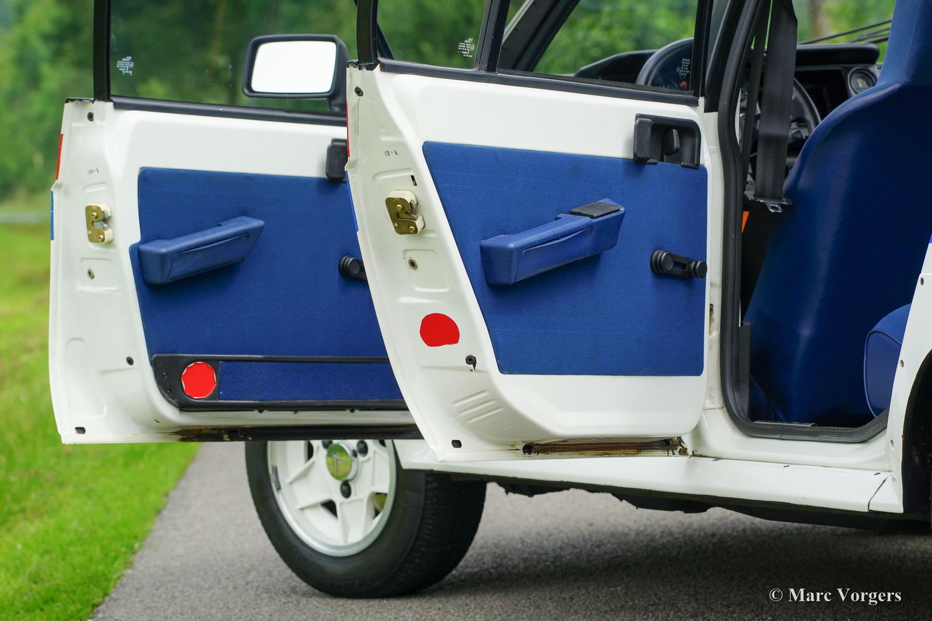 Citroën Visa Chrono, année 1983. Couleur blanc (Blanc Meije) avec un intérieur en tissu noir / bleu. Le Chrono a été vendu en couleurs françaises / néerlandais / allemand. Rouge, blanc et bleu pour les voitures néerlandaises et françaises. Le Chrono dispose d'un ‘Chrono seulement’ tableau de bord unique avec de beaux calibres Jaeger. Dans les années 1980 la Visa Chrono était un concurrent de la Renault R5 GT et la Peugeot 205 GTI. Avec une capacité de 80 ch. et un poids de seulement 900 kg de la voiture est un véritable ‘hot hatch’.