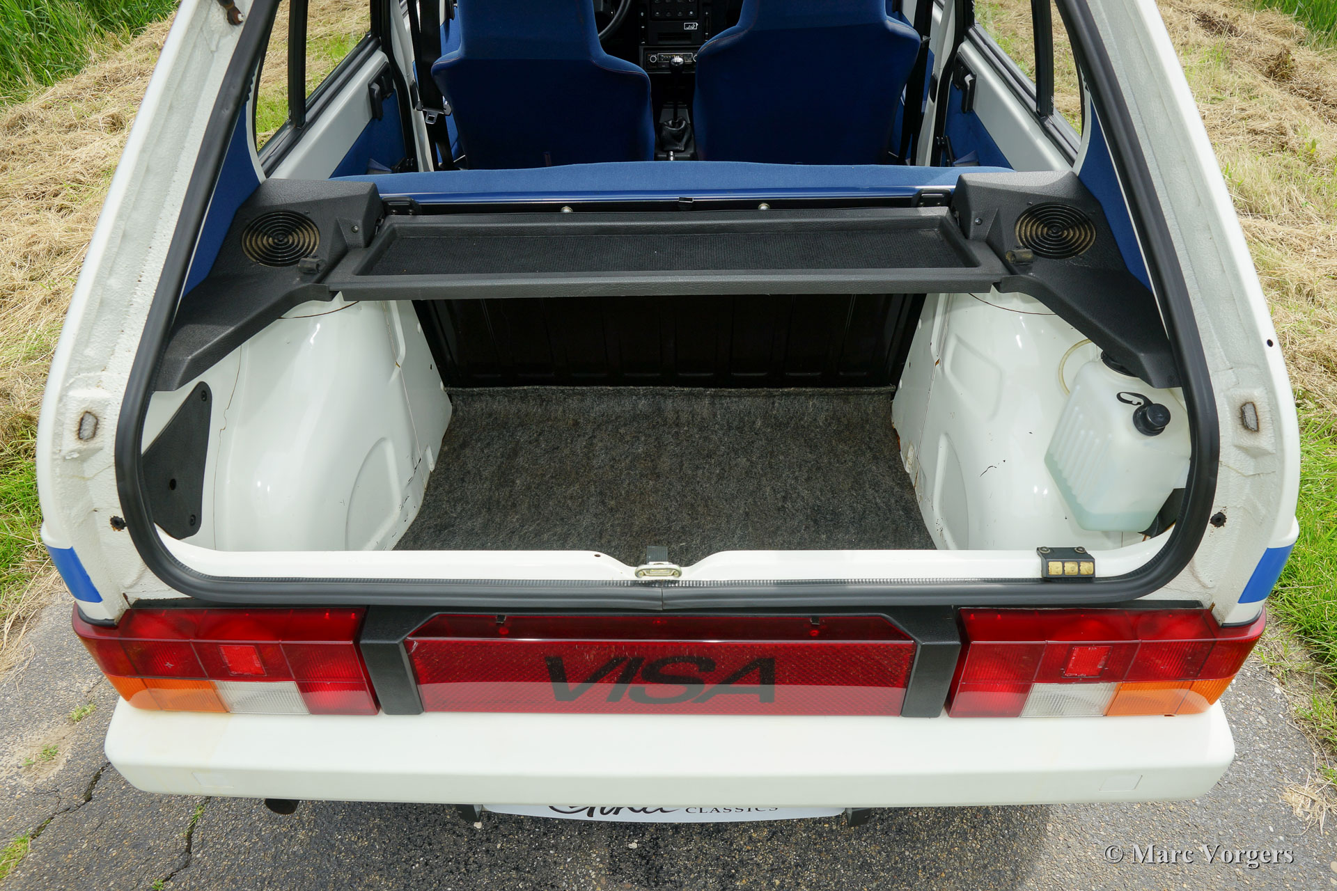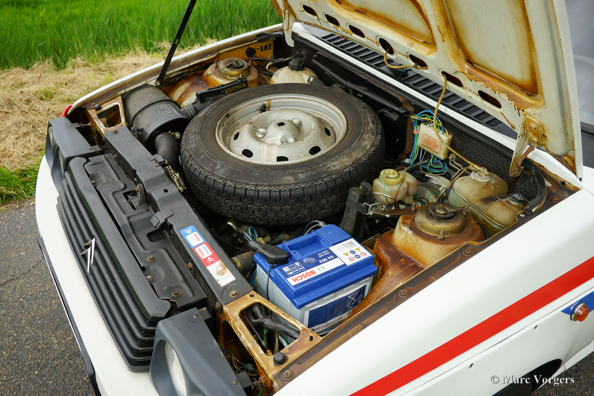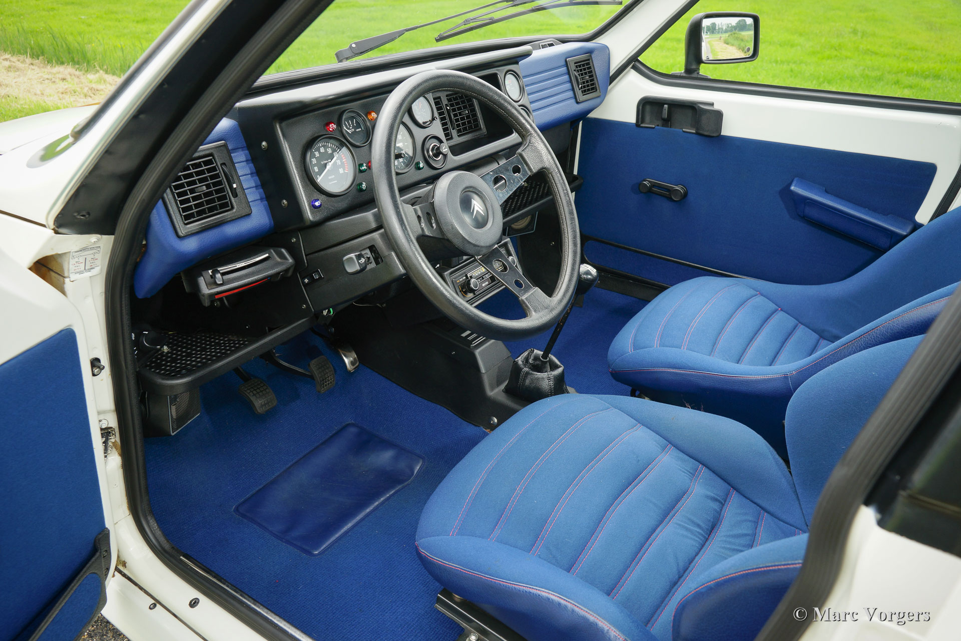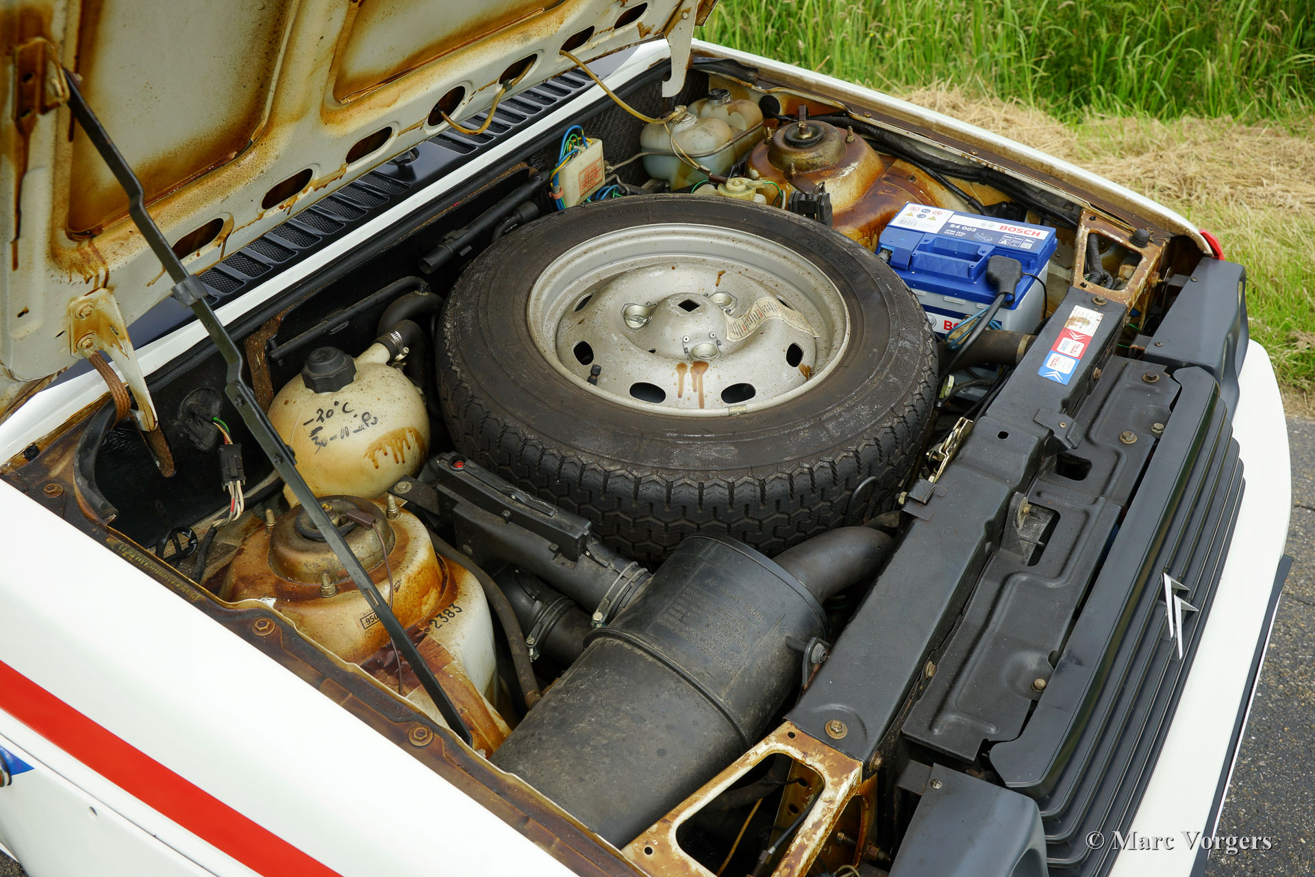Citroën Visa Chrono, année 1983. Couleur blanc (Blanc Meije) avec un intérieur en tissu noir / bleu. Le Chrono a été vendu en couleurs françaises / néerlandais / allemand. Rouge, blanc et bleu pour les voitures néerlandaises et françaises. Le Chrono dispose d'un ‘Chrono seulement’ tableau de bord unique avec de beaux calibres Jaeger. Dans les années 1980 la Visa Chrono était un concurrent de la Renault R5 GT et la Peugeot 205 GTI. Avec une capacité de 80 ch. et un poids de seulement 900 kg de la voiture est un véritable ‘hot hatch’.