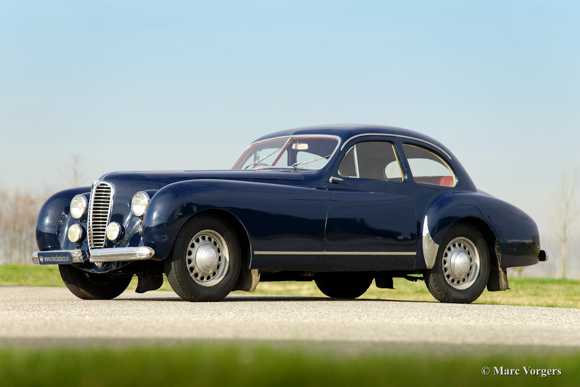Delahaye 135M Gascogne, body by Dubos, year 1950. Chassis number 8013XX, engine number 8780XX. Colour dark blue with a red leather interior. This Delahaye 135M Gascogne is a fantastic and very rare 'grand routier', only 10 have been built. Not only the rarity is striking, also the originality! In the ancient past the body has been repainted and by now it shows age and traces beyond patina. The chassis, interior and mechanics are in very good original condition and the automobile drives absolutely fantastic. The Cotal pre-selector gearbox is a delight to operate and the sound of the six cylinder engine is almost magical. All original details are present, including the original radio! A next owner may never fully restore this time capsule, may be new high quality paintwork and nothing else please... This grand automobile is a fabulous driver and a high potential car for concours d'elegances. 'As is' in a 'survivors' class and partly restored with interior retained original in any suitable class. A sound investment with high potential for the discerning collector.