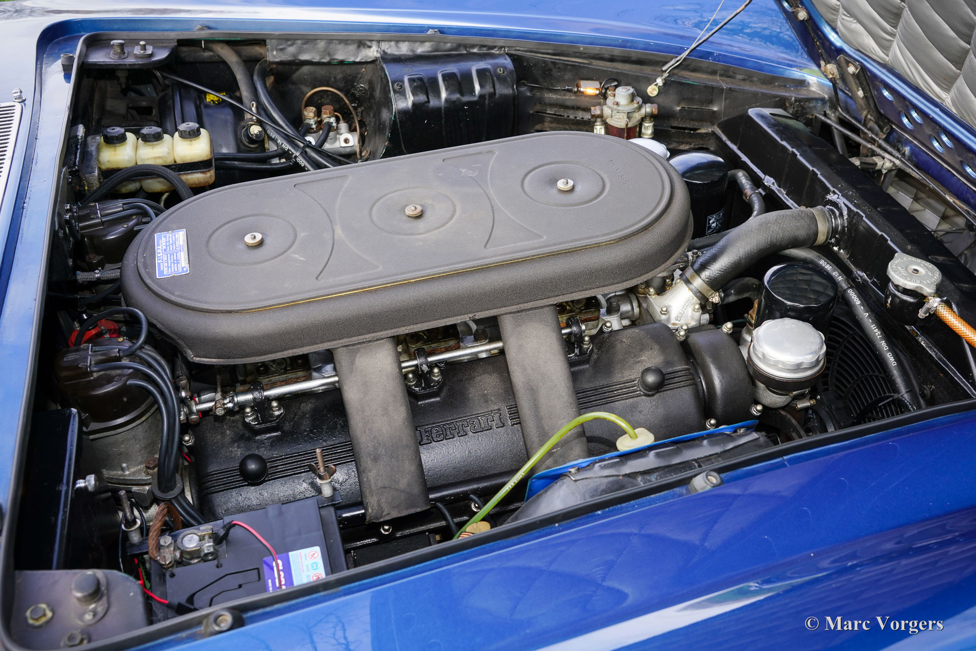 The most important news in the year 1965 was the introduction of the new 4390 cc. V12 engine which was derived from the Ferrari 365 P racingcar. This engine is used in the Ferrari 365 model family. The engine is fitted with two or four overhead camshafts and dry sump lubrication. The cars with four overhead camshafts can be identified by the /4 addition to the model number.