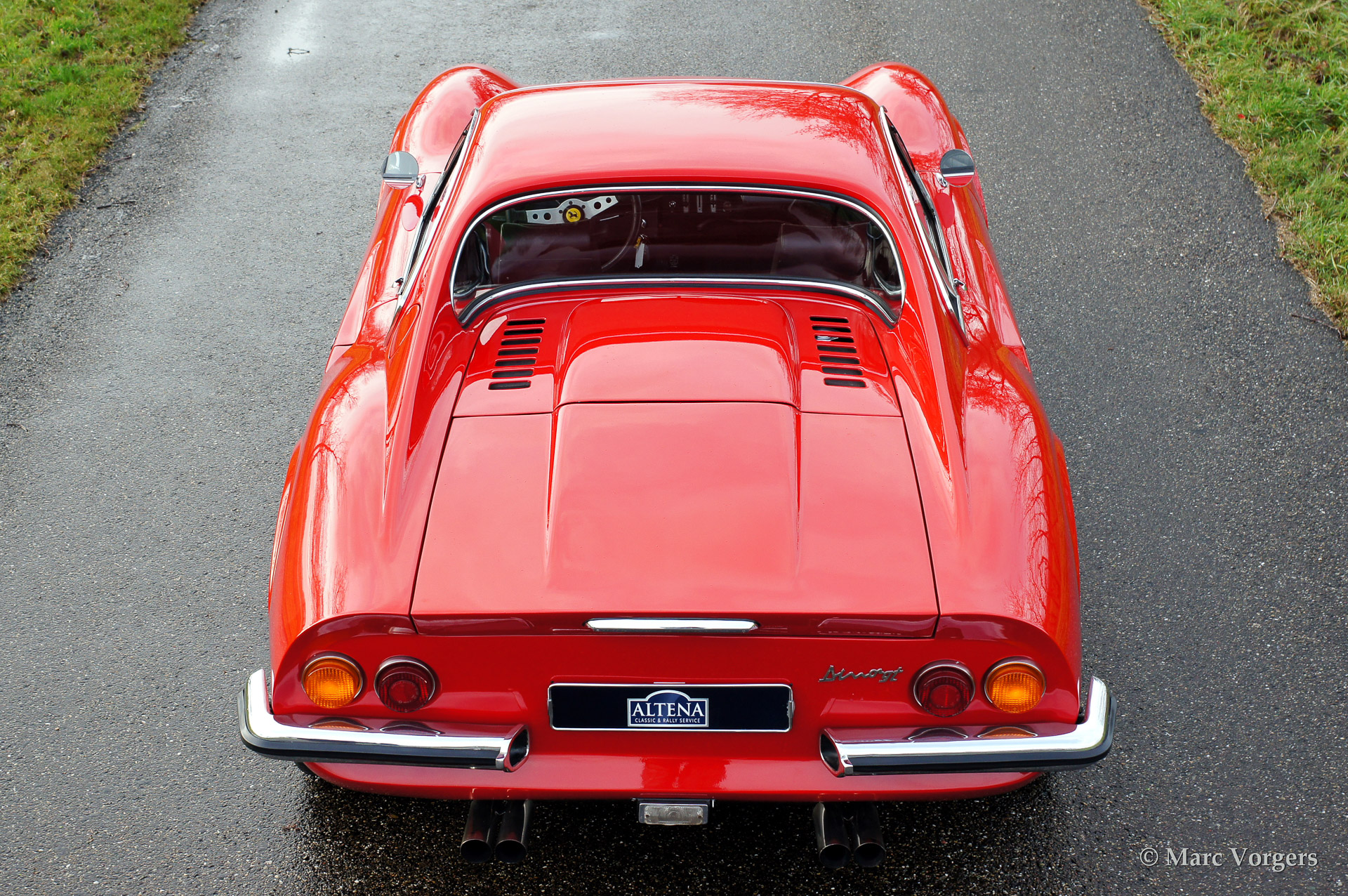 Ferrari Dino 246 GT, year 1972. Colour red with a black leather interior. This fantastic Ferrari Dino comes from a Dutch classic car collection. Only 2.732 Ferrari Dino's have been built.