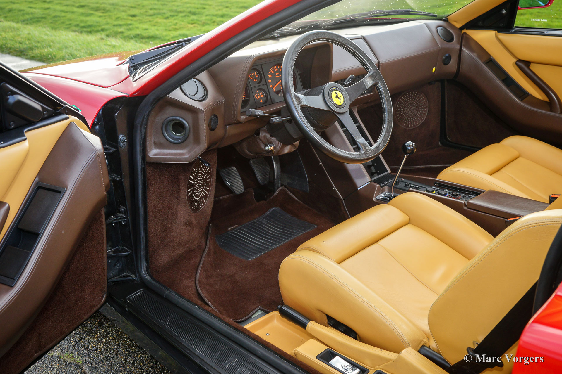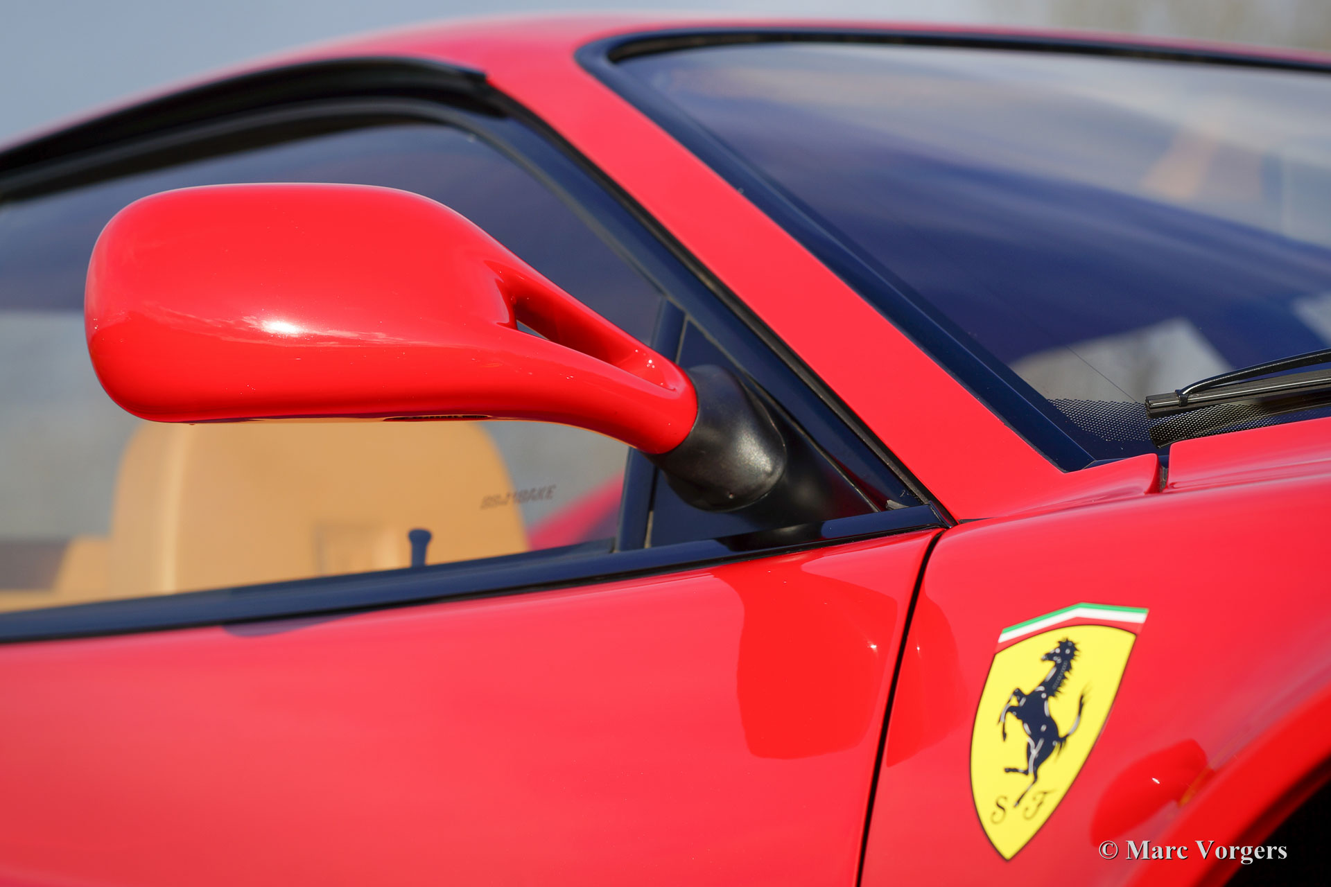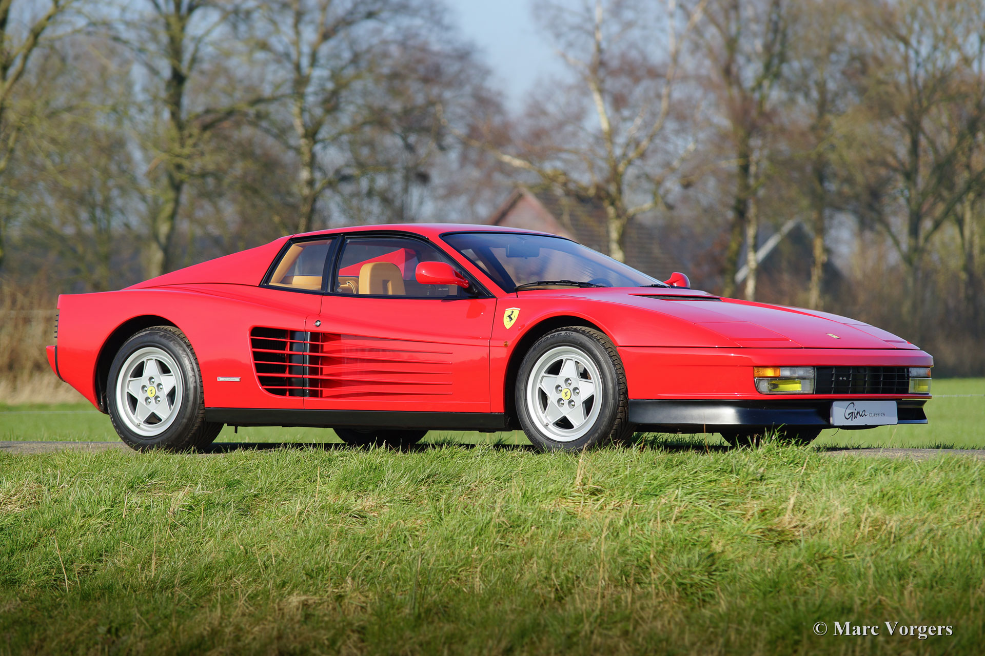 Ferrari Testarossa, année 1991. Couleur 'Rosso Corsa' (code couleur FER 300) avec un intérieur en cuir beige, avec de la moquette brune et tableau de bord brun.