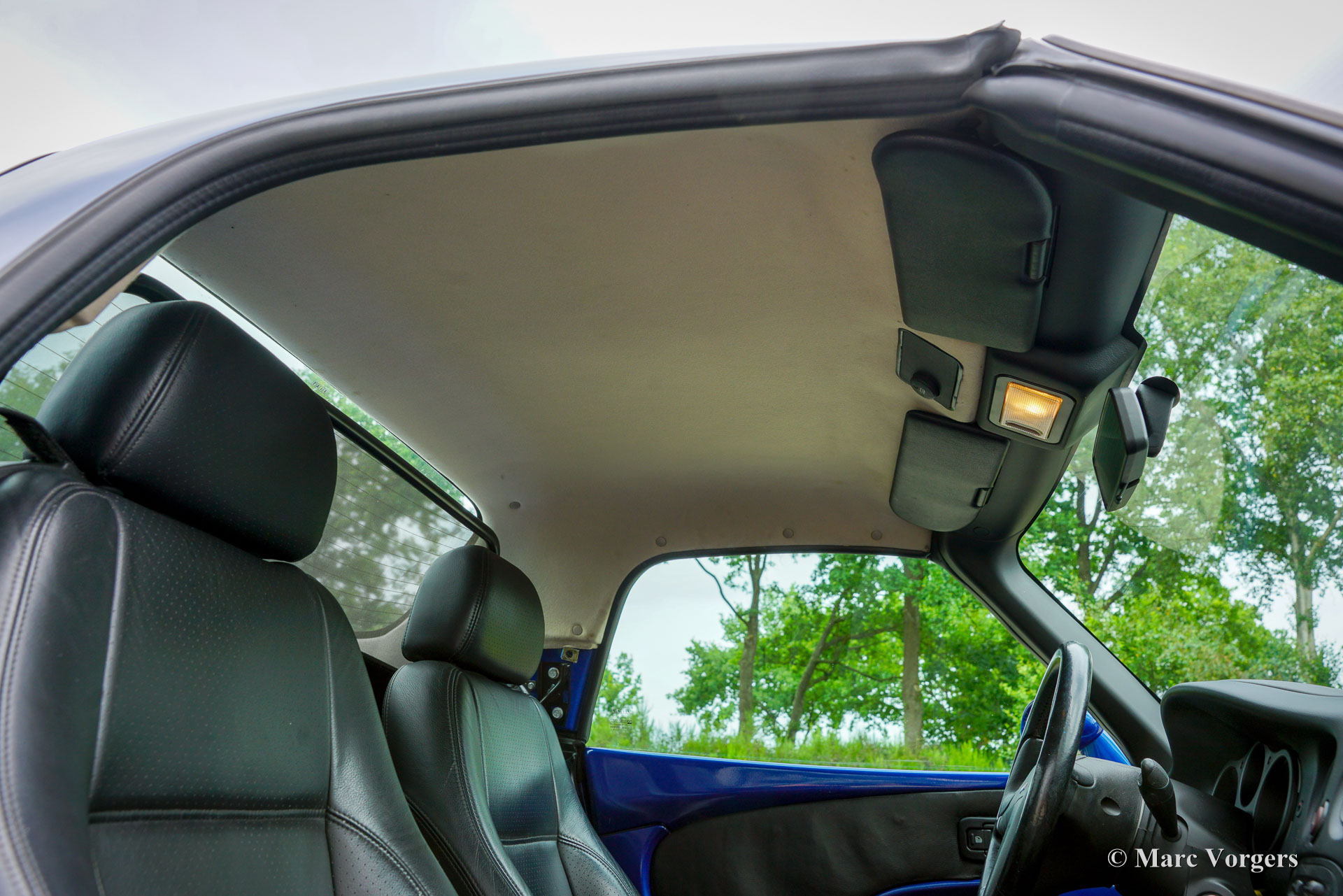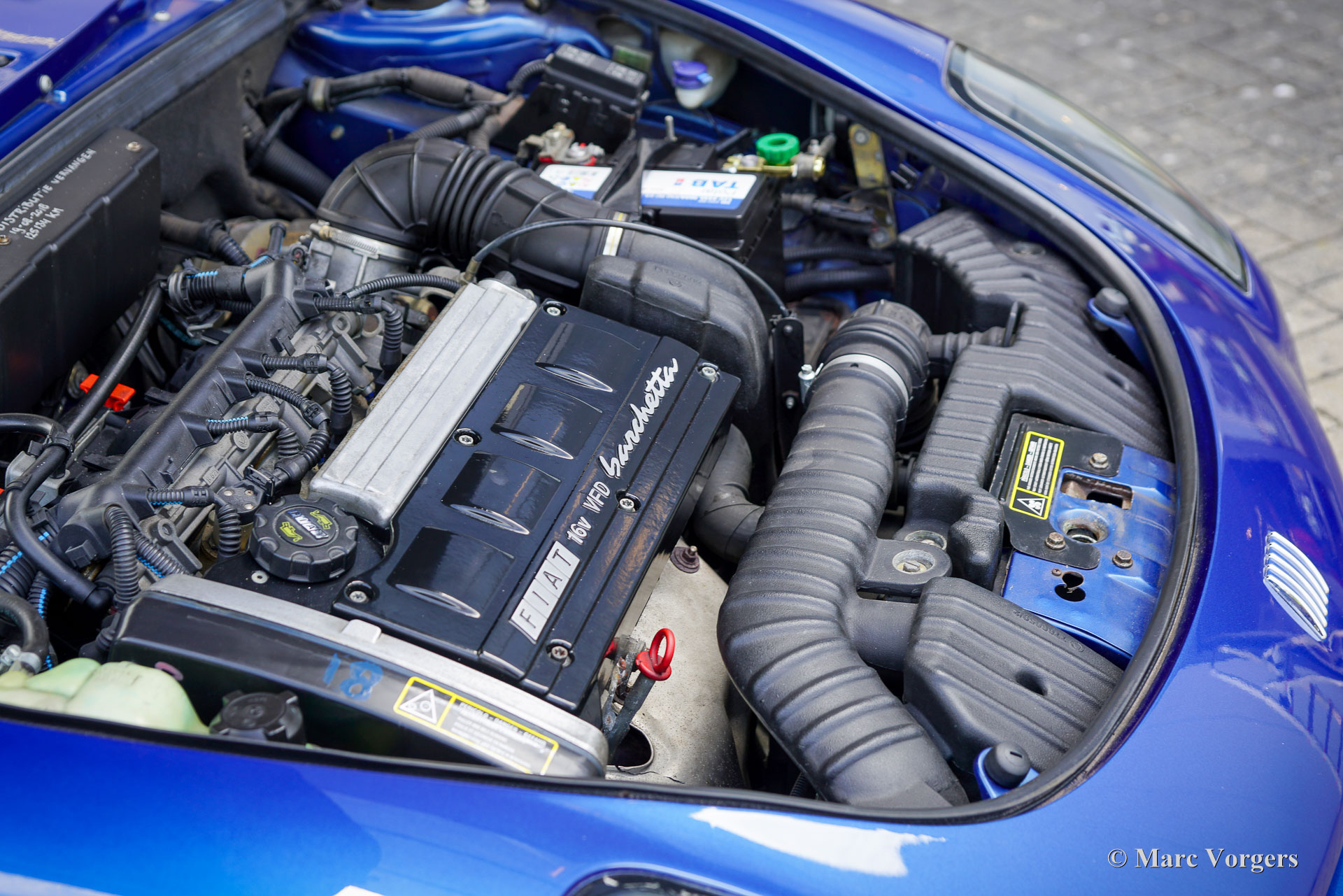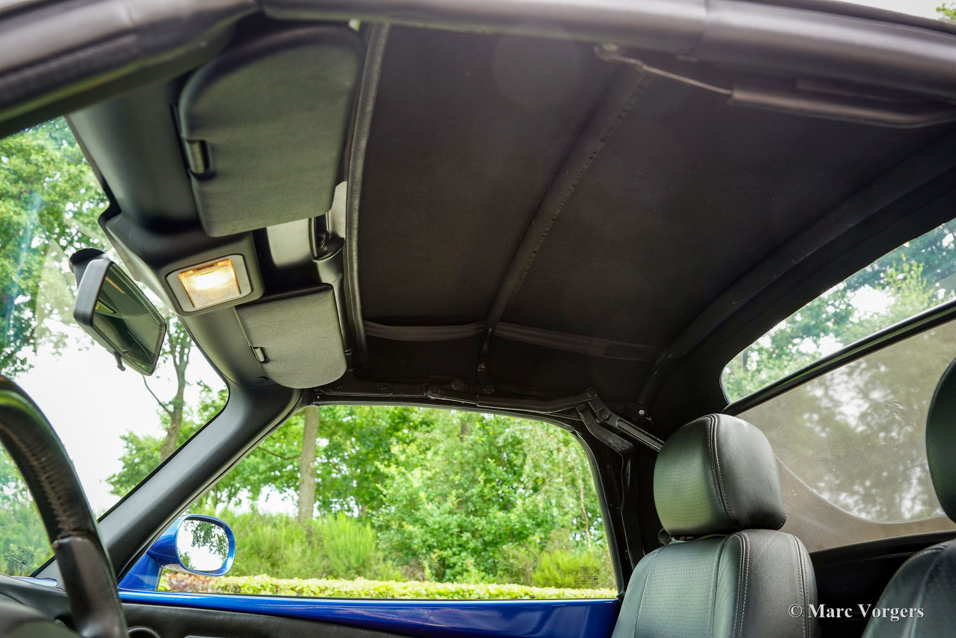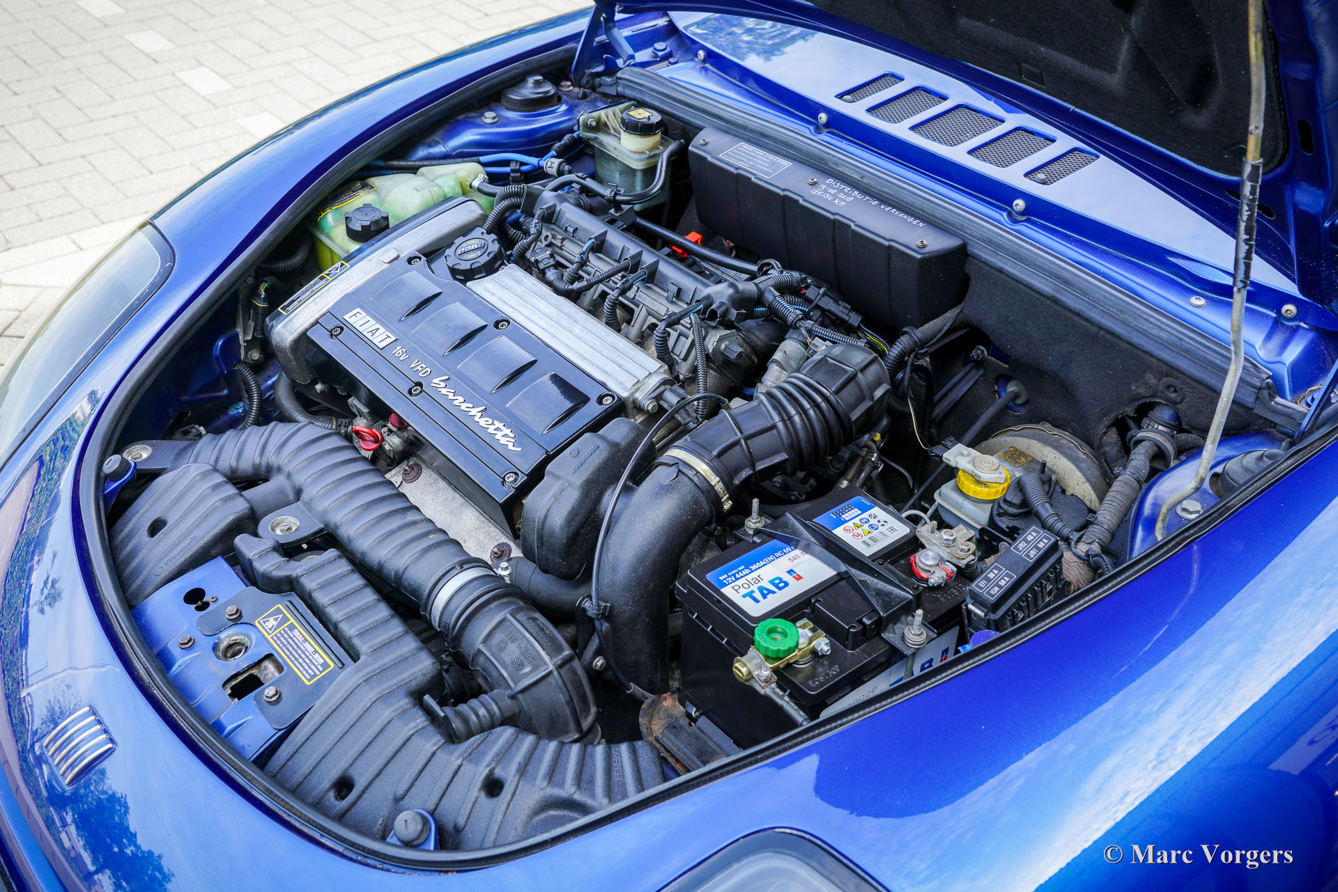 Fiat Barchetta, année 1999. Voiture de premier propriétaire, bleu foncé métallisé (Fiat Midnight blue 426) avec intérieur noir et sièges et volant en cuir noir. Cette magnifique Fiat Barchetta a parcouru 128,542 kilomètres entre les mains d'un propriétaire attentionné. Elle est entièrement documentée. Le dossier historique comprend la facture de vente originale émise par le représentant Fiat R. Rhee à Heemstede, aux Pays-Bas (aujourd'hui Mobility Group Haaker). La voiture fut vendue avec un « pack limité », comprenant notamment une sellerie cuir et un toit rigide couleur carrosserie, au prix de 65 038 florins néerlandais ! C'était plus que la Fiat la plus chère (la Fiat Coupé 20v Turbo), qui coûtait alors environ 51 000 florins néerlandais avec toutes les options possibles ! Cette superbe Fiat Barchetta est en très bon état, voire excellent, et roule parfaitement. Il y a environ deux ans, elle a bénéficié d'une peinture impeccable (reportage photo avec 40 photos), et la courroie de distribution a été remplacée il y a 2 000 kilomètres. L'intérieur noir présente de légères traces d'usure et la console centrale est en parfait état (pas de traces de frottement !). L'extérieur est impeccable : sous le capot et dans le coffre, tout est propre et net. Cette Barchetta est équipée d'une sellerie cuir, d'un volant et d'un levier de vitesses cuir, de vitres et de rétroviseurs électriques, de phares antibrouillards intégrés à l'avant et à l'arrière, d'un système audio Fiat, d'un pare-vent et de jantes alliage Fiat d'origine. Cette Fiat Barchetta, au style élégant et intemporel, est un fantastique décapotable à savourer pleinement !