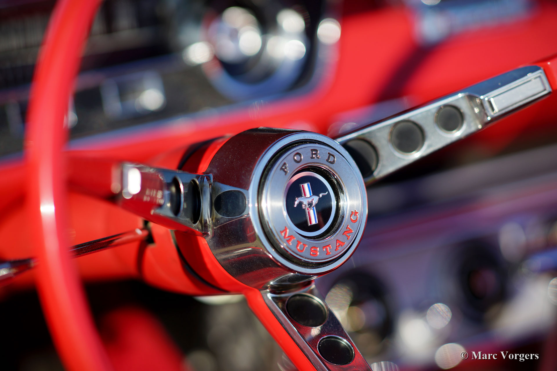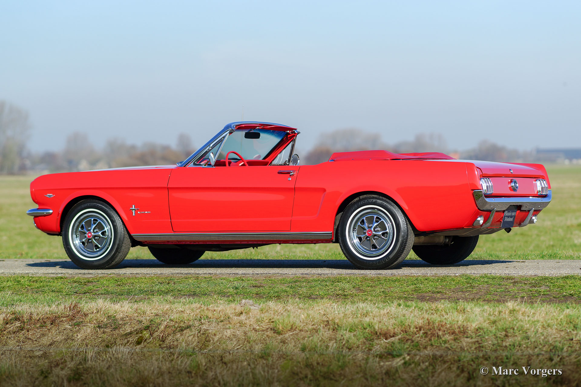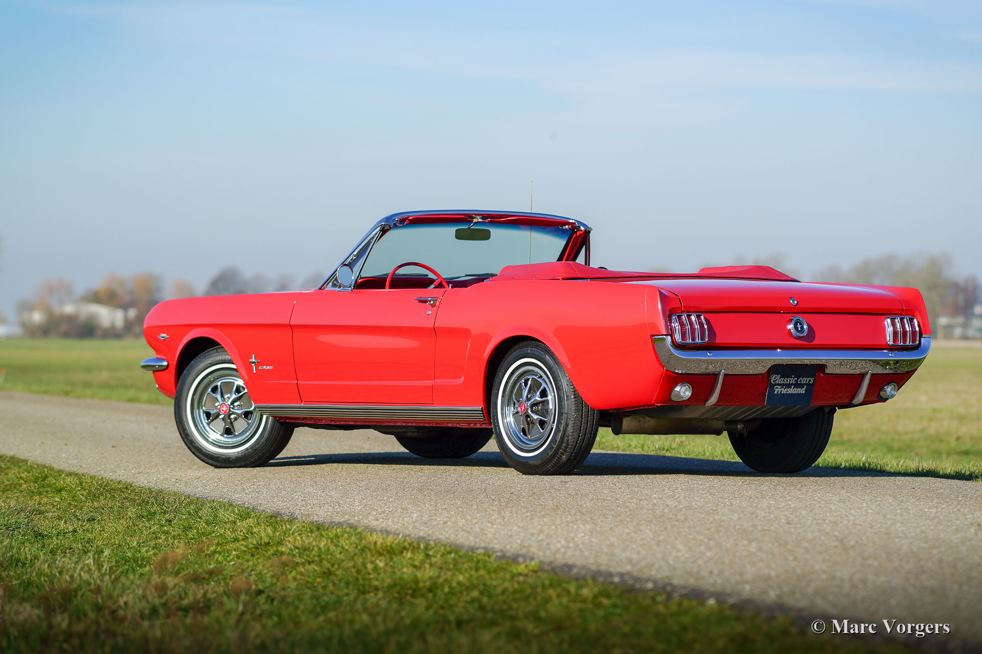 Ford Mustang 289 convertible, année 1965. Couleur rouge vif avec un intérieur en similicuir rouge et un tapis rouge. Capot noire et un couvercle de la hotte rouge. Cette fantastique Ford Mustang convertible fut restaurée de manière professionnelle et dans un état de superbe qualité de TOP : concours ! Il s’agit d’un modèle recherché du début de 1965 doté du puissant moteur V8 de 289 pouces cubes (4,7 litres) associé à une boîte automatique à 3 vitesses. Cette beauté dispose de la climatisation, d'un capot électrique et d'une boîte de vitesses automatique. Ceci est un exemple de classe TOP !