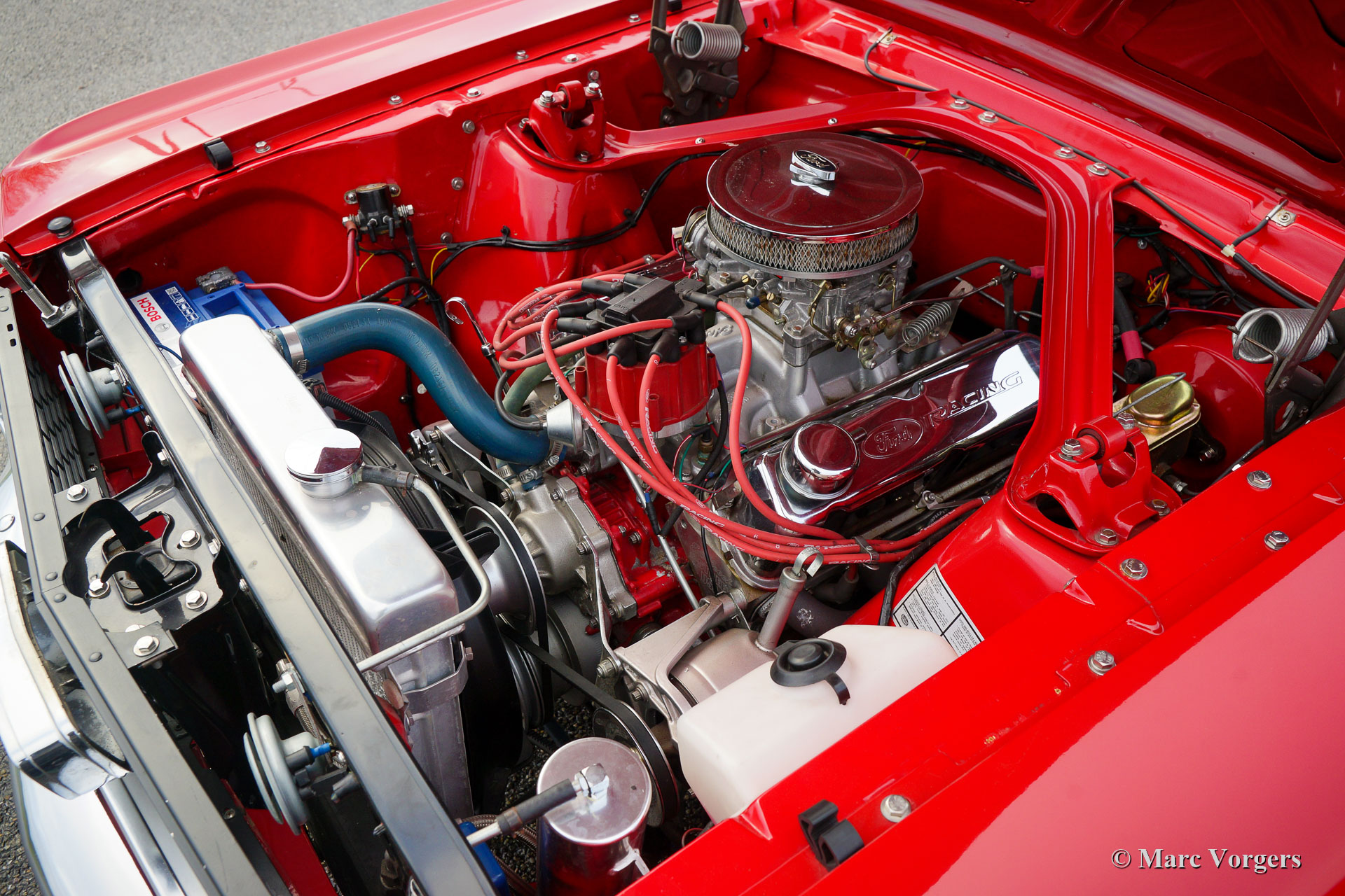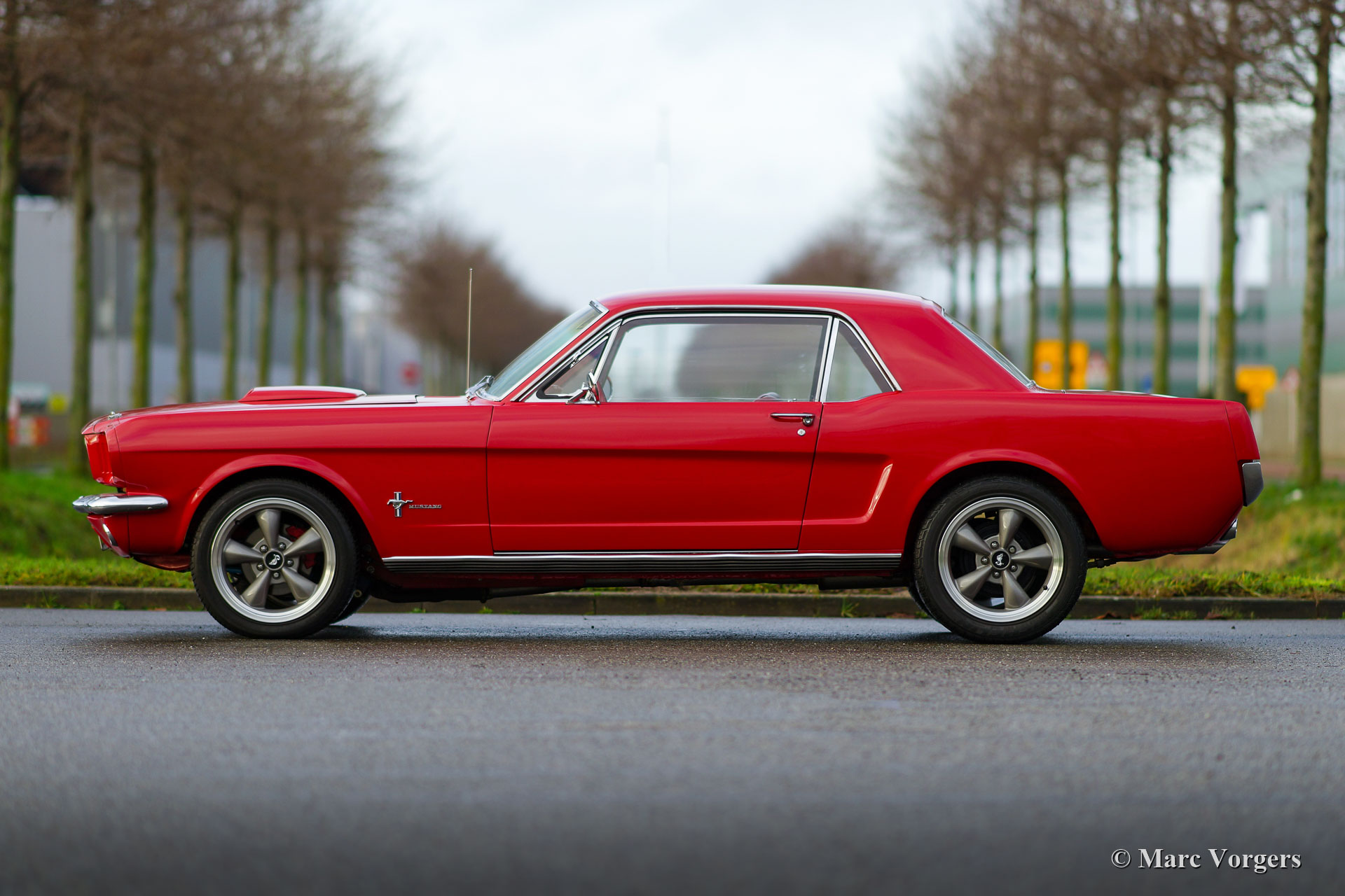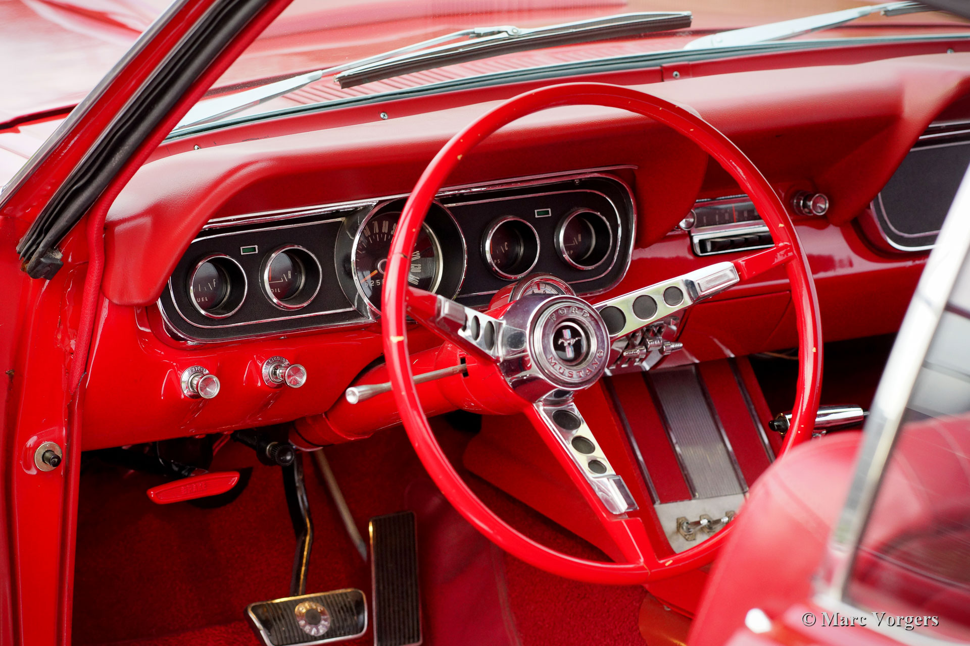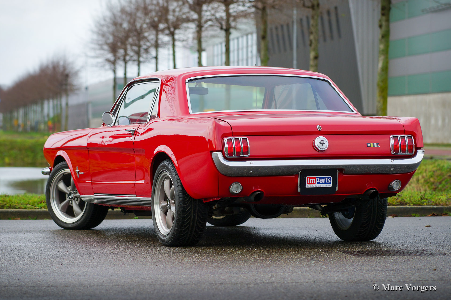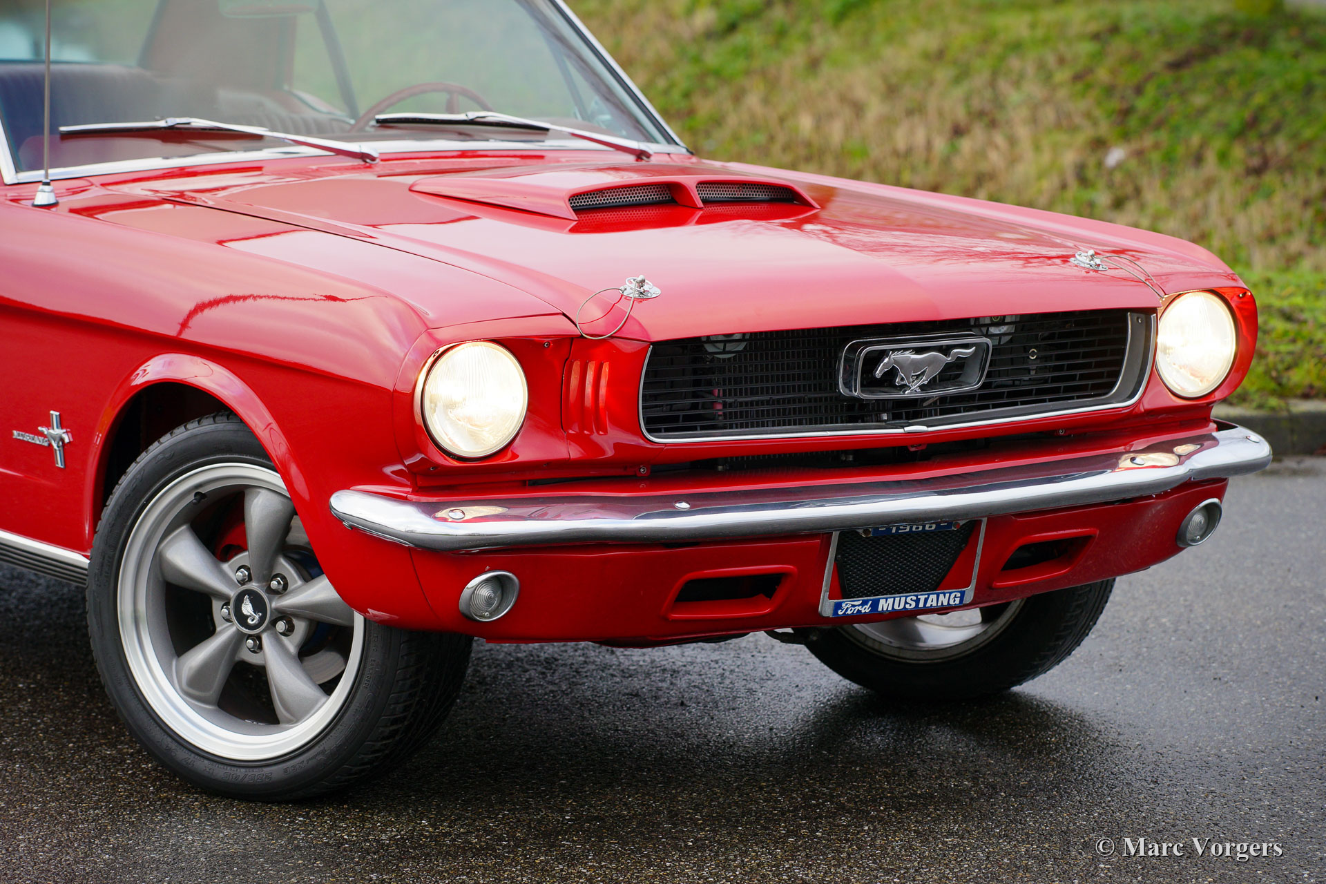 Ford Mustang Coupé, année 1966. Couleur rouge associée à un intérieur «Pony» rouge et un tapis rouge. Cette magnifique Ford Mustang Coupé a été immatriculée aux Pays-Bas en 2012. L'automobile fut restaurée détaillée en 2005, un reportage photo et des factures de restauration sont présents. La voiture est en excellent état et elle présente de merveilleux détails d'origine. L'intérieur est en parfait état, montrant le volant et la radio d'origine. Vous ne trouverez qu'une petite déchirure dans la garniture de toit. La carrosserie en tôle, la peinture et les garnitures chromées sont superbes ! Le moteur est une unité V8 de 5 litres qui a été augmentée avec des culasses et un collecteur d'admission par Edelbrock. Le moteur est très puissant et ça sonne fantastique ! La suspension fut améliorée avec des ressorts et des amortisseurs spéciaux pour une conduite plus ferme. De plus, la voiture est équipée de vitres teintées, d'une boîte de vitesses automatique à 3 vitesses et de superbes jantes en alliage de 17 pouces ! Ceci est un exemple hautement souhaitable en excellent état !