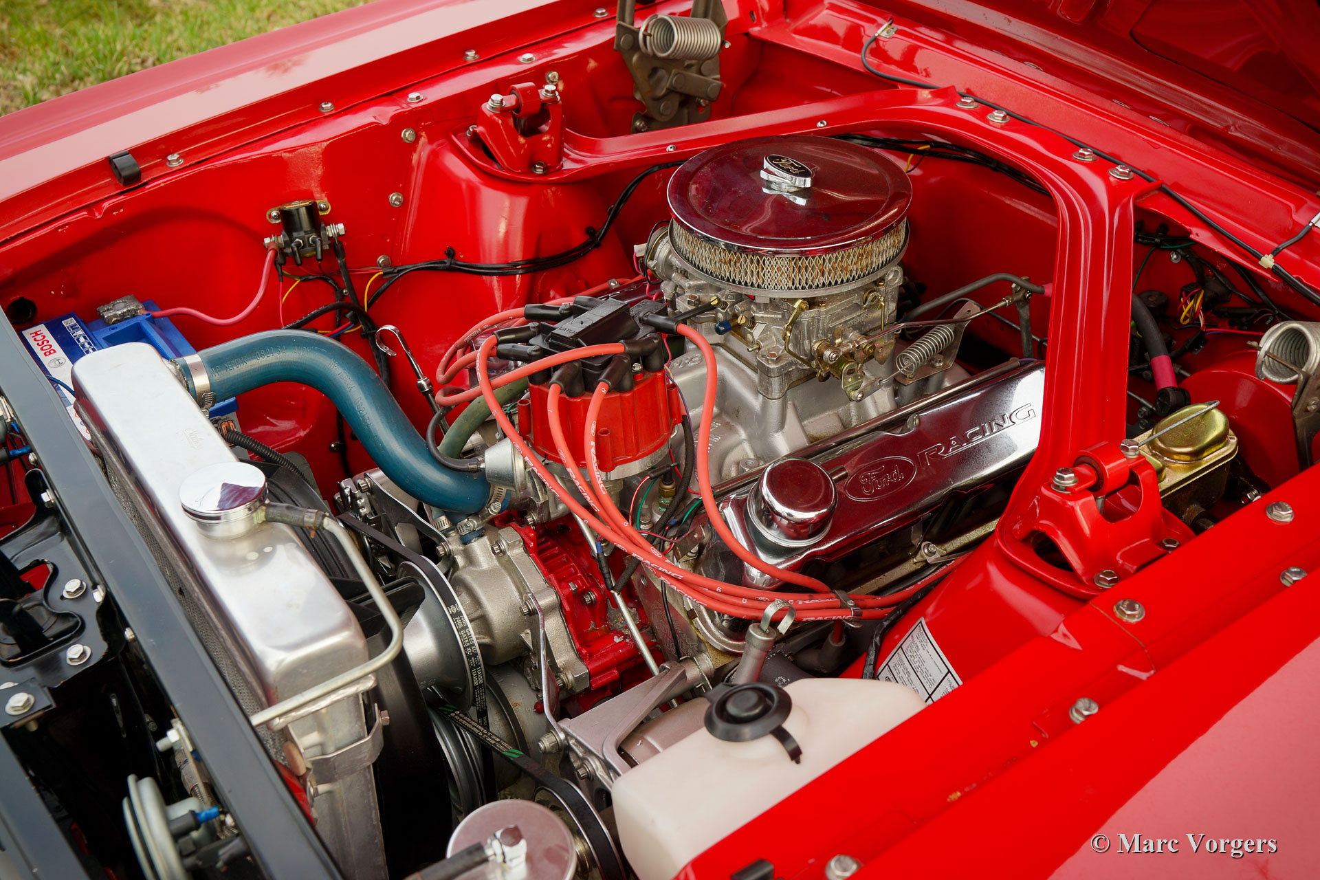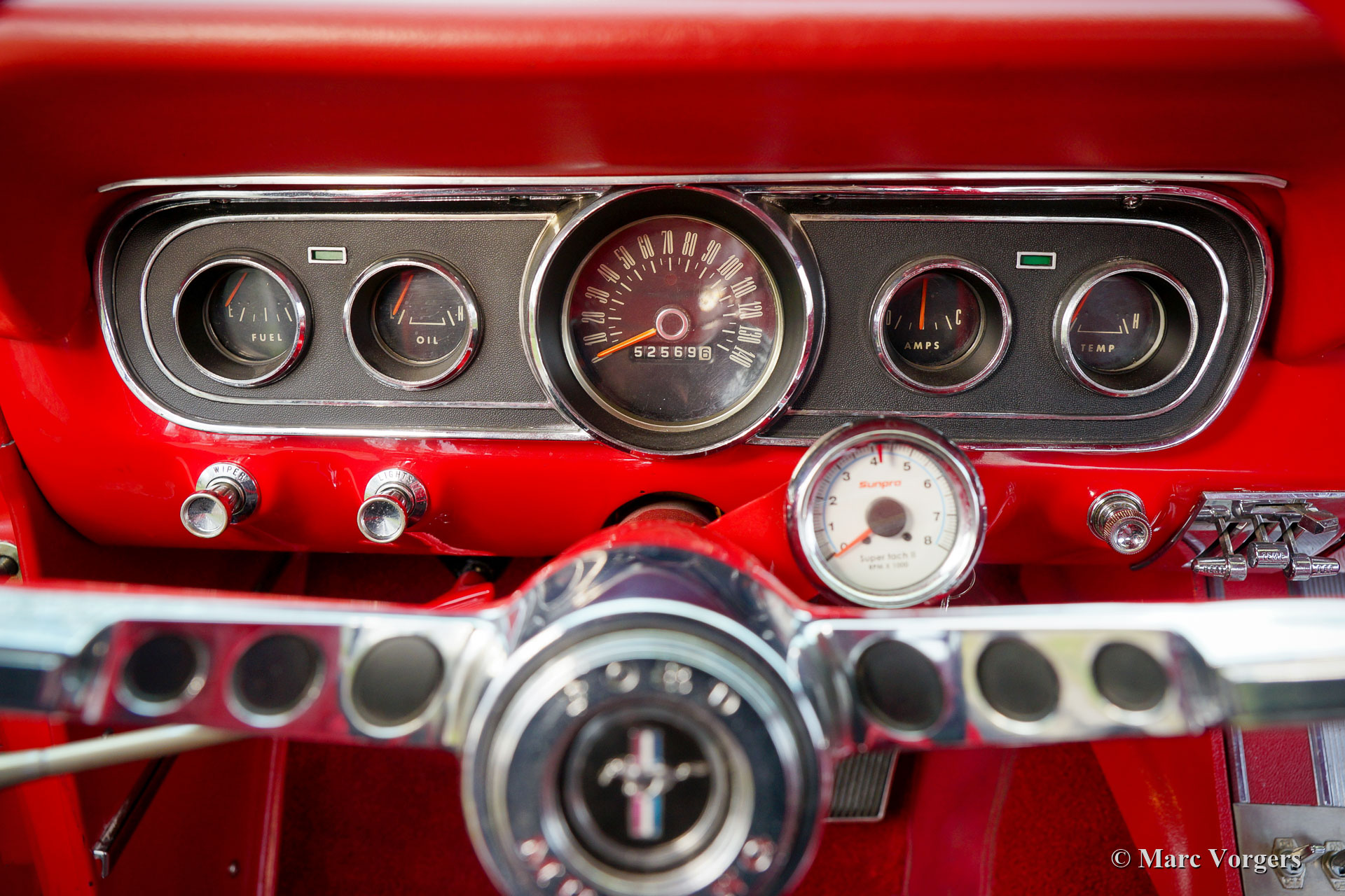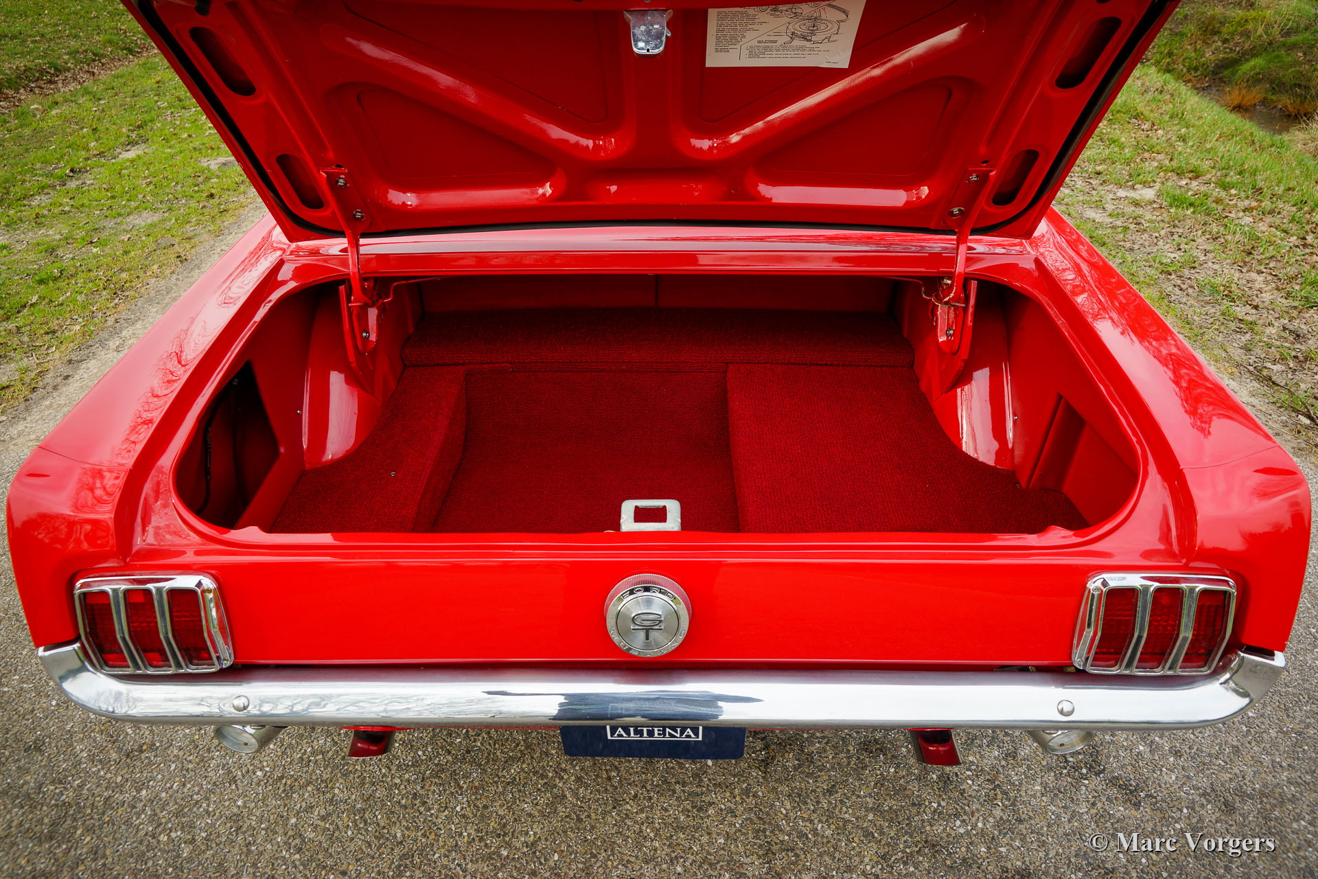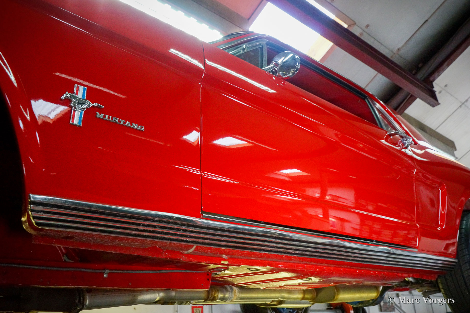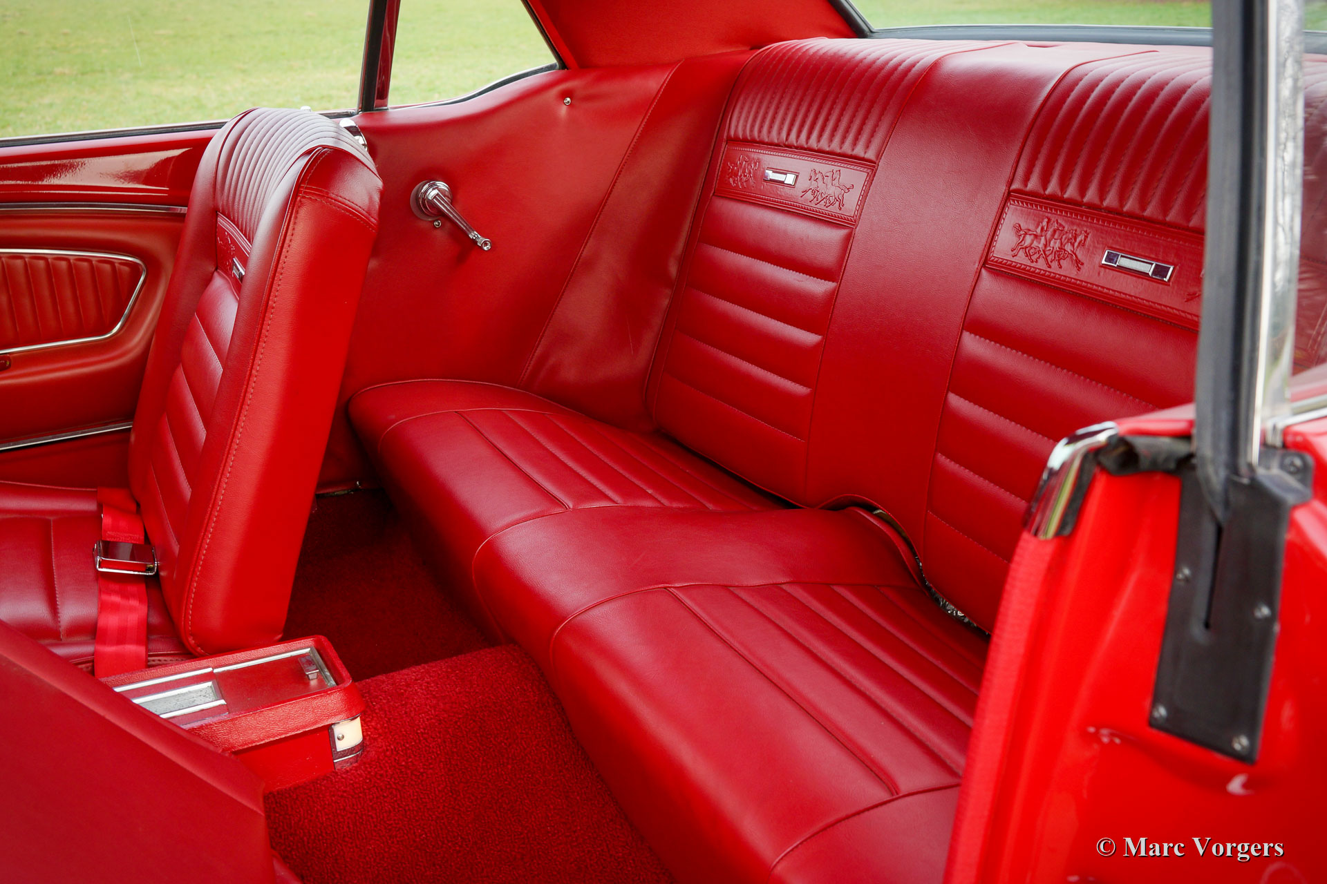Ford Mustang Coupé, année 1966. Couleur rouge associée à un intérieur « Pony » rouge et un tapis rouge. Cette magnifique Ford Mustang a été vendue neuve aux États-Unis où elle fut restaurée détaillée dans les années 2009 à 2011. La carrosserie fut restaurée à partir du métal nu et chaque composant fut restauré, renouvelé et / ou révisé. Le moteur, la boîte de vitesses, l'essieu arrière et la suspension furent entièrement révisés. Un reportage photo et des factures de la restauration sont présents. La voiture fut exportée aux Pays-Bas en 2012. La voiture est dans un état excellent à superbe et elle montre de merveilleux détails d'origine. L'intérieur est en parfait état, montrant le volant et la radio d'origine. Vous ne trouverez qu'une petite déchirure dans la garniture de toit. Le moteur est une unité V8 de 5 litres qui fut augmentée avec des culasses et un collecteur d'admission par Edelbrock. Le moteur est très puissant et ça sonne fantastique ! La suspension fut améliorée avec des ressorts et des amortisseurs spéciaux pour une conduite plus ferme. De plus, la voiture est équipée de vitres teintées, d'une boîte de vitesses automatique à 3 vitesses et de superbes roues d'origine avec des pneus neufs. Beaucoup d'argent a été investi pour obtenir cette Ford Mustang dans cet état merveilleux, un exemple hautement souhaitable prêt à en profiter au maximum !