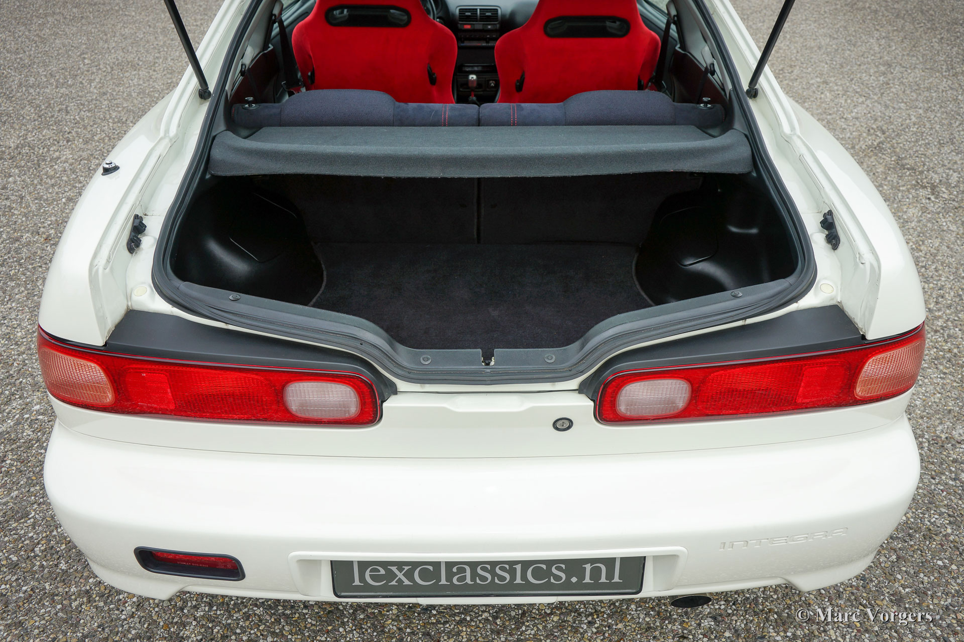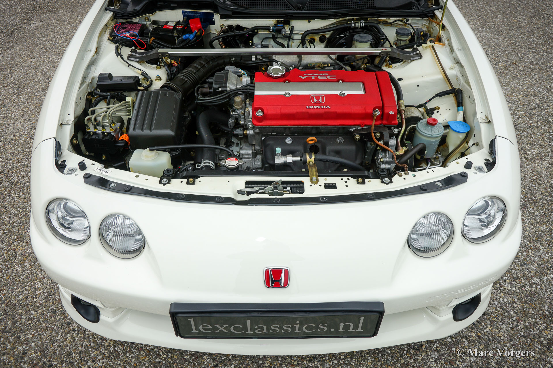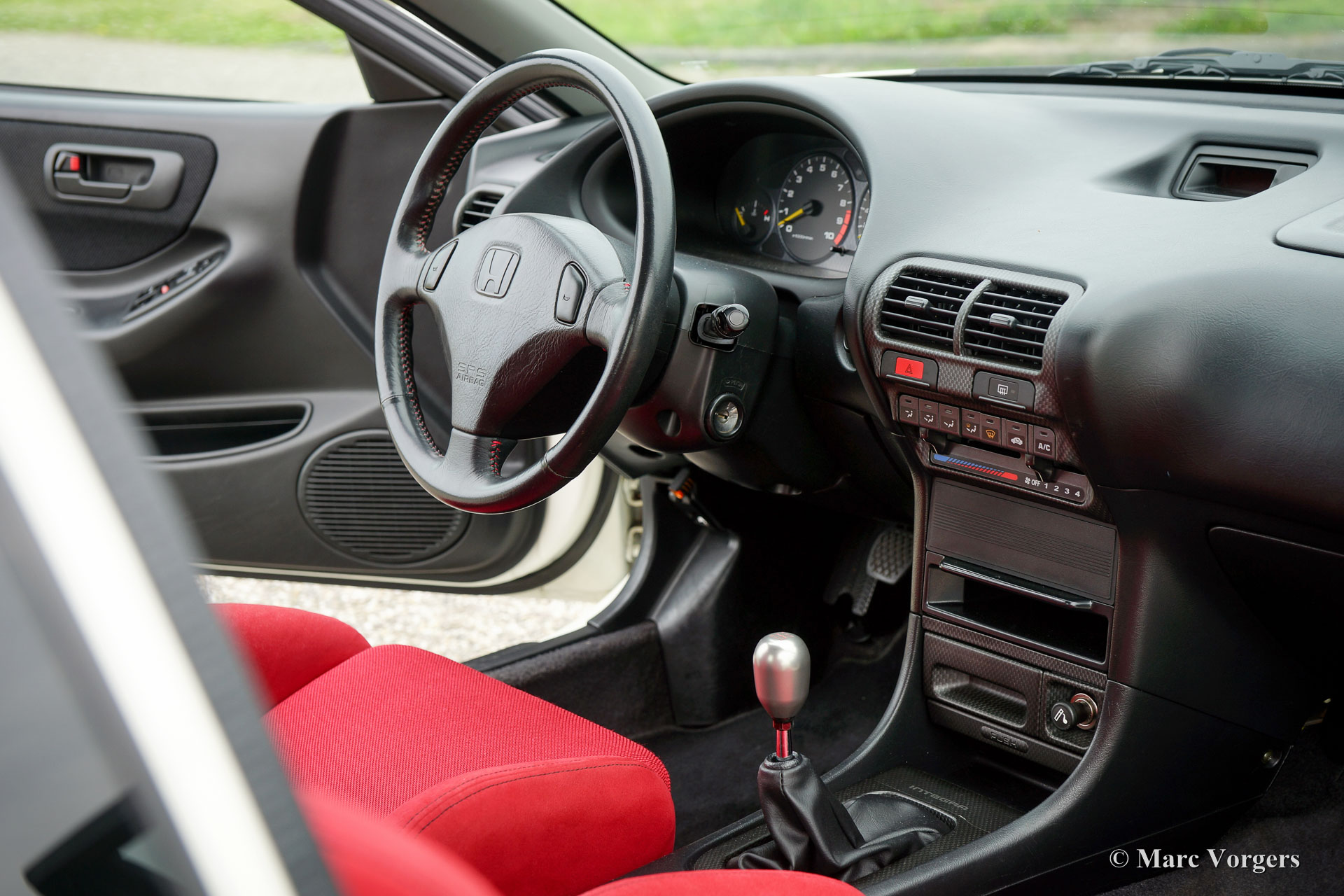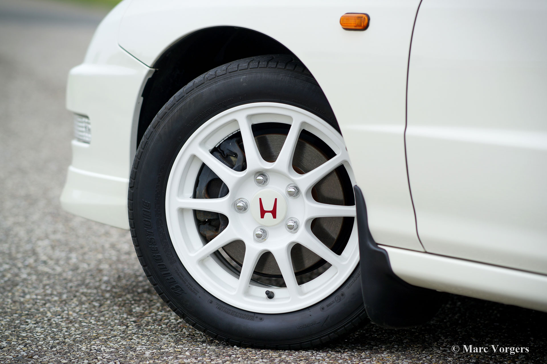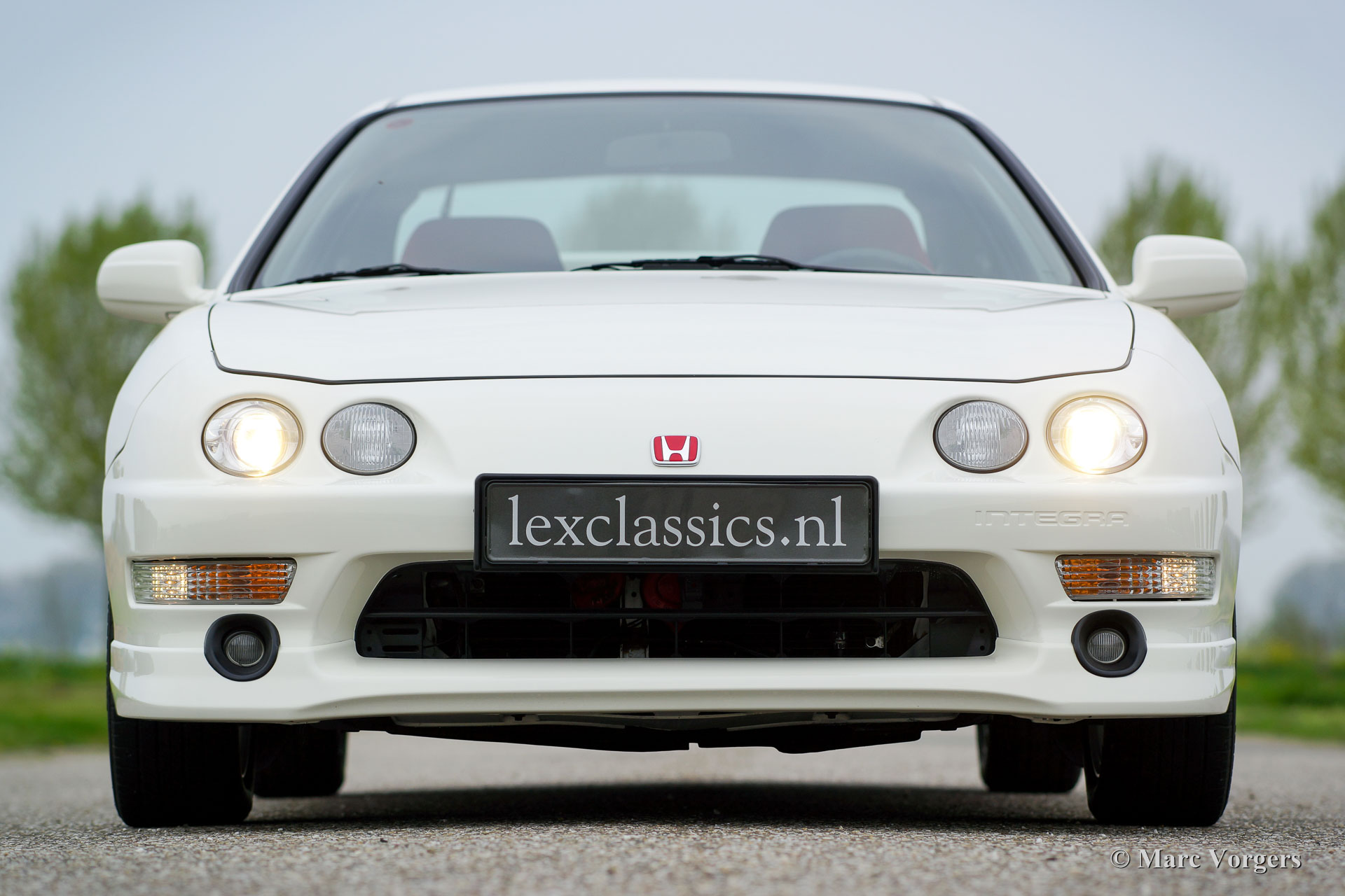 Honda Integra Type-R, année 1998. Couleur 'Formule 1 Blanc' avec un intérieur noir / rouge. C'est l'une des soixante-dix voitures Integra Type-R qui fut livrées aux Pays-Bas. Ce magnifique Integra Type-R est immaculé dans les moindres détails et la voiture dispose de la climatisation.