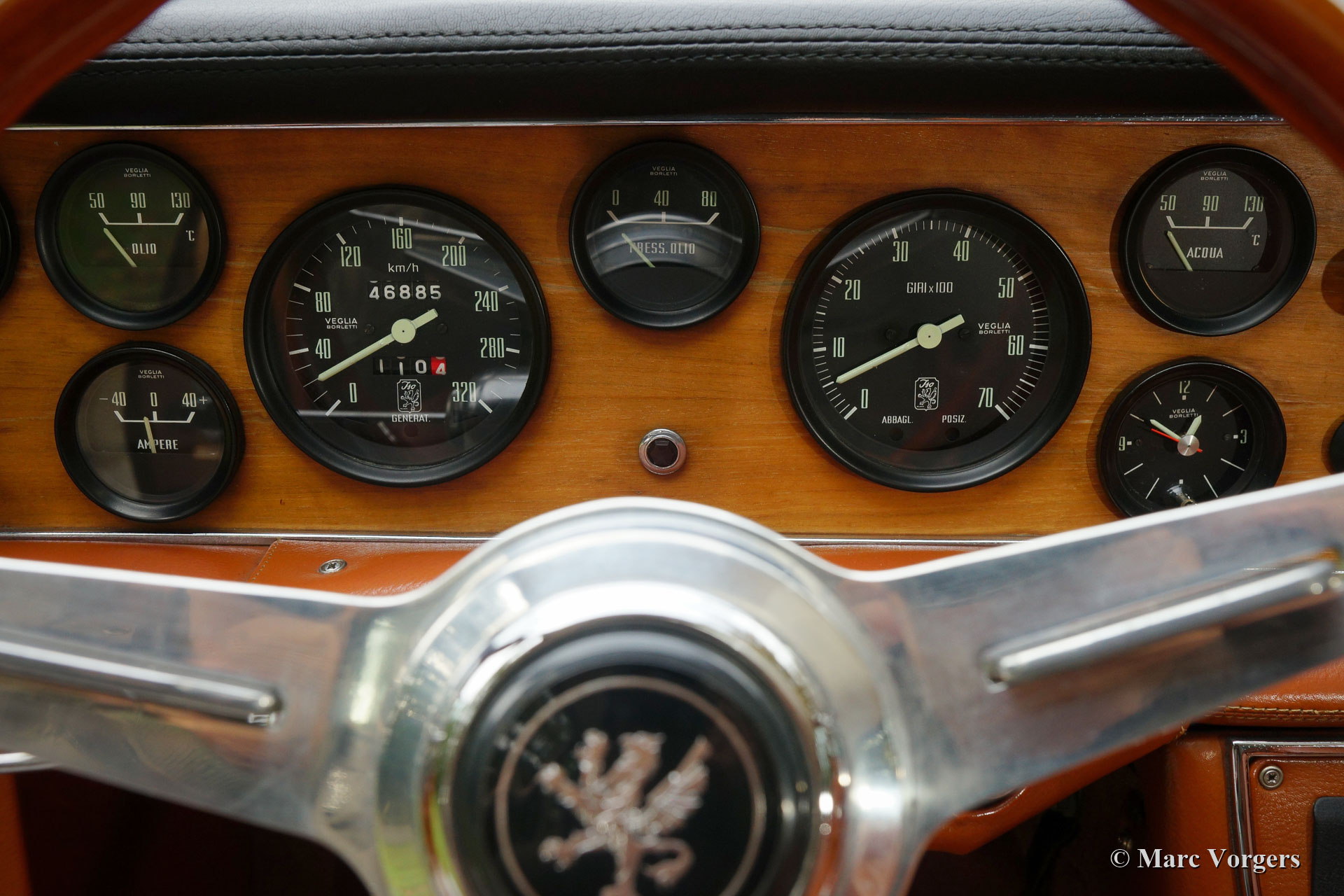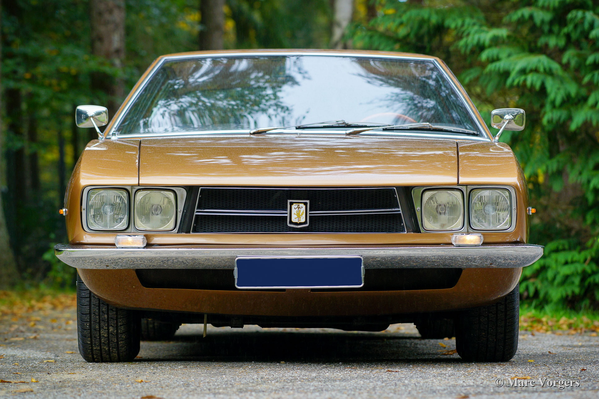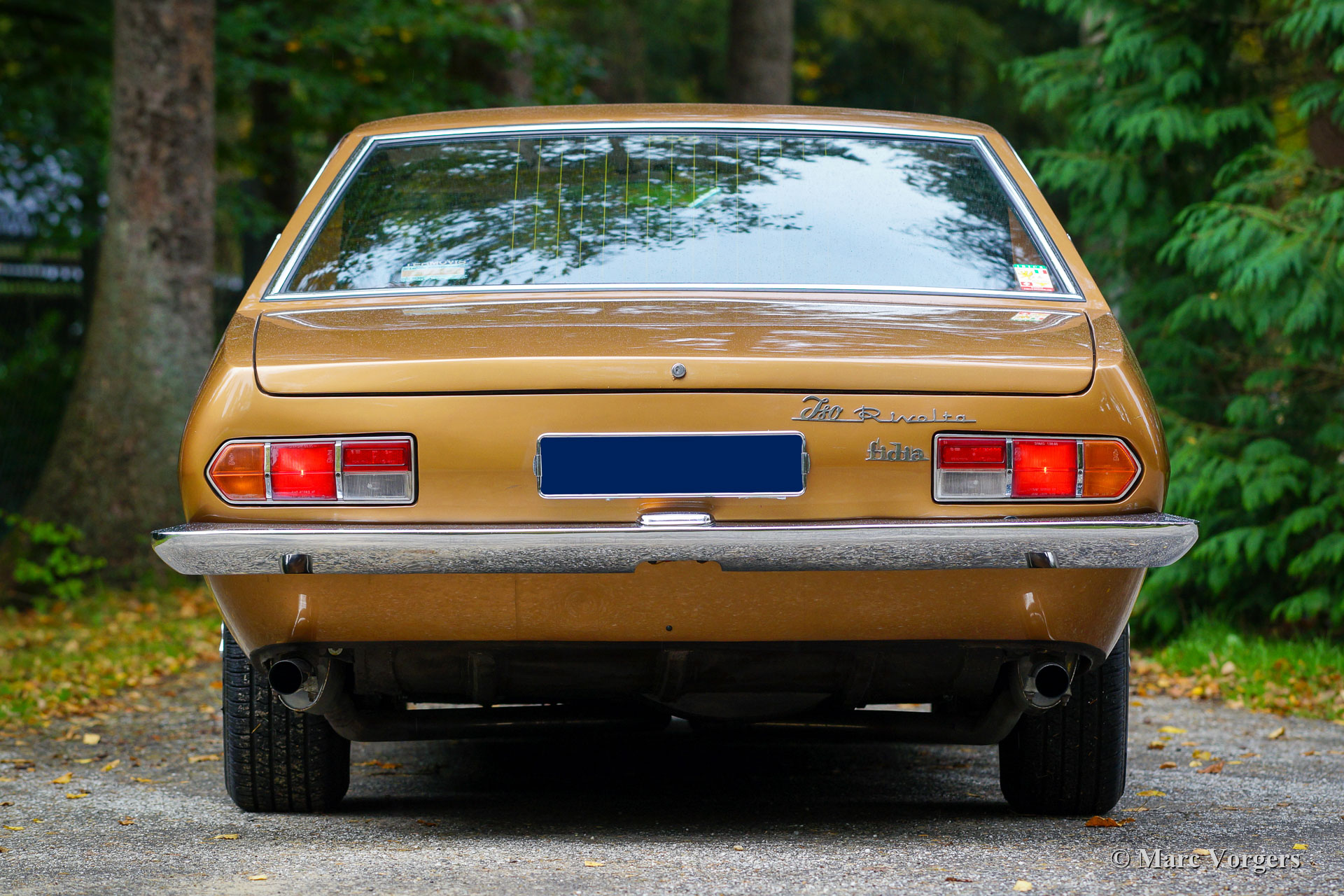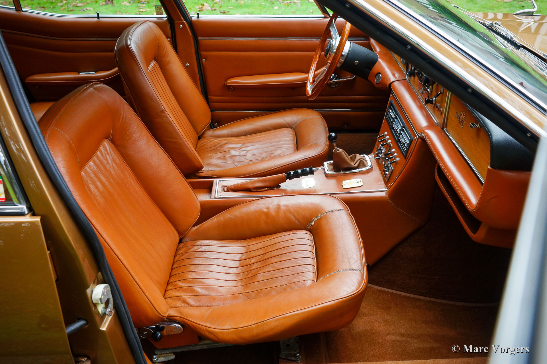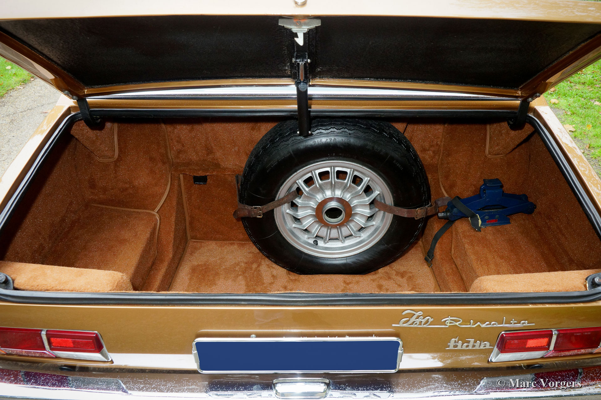 Iso Rivolta Fidia, année 1969. Couleur or / marron métallisé associée à un intérieur en cuir cognac et à un tapis marron clair. Cet impressionnant et très rare Iso Fidia a été vendu neuf en Suisse. En février 2015, l'automobile fut importée aux Pays-Bas. L'Iso Fidia est très rare, seuls 192 exemplaires furent construits de 1967 à 1974. L'Iso Fidia conçue par Giugiaro à Ghia était l'une des berlines à quatre portes les plus rapides de cette période. Comme les voitures de sport Iso Rivolta, la Fidia était également équipée de moteurs V8 Chevrolet (Corvette) robustes, fiables et très puissants (moteurs V8 Ford de 1973). Ce bel exemple est équipé d’un moteur V8 de 5,4 litres de Chevrolet couplé à une boîte de vitesses manuelle à quatre vitesses (tout synchronisé). L'essieu arrière est équipé d'un différentiel à glissement limité pour mettre correctement la puissance de 350 chevaux dans la rue. Cette Iso Fidia est en excellent état intérieur et extérieur et la voiture roule parfaitement ! Conduire une grande berline de luxe italienne à moteur V8 procure un sentiment très particulier. L'intérieur en cuir avec le tableau de bord en bois respire le luxe des années 1960, la direction assistée est un délice et le grondement du magnifique moteur V8 à l'arrière-plan complète l'expérience. La voiture est équipée de superbes jantes en alliage d’origine, de pneus Pirelli P4000 et d’une radio à cassettes stéréo Becker Mexico de première classe des années 1970. C’est un excellent exemple du très rare Iso Rivolta Fidia.