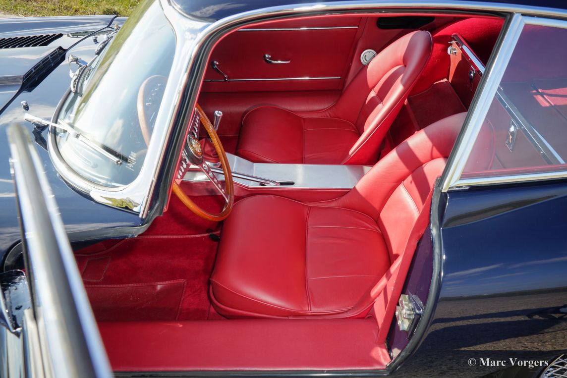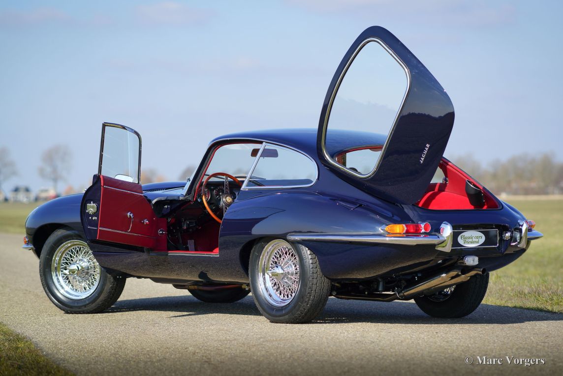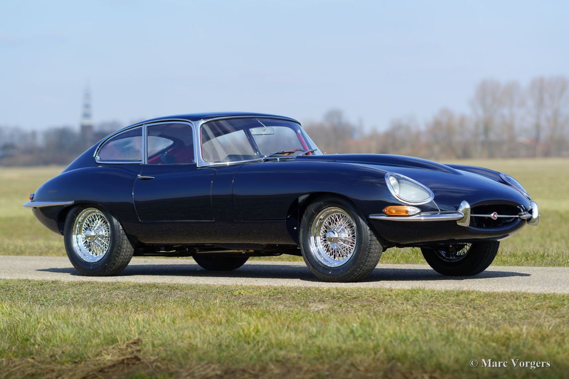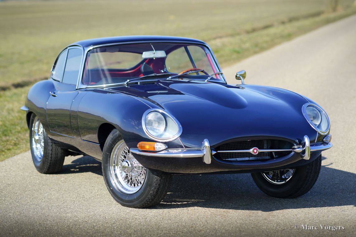 Jaguar E-Type 3.8 Litre FHC, année 1962. « Matching numbers » ; un certificat de patrimoine (Heritage) est présent. Couleur bleu foncé avec un intérieur a cuir rouge tapis et rouge. Cette Jaguar E-type de la très recherchée première série a été parfaitement restauré ces dernières années par un classique entreprise de restauration de voiture néerlandais. Bien sûr, le moteur et la boîte vitesses ont été révisés, un nouveau faisceau de câblage a été installé, le travail lumineux a été re-chrome et l'intérieur était magnifiquement et flambant neuf rembourrés. Cette E-type ‘Fixed Head Coupe’ (FHC) est en superbe état TOP ; concours ! L'automobile dispose d'un système d'échappement en acier inoxydable, roues à rayons chromés et pneus Vredestein Sprint Classic. Le manuel d'instruction d'origine est présent comme le set l'outil original ! Ceci est un exemple TOP, une voiture pour le collectionneur et un bon investissement.