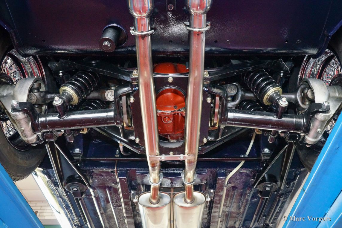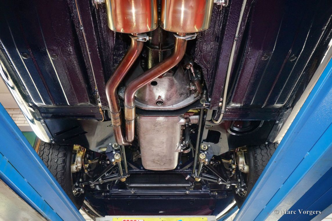 The E-Type was also a jewel for its engineering: its bodywork was a steel 'monocoque' with a sub-frame attached in front of the cover in which the engine and the wheel-suspension were housed. In the back, under the 'monocoque', there was a second sub-frame to which the differential gear and the rear suspension were attached. The E-Type was equipped with independent wheel-suspension and disc brakes all round. The disc brakes in the back were placed against the differential to limit unsprung weight.