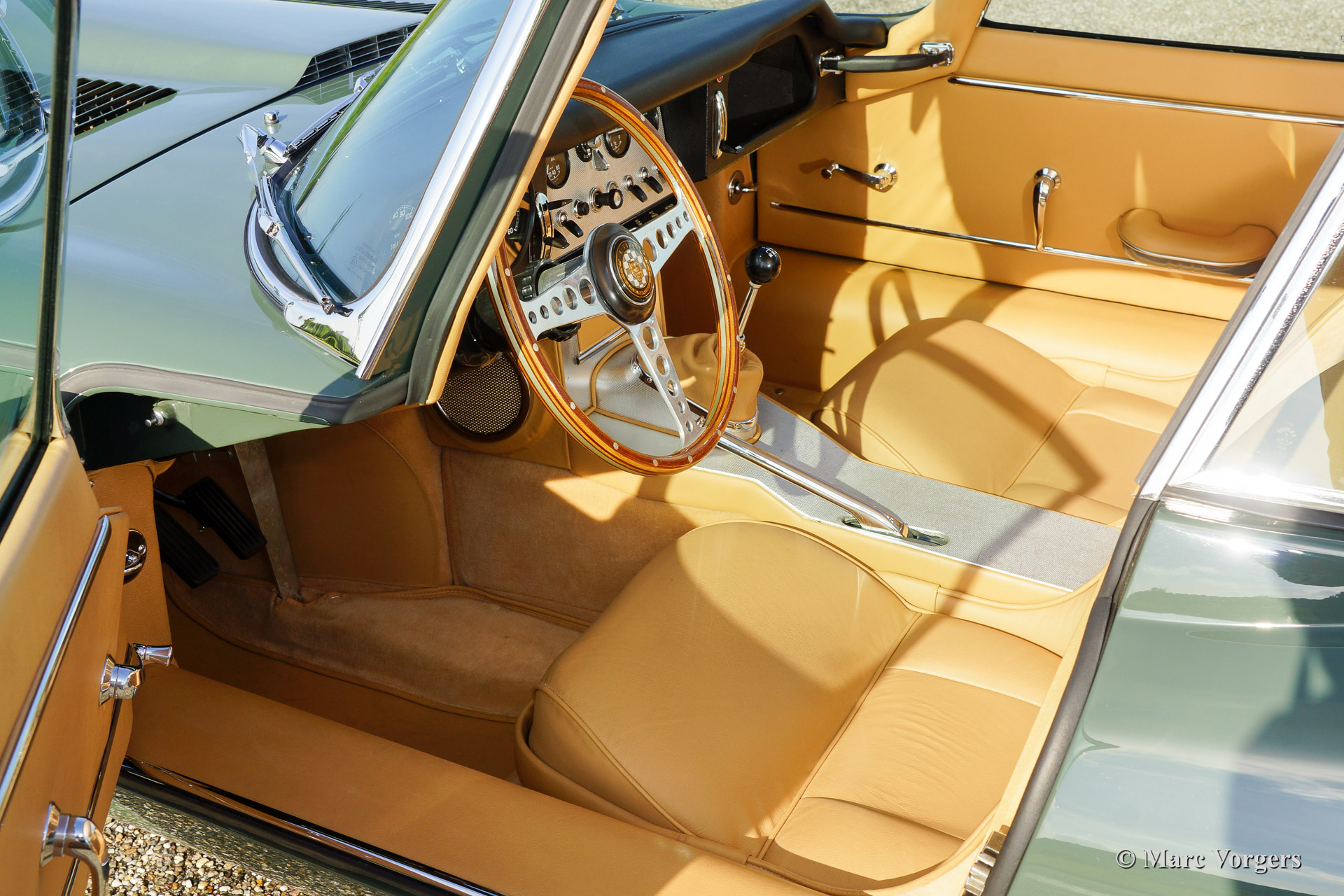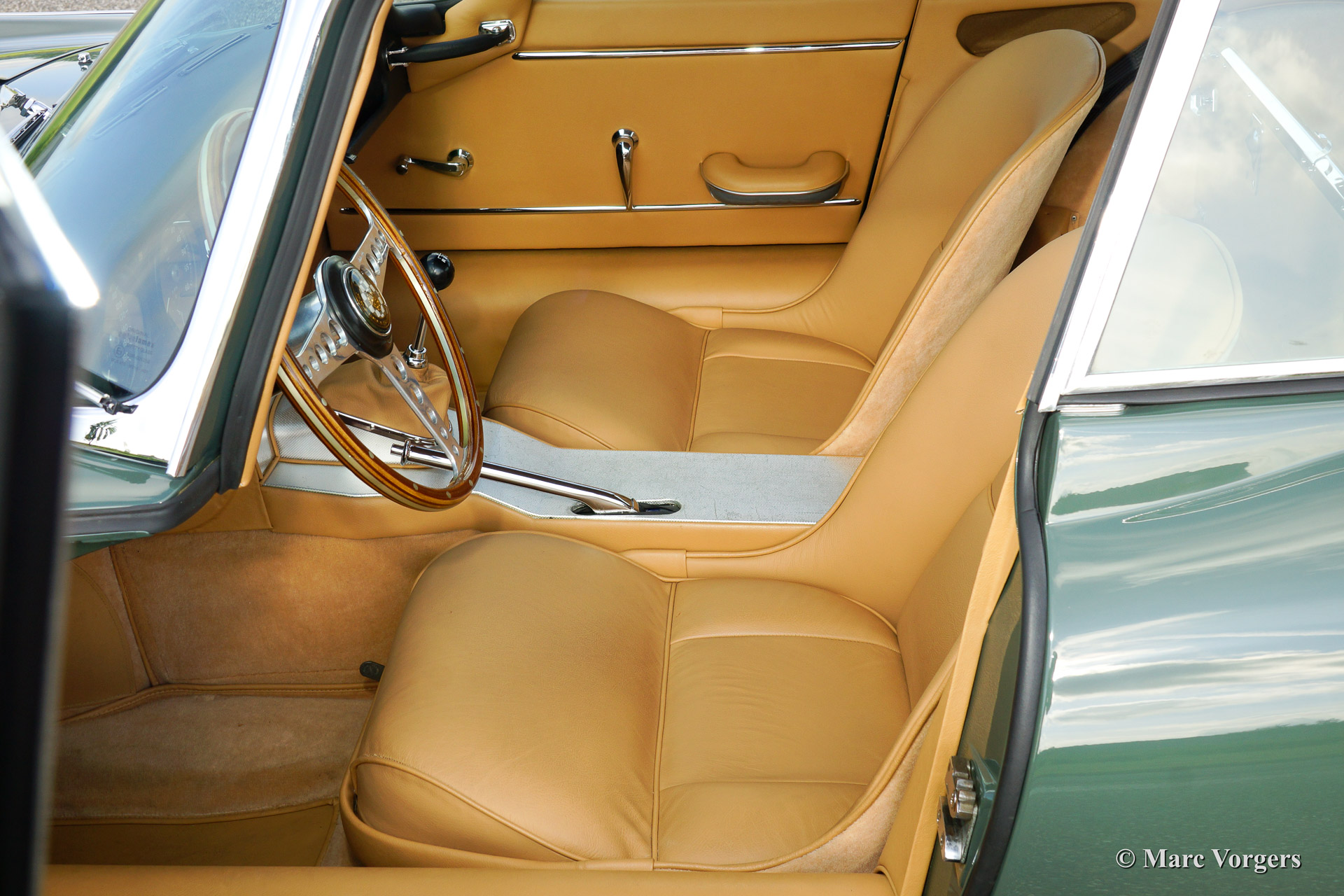 Jaguar E-Type 3.8 Litre FHC série 1, année 1963. Numéro de châssis 888662, numéro de moteur: RA2060-9, numéros correspondant, un certificat de patrimoine est présent. Couleur 'vert Sherwood' avec un intérieur cuir beige et tapis beige. Cet Jaguar E-Type magnifique a été detaillé et parfaitement restauré au cours des dernières années. La restauration a été achevée récemment. Ce Jaguar E-Type fabuleux est en condition concours! Un vaste reportage photo et factures concernant la restauration sont présents. La couleur verte Sherwood voit rarement et très exclusif, cette nuance de vert combine admirablement avec l'intérieur beige et le brillant chrome de l’extérieur. De 1961 à 1964, un total de 7670 Jaguar E-Type FHC (Fixed Head Coupe) voitures ont été construites. Cet voiture dispose roues fils de chrome, chrome knock off écrous de roue, volant avec la jante en bois, un système complet d'échappement en acier inoxydable, un ventilateur de refroidissement de grande capacité et plus larges pnues 215/65/ R15. Ceci est un fabuleux example à notre avis la plus belle voiture jamais conçu.
